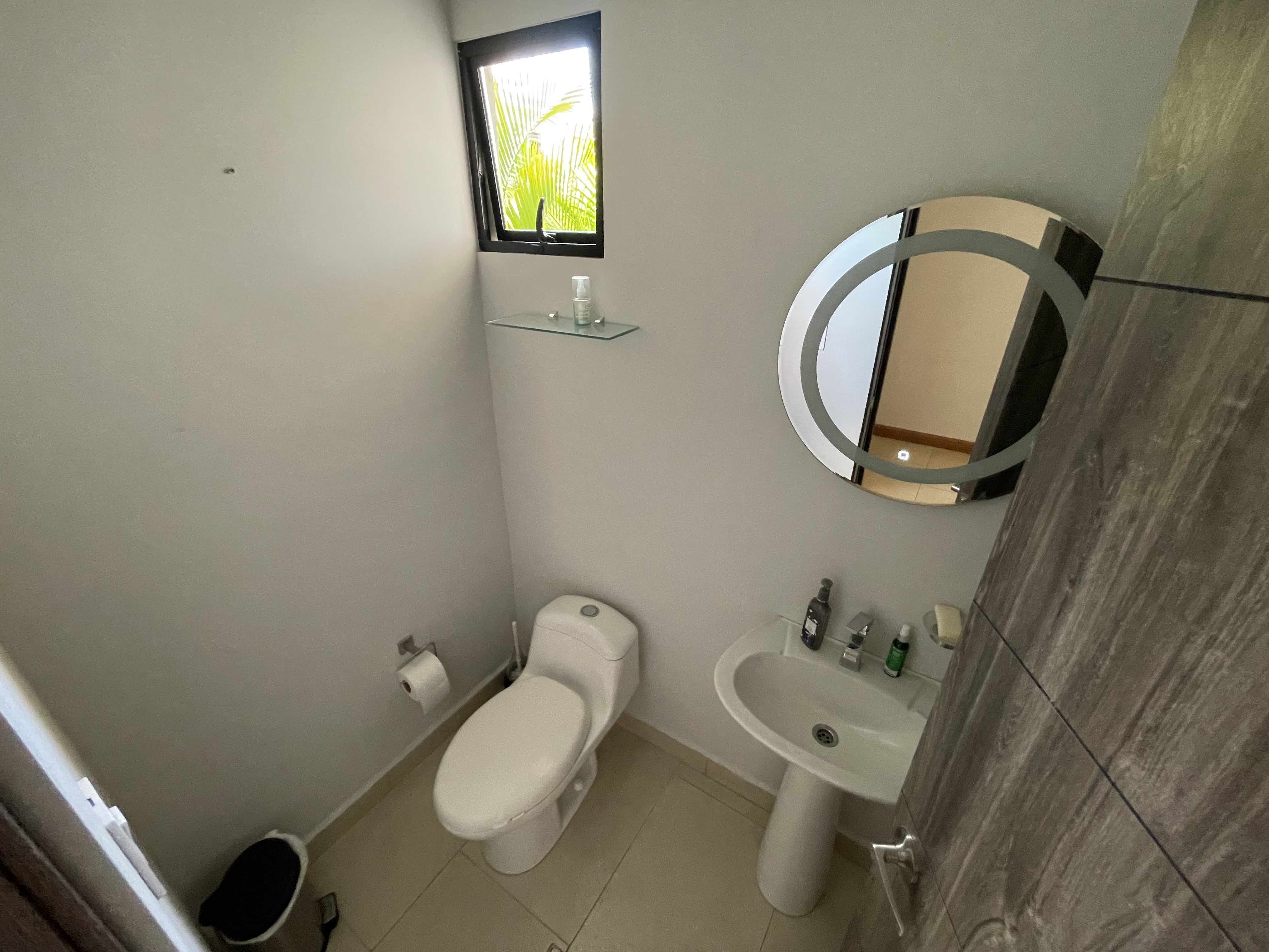 Cuenta con 3 habitaciones, cada una con baño completo, medio baño de visitas, cocina integrada al área social, espacio para oficina, cuarto de lavado y cuarto de servicio con baño.