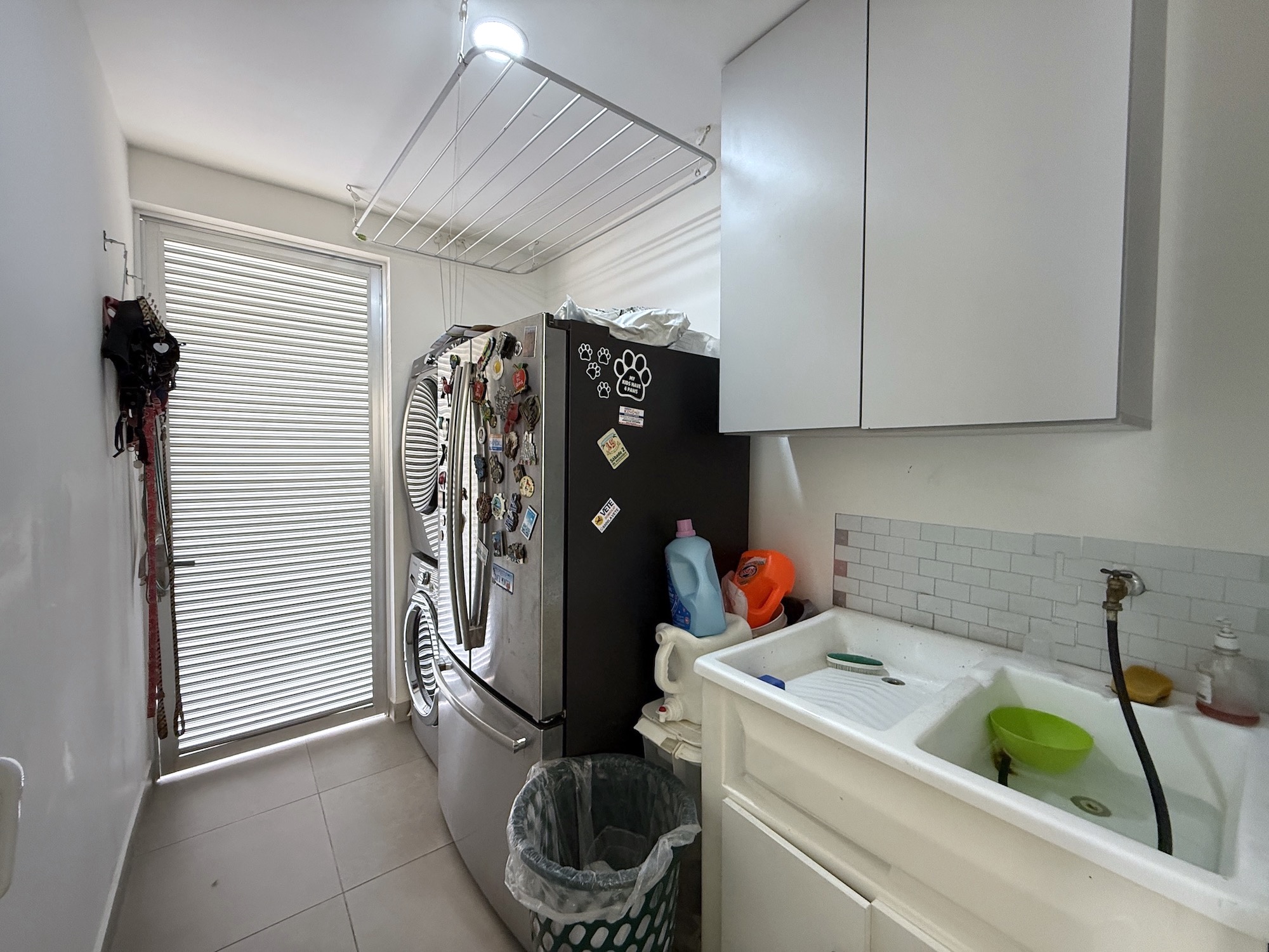 - Laundry area and storage room