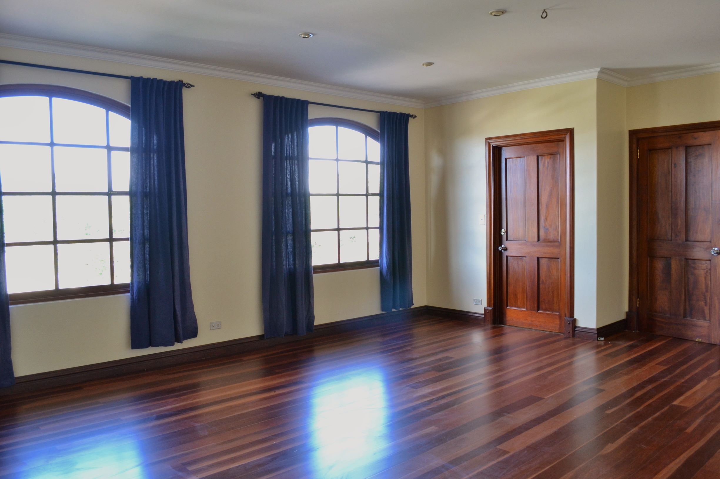 La zona privada de la casa cuenta con una oficina, una sala de televisión y una sala de juegos. Todos los dormitorios tienen acceso al gran balcón con vistas al valle o al océano. El dormitorio principal tiene un walk-in closet y un baño en suite con doble lavabo, tina y ducha. Los dos baños secundarios comparten un baño.