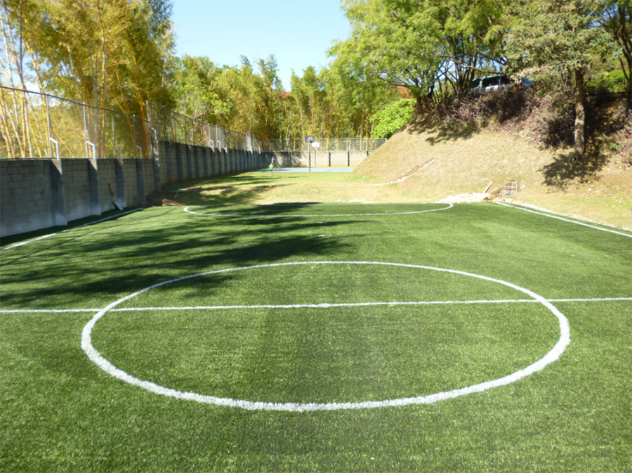Las amenidades de Villa Real incluyen seguridad 24/7, casa club, 3 piscinas, gimnasio, canchas de tenis, cancha de fútbol, área de juego y senderos para caminar.