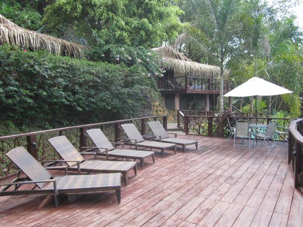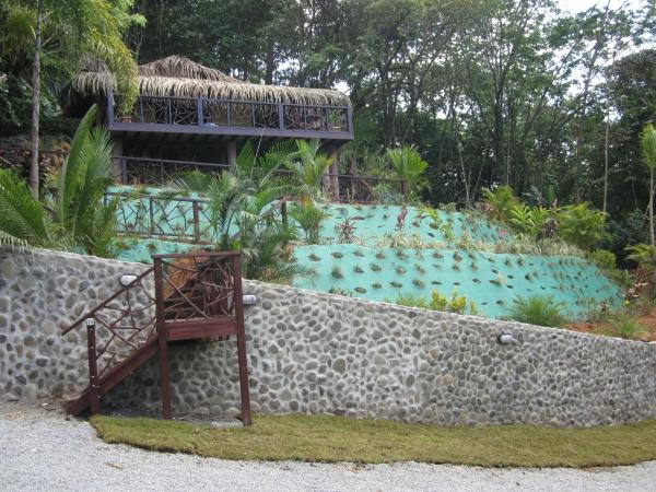 Driving up the hill from the center of Uvita you arrive at the secure bamboo entrance gates of Las Terrazas. You are immediately greeted by three finely appointed Cabins that were redesigned in 2008 with a Balinese flare. Each Cabin is approximately 450 ft2 in size accompanied by exterior kitchenette's that are perfect for night or monthly rentals. Each unit has nice views of the famous Whales Tail of Uvita, while perched up at nearly 800 feet providing fabulous cool breezes.