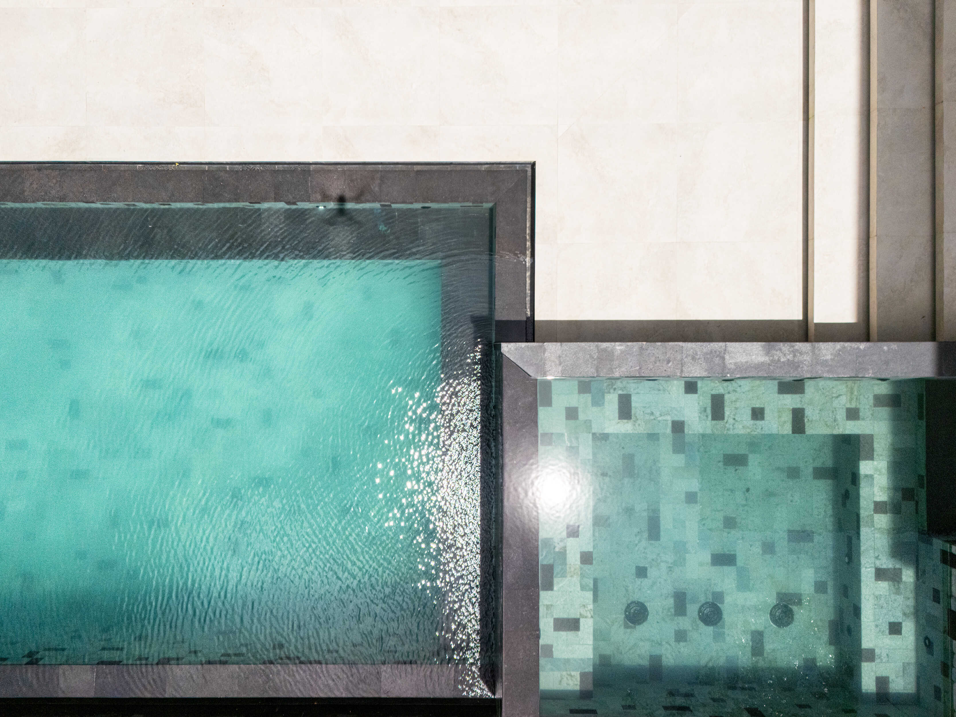 · A 360° infinity pool and 10-person jacuzzi, finished with imported natural stones from Indonesia.