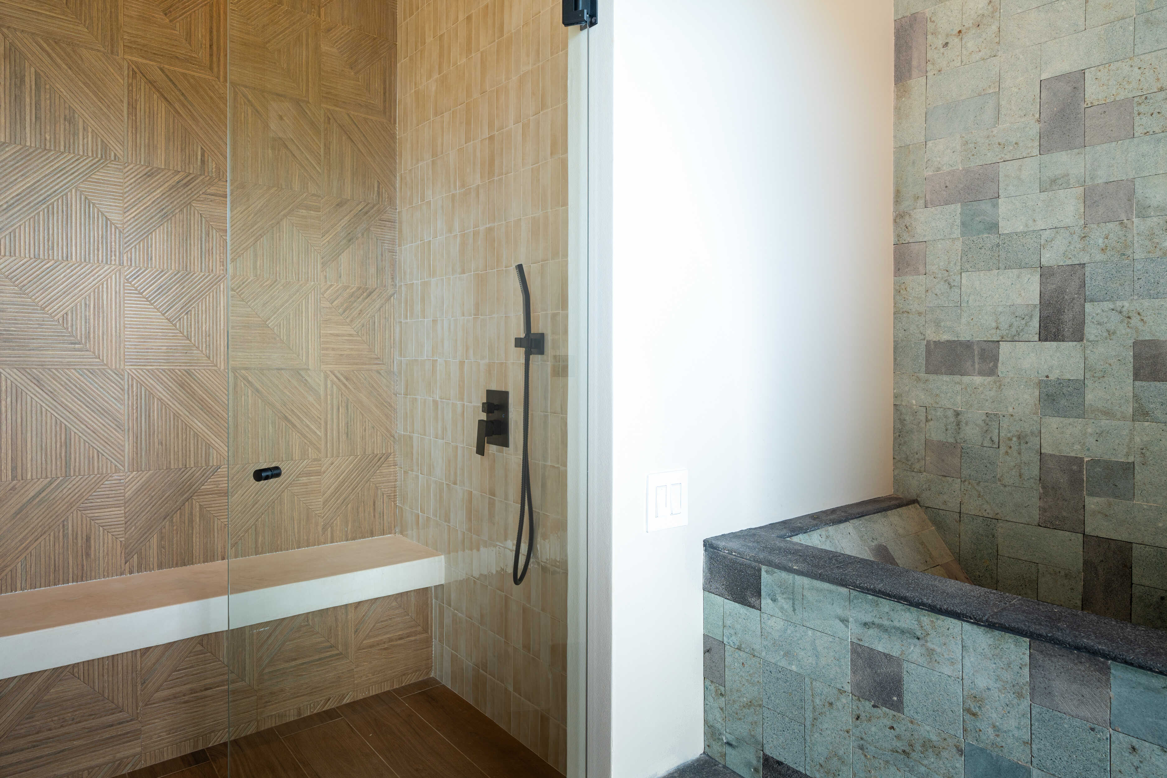 Every surface tells a story of excellence. Spanish anti-slip tile floors provide elegance and comfort underfoot. Electric custom shades move with quiet precision. At night, an LED lighting system transforms the home into a constellation of light, glowing softly against the rainforest backdrop.