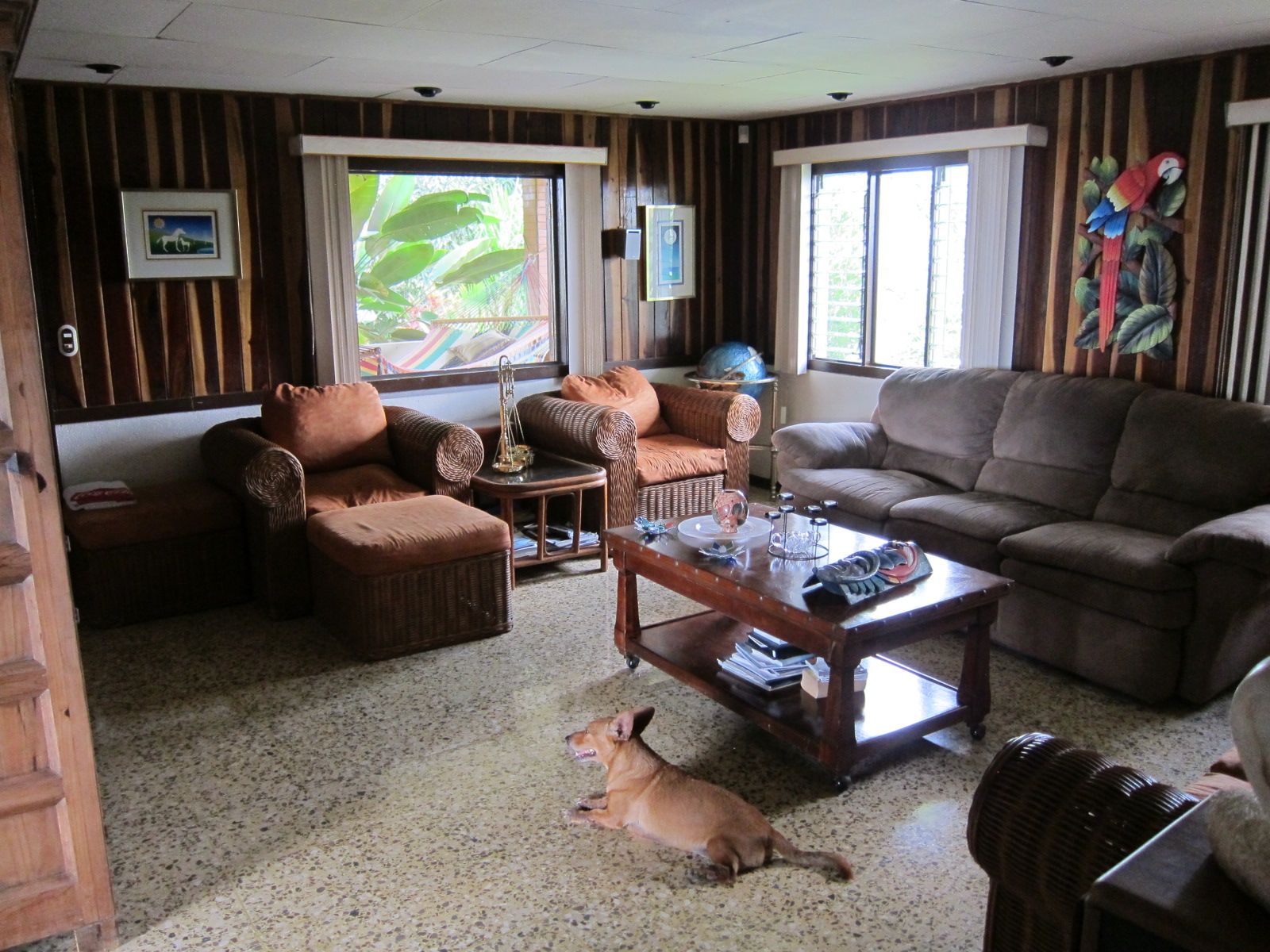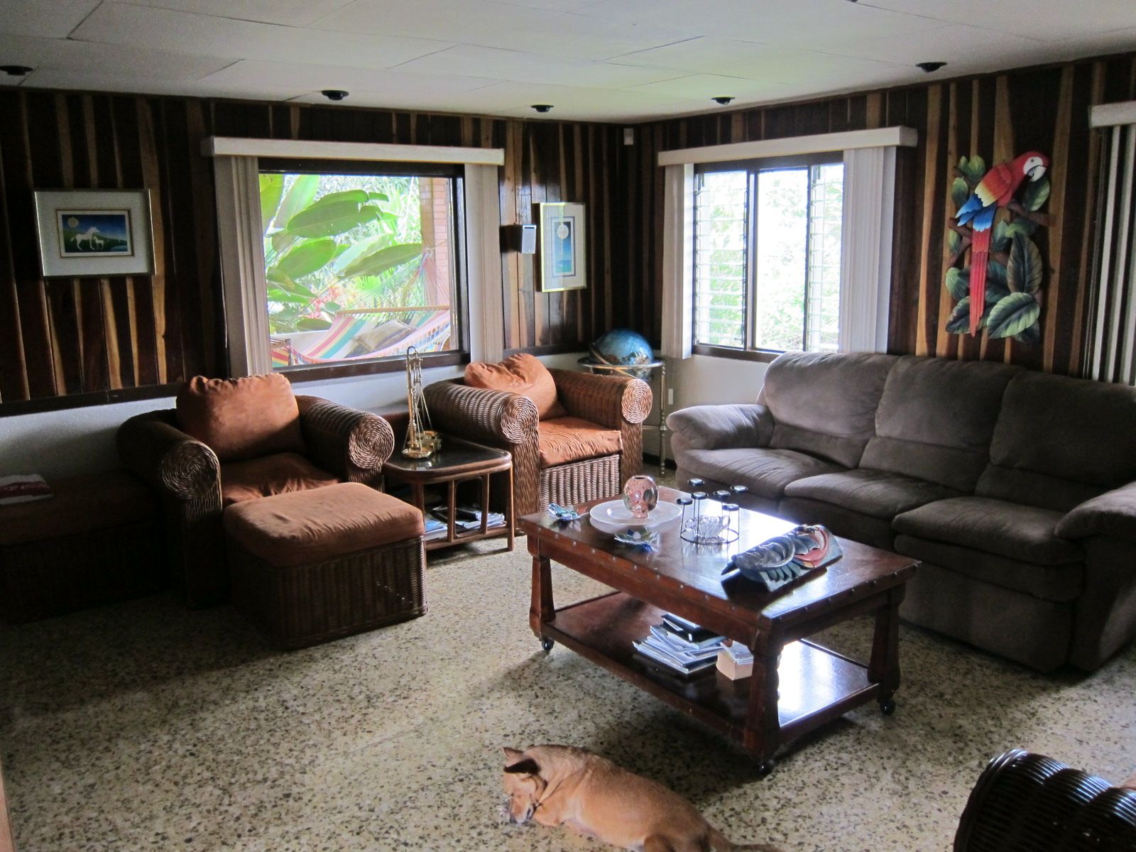 Built in 1995 by a Costa Rican family, the home consists of 5 bedrooms, 2 baths, a guest quarters above the pool, expansive garage, and a large greenhouse.