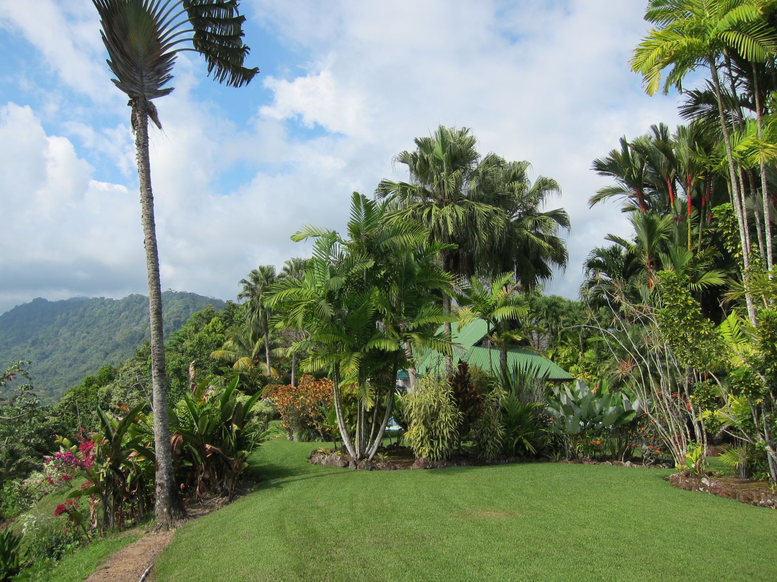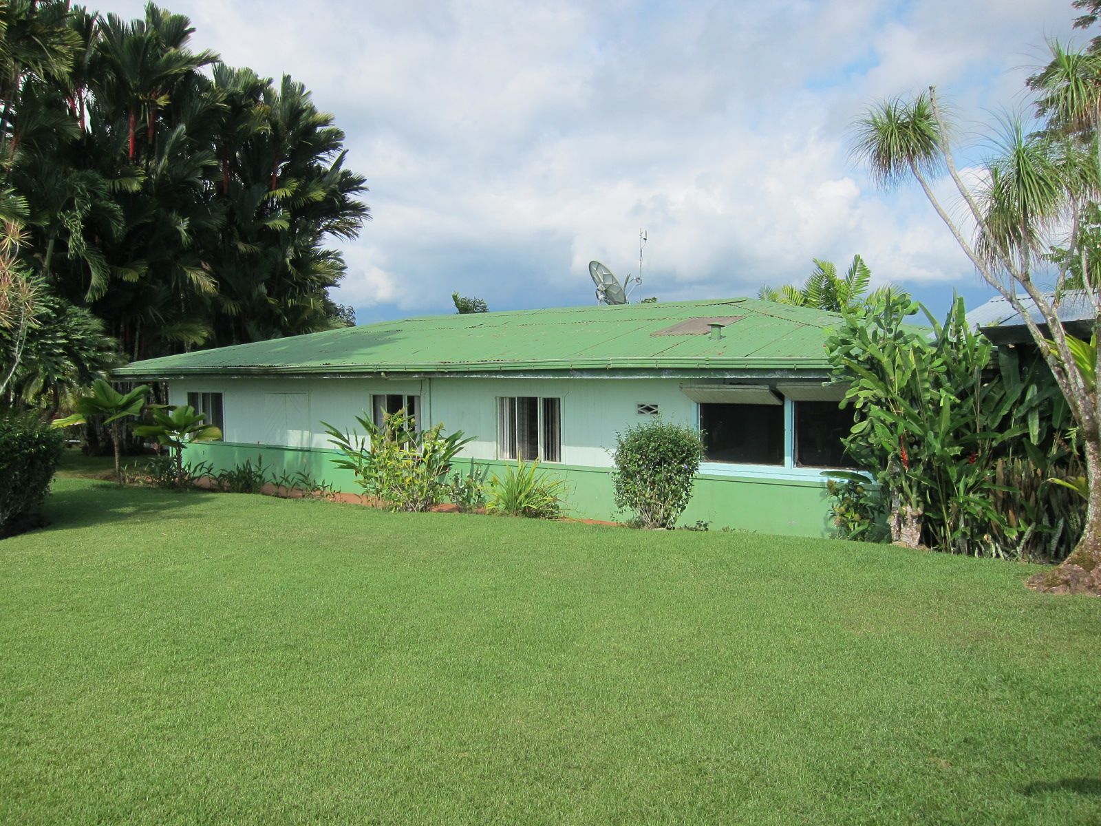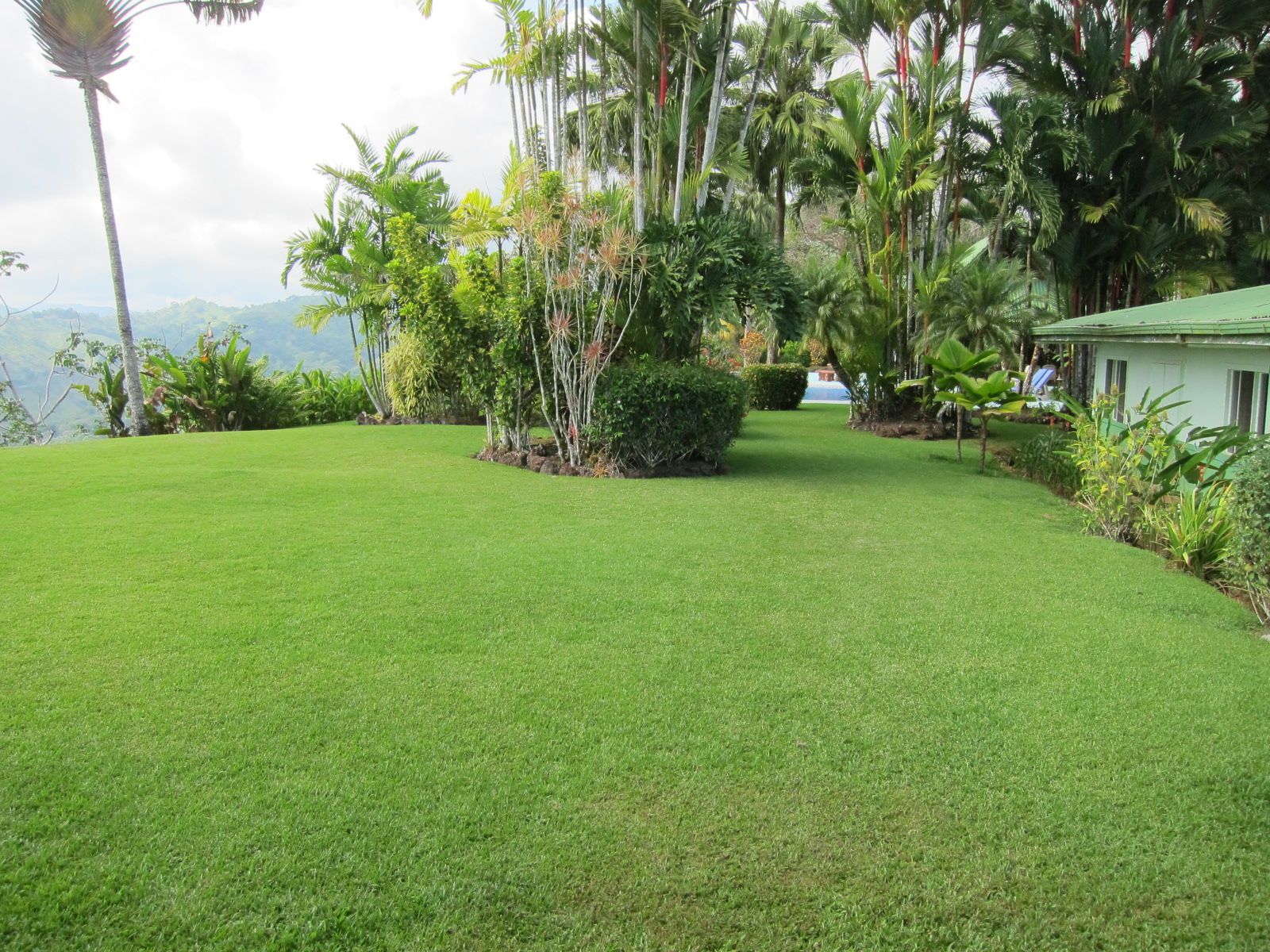 Landscaping consists the finest palm trees, fruit and exotic species.