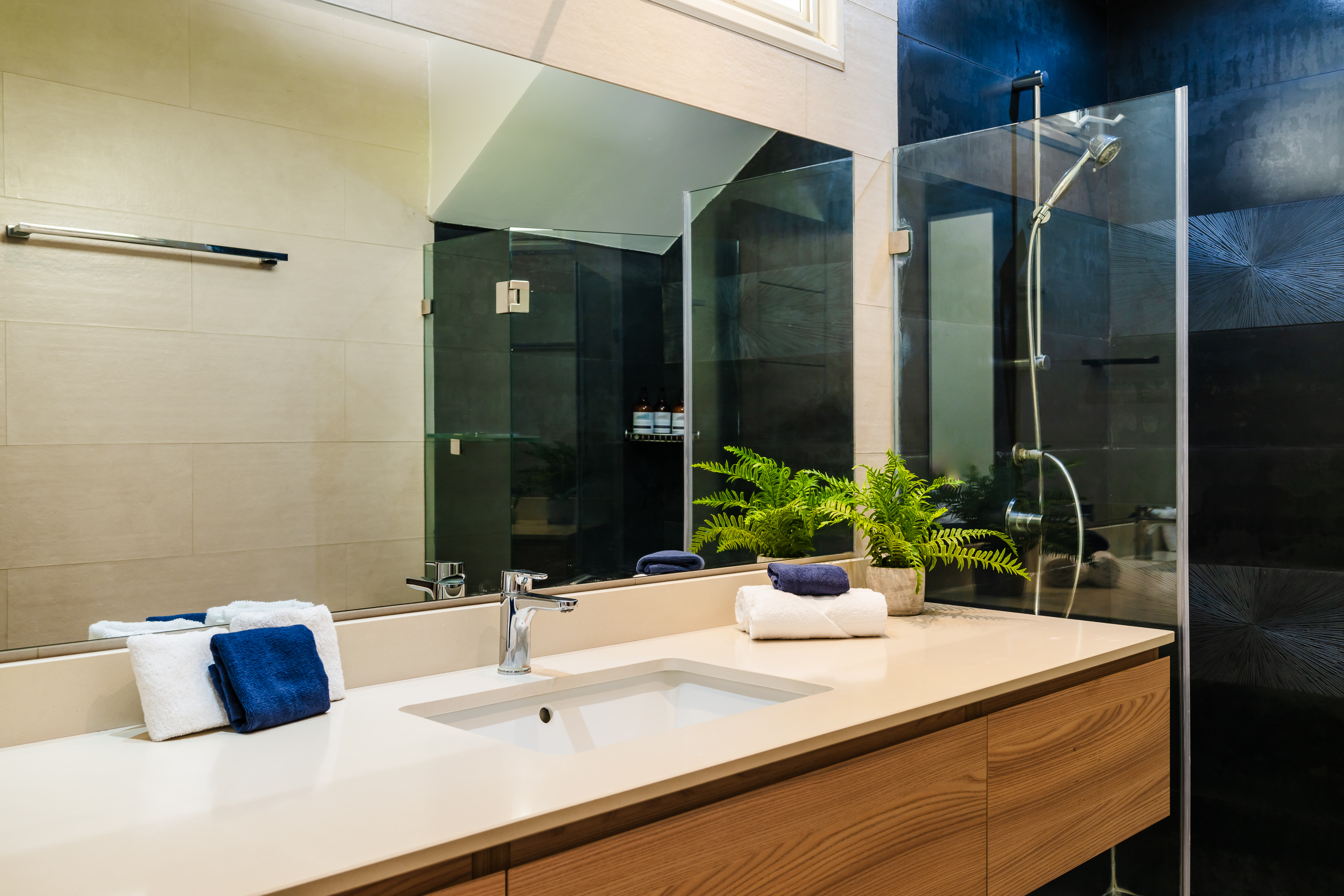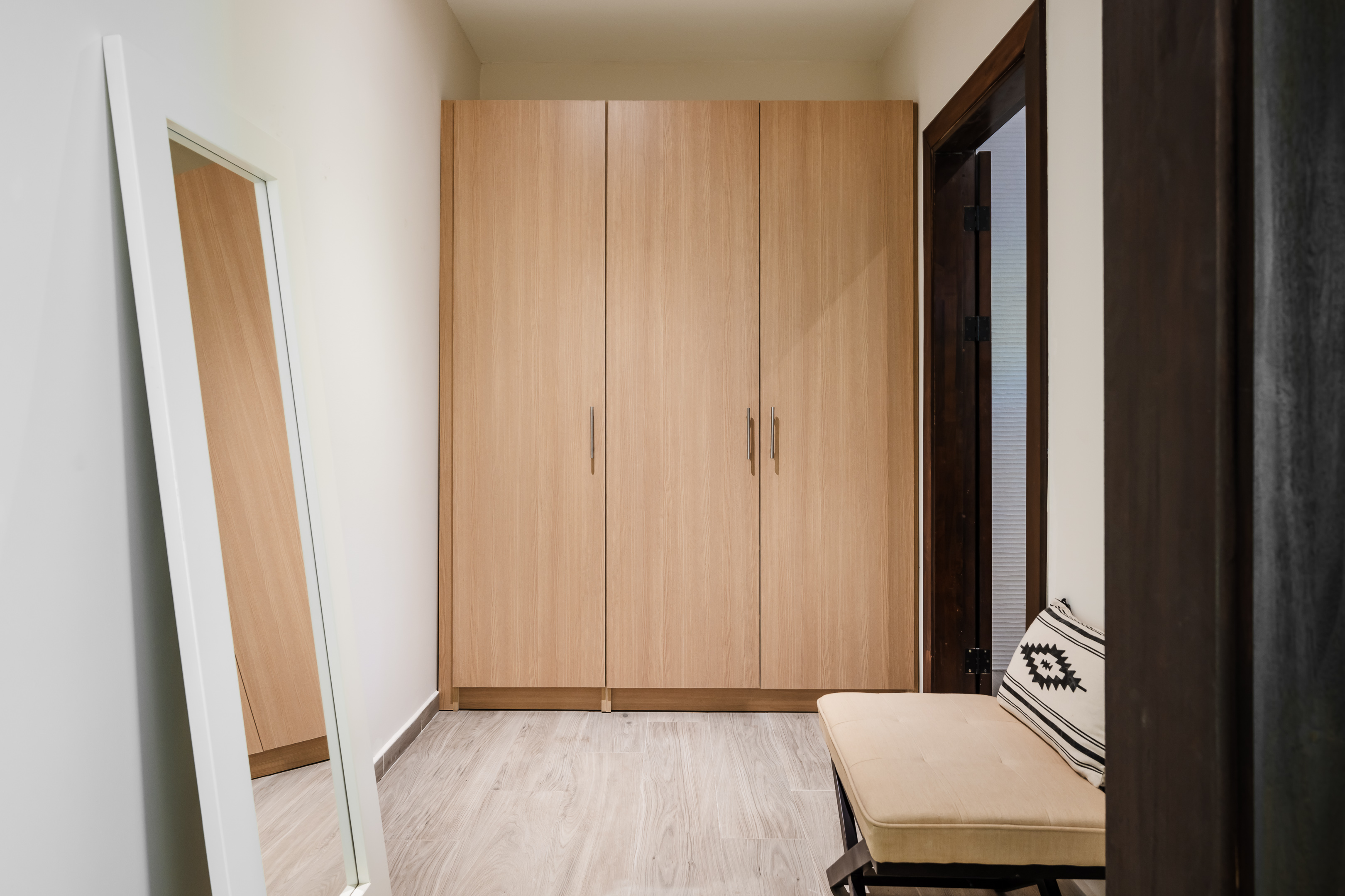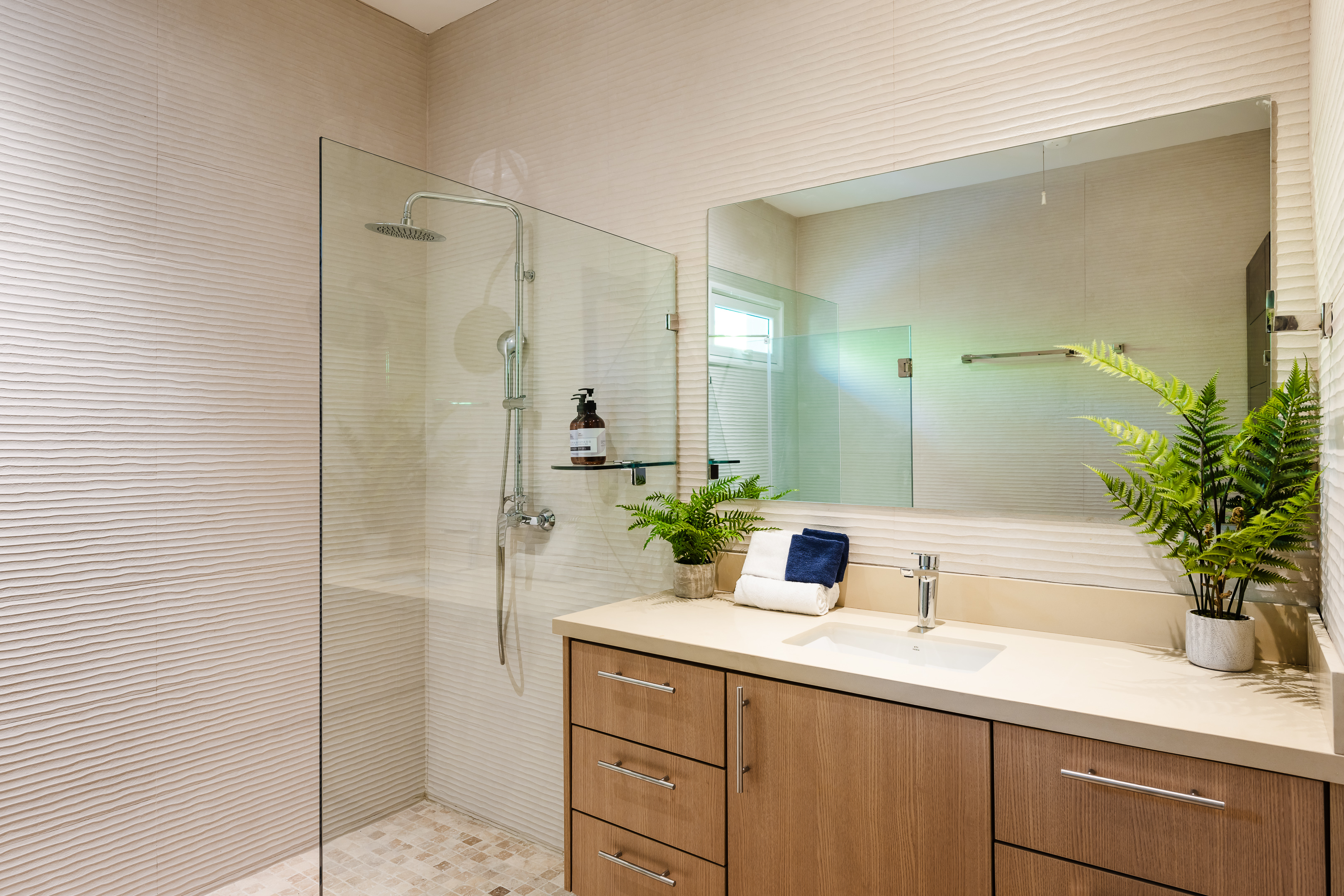 Upon entering the main house, you'll discover three tastefully designed bedrooms. The open-concept living room, kitchen, and dining area exude both comfort and style, featuring upscale finishes along with stunning furniture and decor. Each bedroom serves as a peaceful retreat, showcasing spacious layouts, plush bedding, and sophisticated details that foster a cozy ambiance. The en-suite bathrooms are equally remarkable, equipped with contemporary fixtures and a serene, spa-like feel.