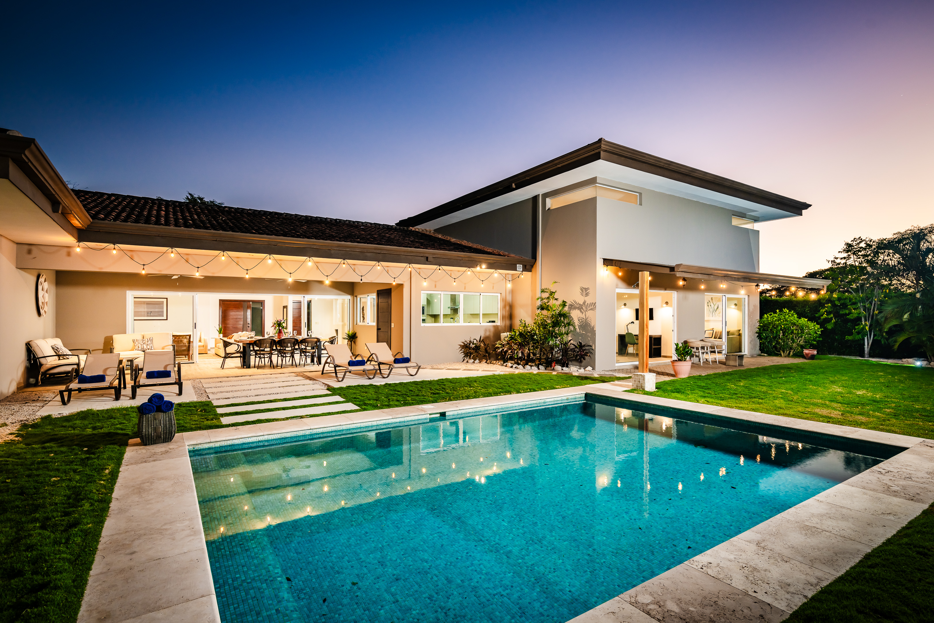 Welcome to Casa Kenya, an exquisite tropical modern home situated within the gated community of Las Brisas, at the center of Hacienda Pinilla, Guanacaste, Costa Rica. This architectural gem boasts 5,764 square feet of living space that harmoniously combines indoor and outdoor environments, making it an ideal sanctuary for those who cherish luxury and elegance.