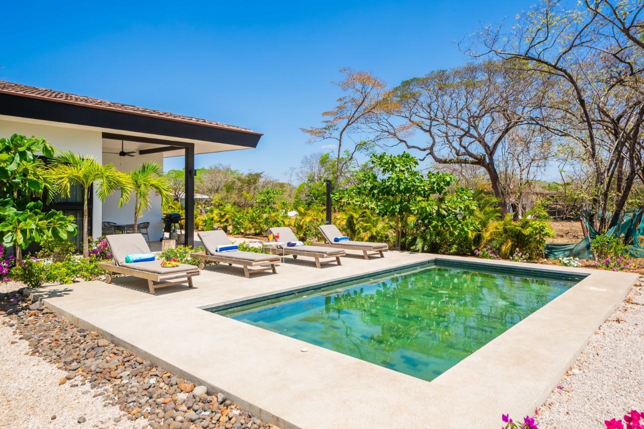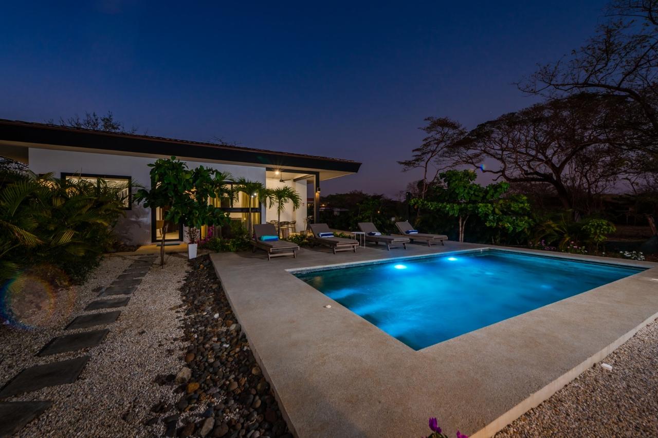 Located in the peaceful Los Almendros community of Hacienda Pinilla, this private estate delivers space, style, and versatility. A main home and an independent guest residence, each with its own pool, are surrounded by lush tropical gardens, creating a resort-style environment designed for comfort, privacy, and effortless entertaining.