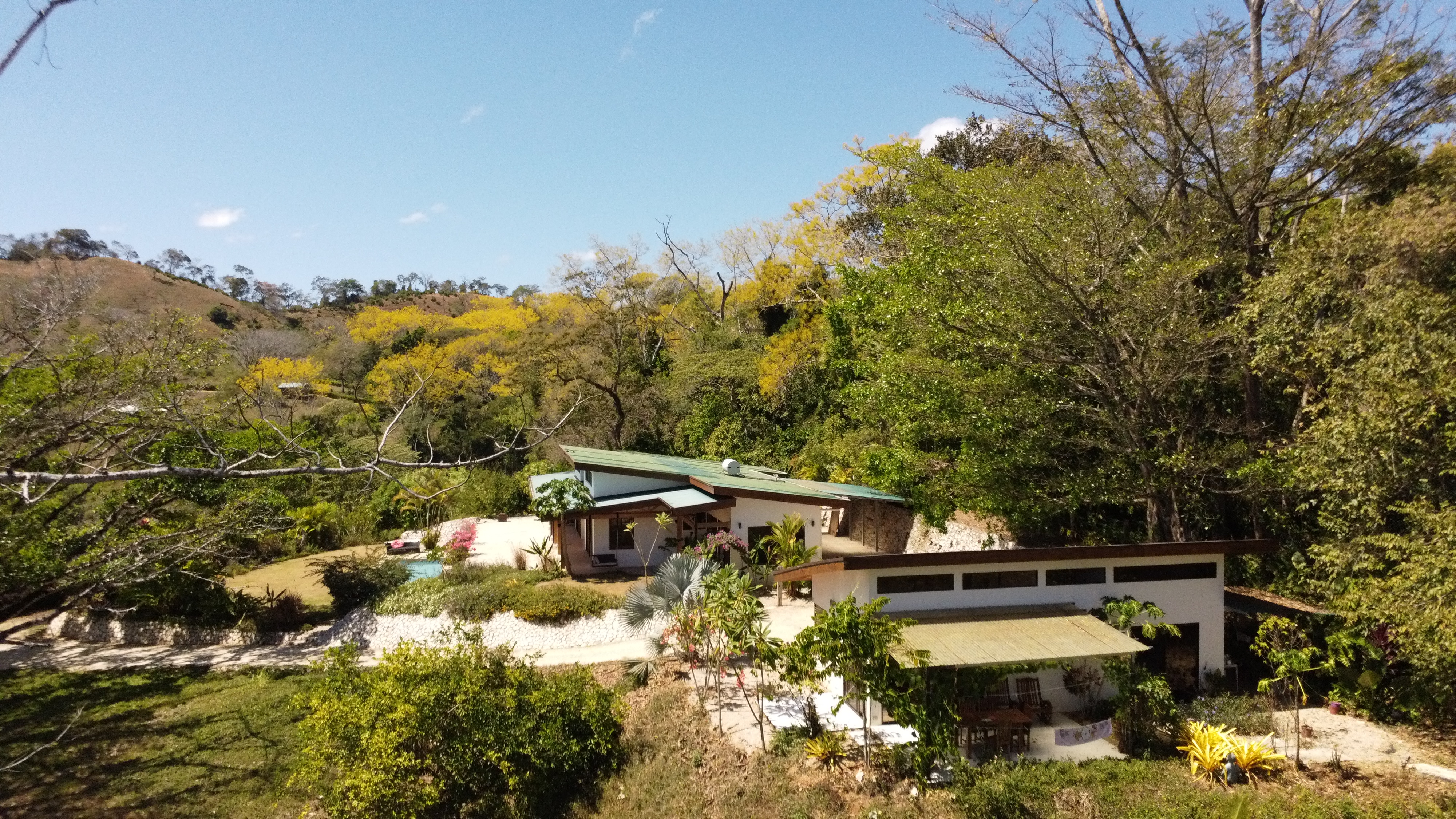 This property is located in a unique and private setting, offering beautiful panoramic views of the surrounding valleys and natural landscape. Although secluded and peaceful, it enjoys excellent accessibility and a central location. Hojancha is just 5 minutes away, Nicoya is 15 minutes away, Sámara Beach is 35 minutes away, and Liberia International Airport is approximately 1.5 hours away. Hojancha is well known for its special climate: warm and pleasant during the day, with cooler and comfortable temperatures at night. Combined with the property's elevated position, this creates an ideal year-round living environment with fresh air and expansive views.