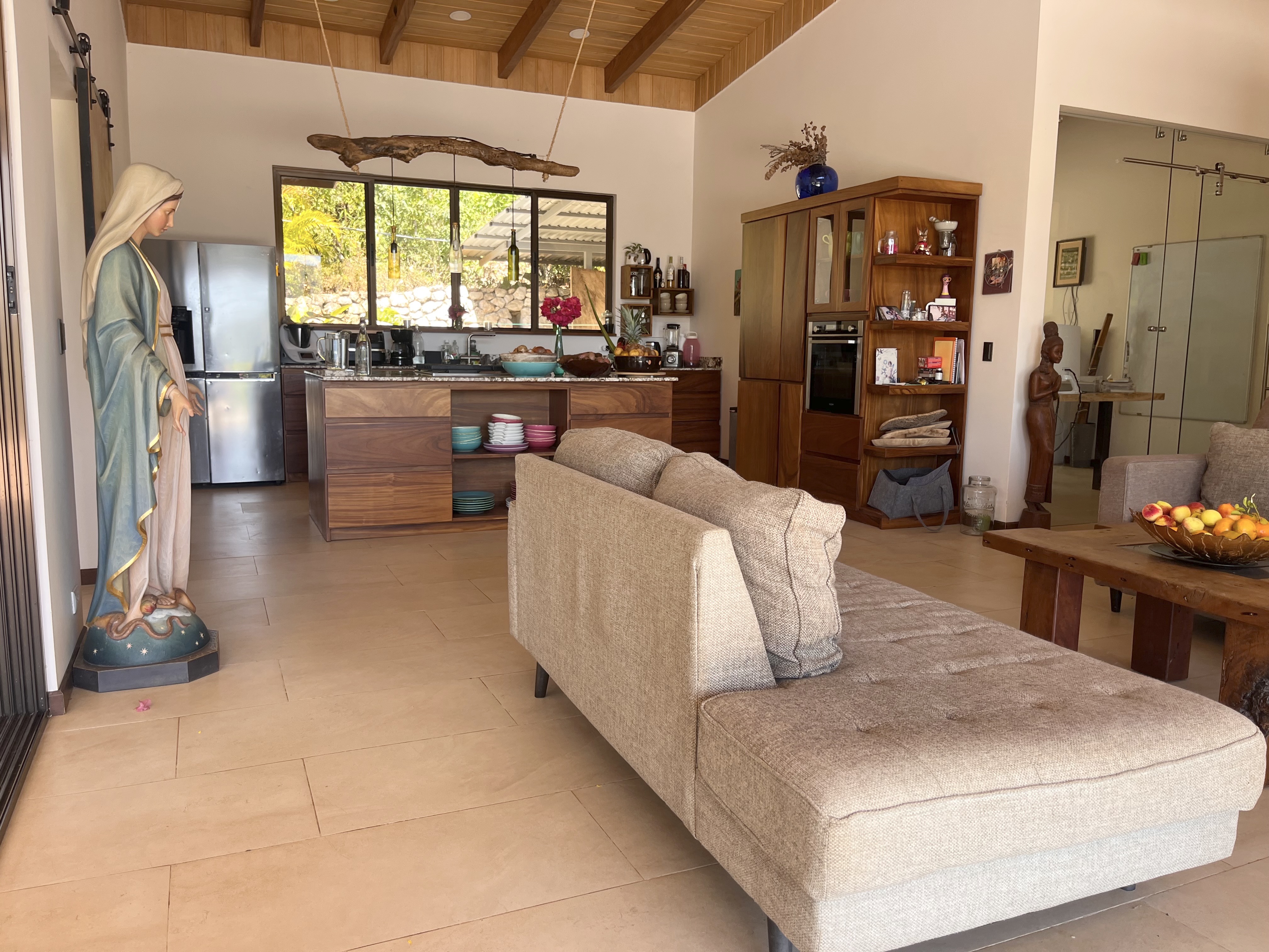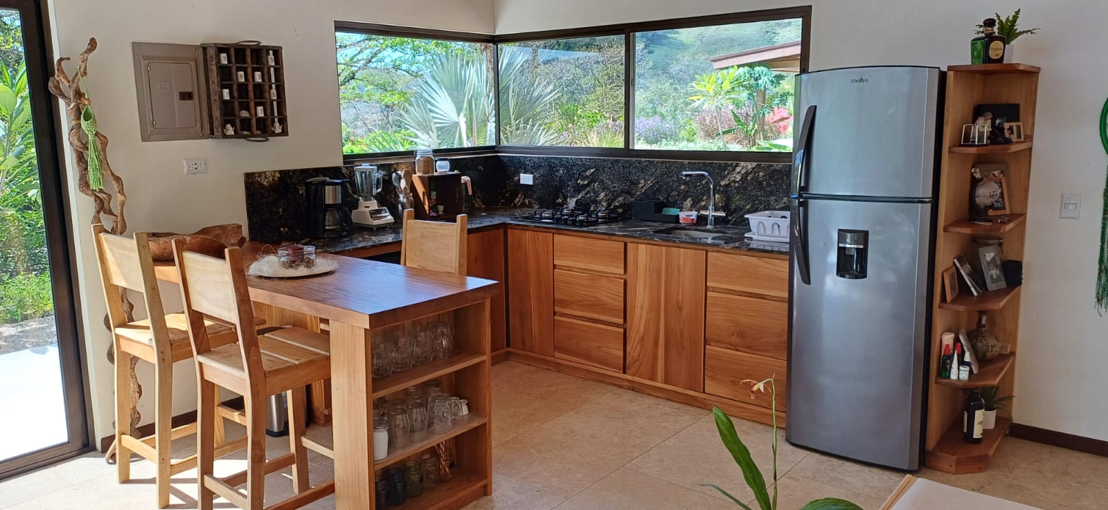 * Solid Guanacaste wood kitchen with a large cooking island