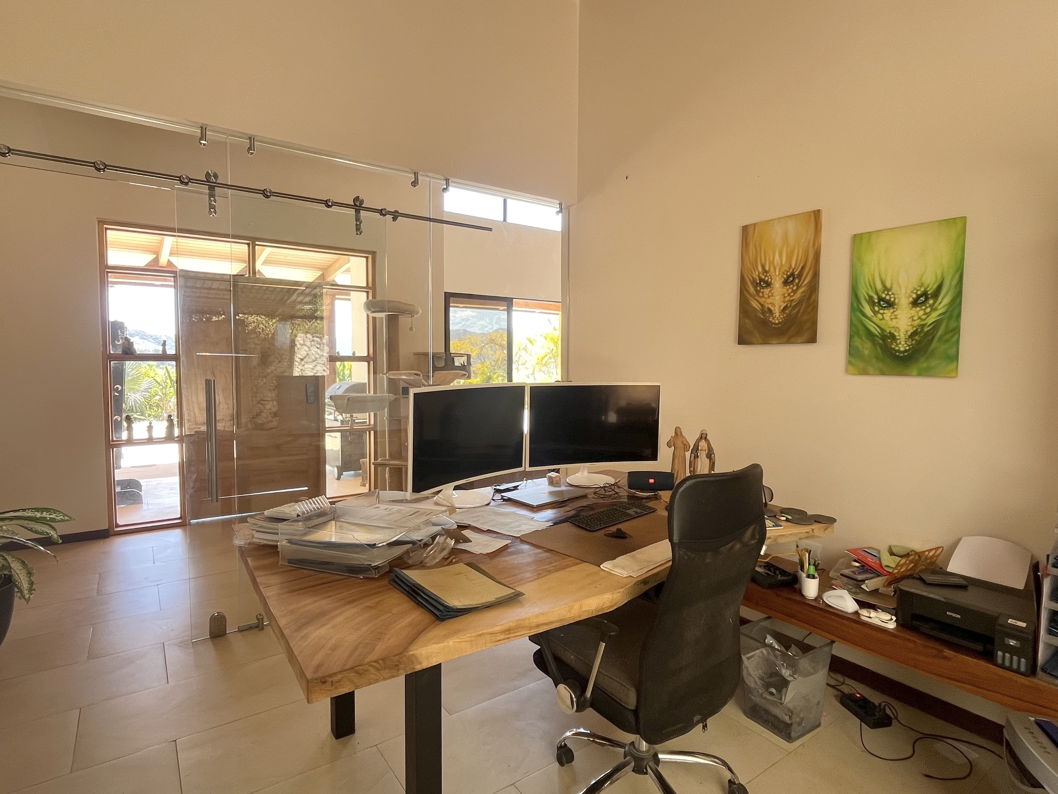 * Office with glass front and sliding glass door