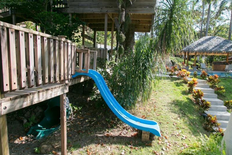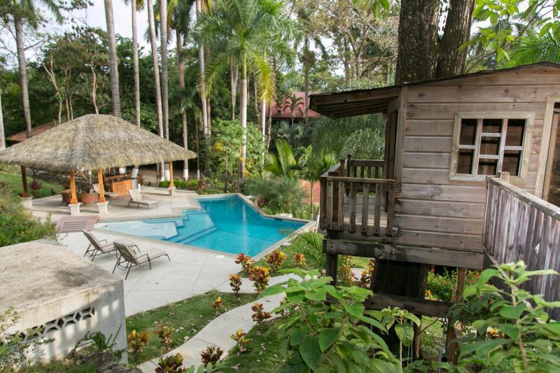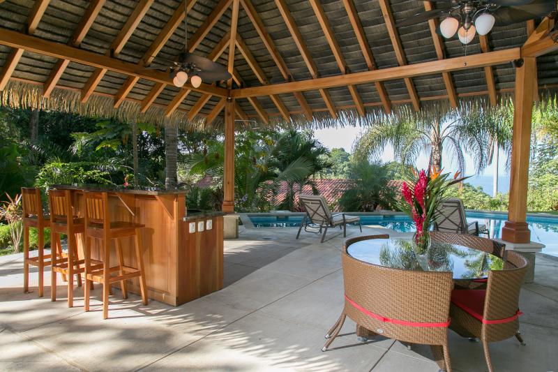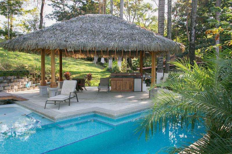 The property is half an acre in size, has a nice jungle feel to it, is very private, has a nice Pacific Ocean View, and there is plenty of property to build another large home on the property with great ocean view. The property has a great pool area, a perfect get-away from the tropical heat, and a great place to entertain with a barbecue around the pool.