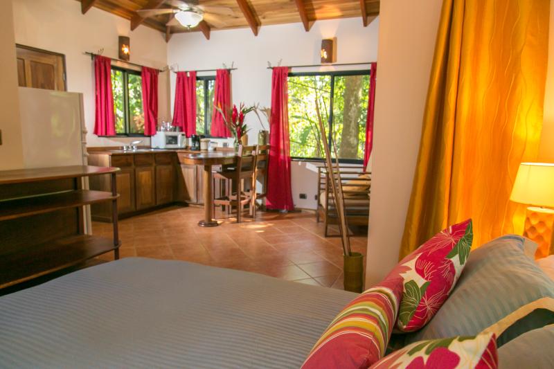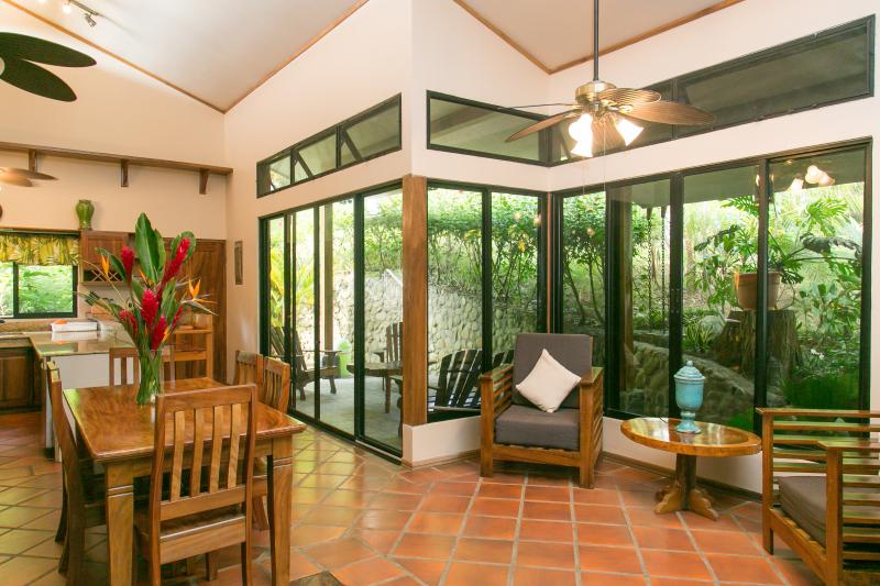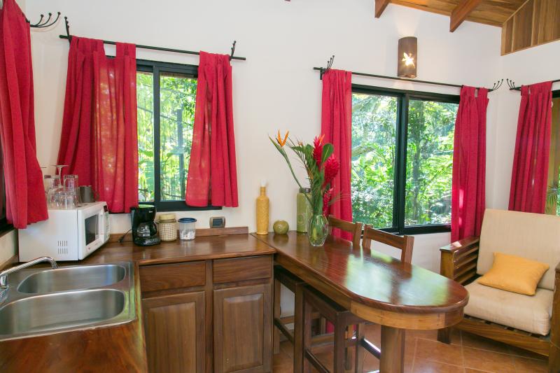 This home B&B is located in a very private area of Manuel Antonio and the compound has a total of five bedrooms, four bathrooms, a large pool area with a large deck, and a barbecue area. This is a great opportunity for a client who would like to build on a property for expansion with already existing structures on the property. The main house has a total of three bedrooms, two bathrooms, kitchen, dining room, living room, and laundry area. There are also two other studios homes on the property each a bedroom and a bathroom.