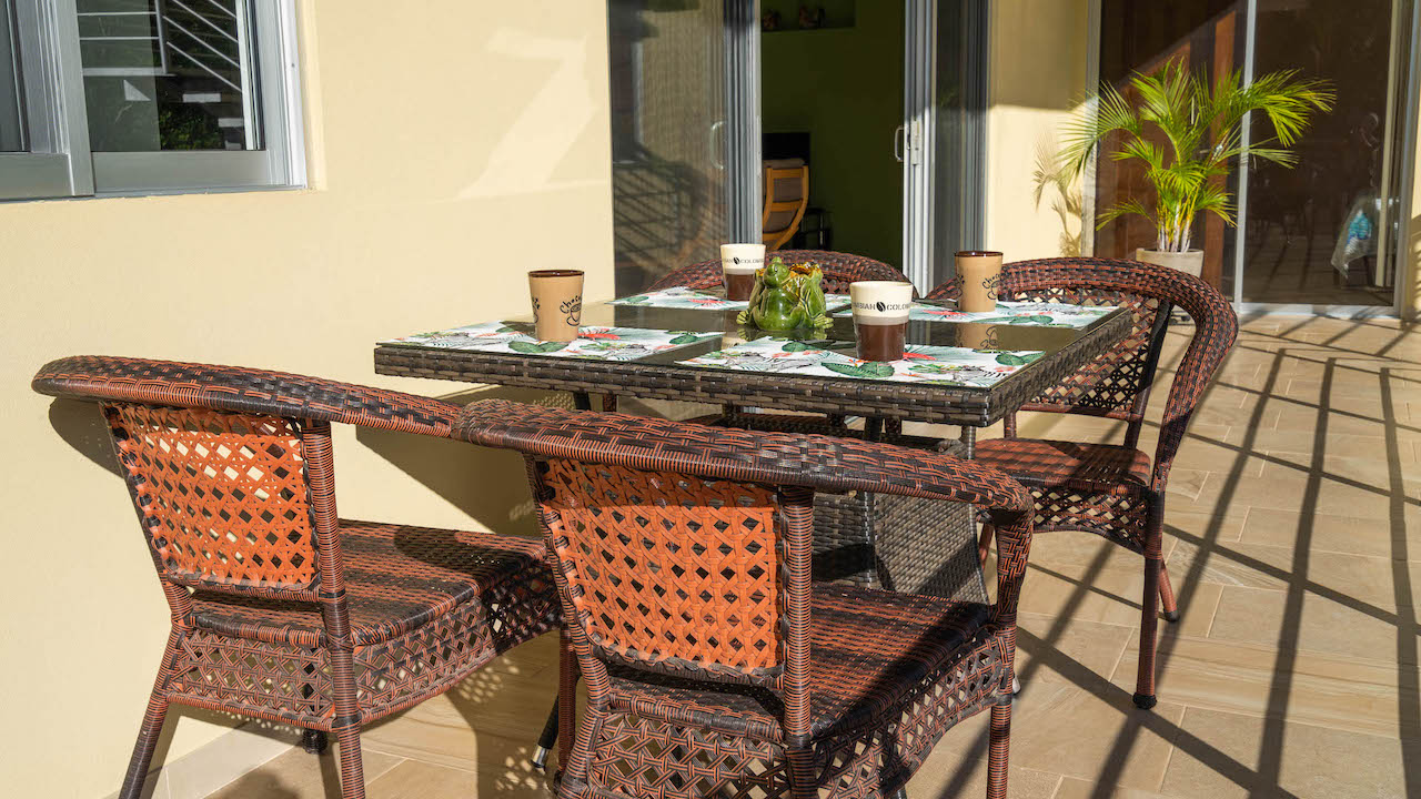 Floral gardens and tropical forest view frequented by Scarlet macaws, Mot-Mot birds, toucans and flocks of parrots. The occasional iguana sunning near the pool.