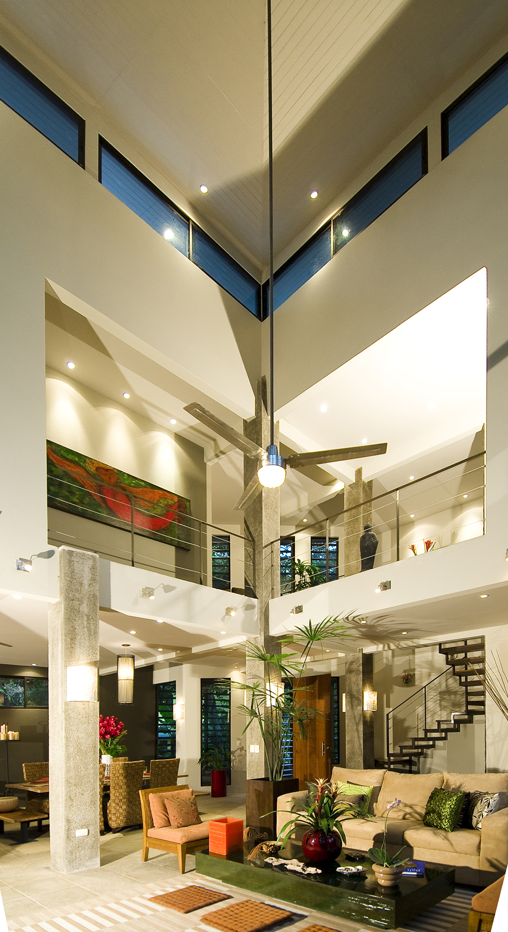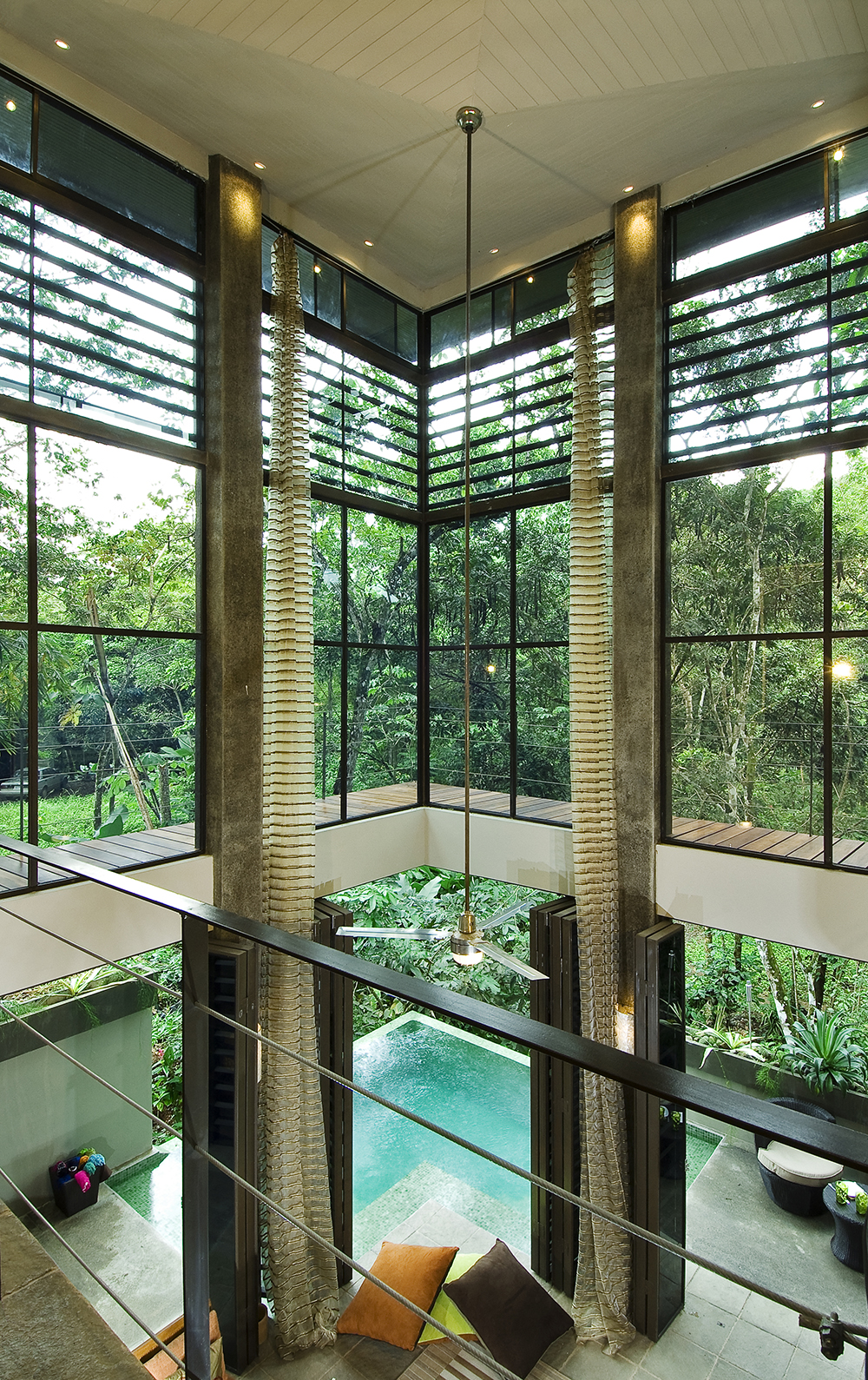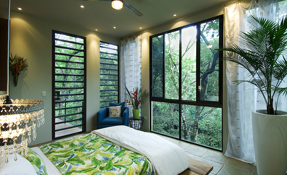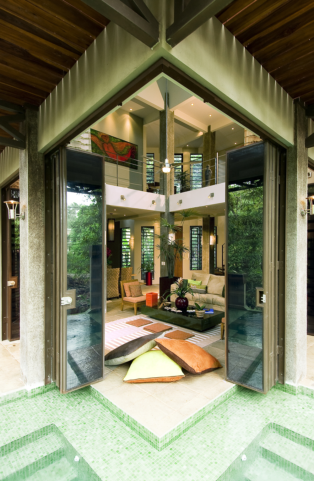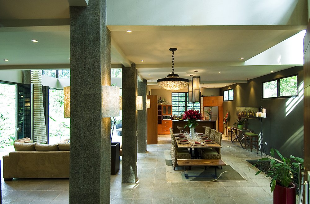 This luxury home is a contemporary masterpiece of a home combining luxury, modern architecture with an organic sense of being submersed in the rainforest that surrounds the home. The home was designed and built by an interior design specialist with the concept of blending the year round creek behind the property and rainforest of Valle Pura Vida into a luxurious living space.