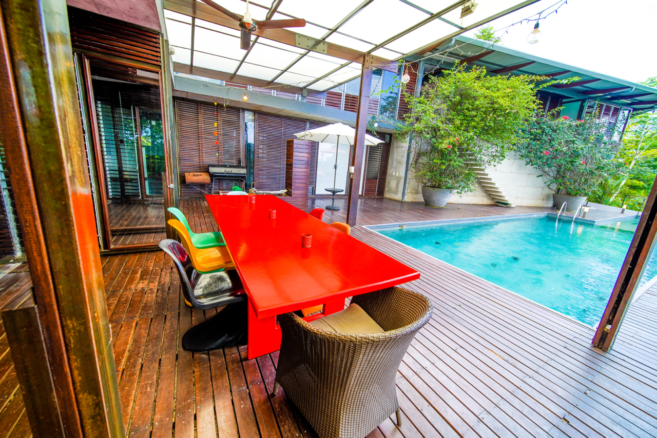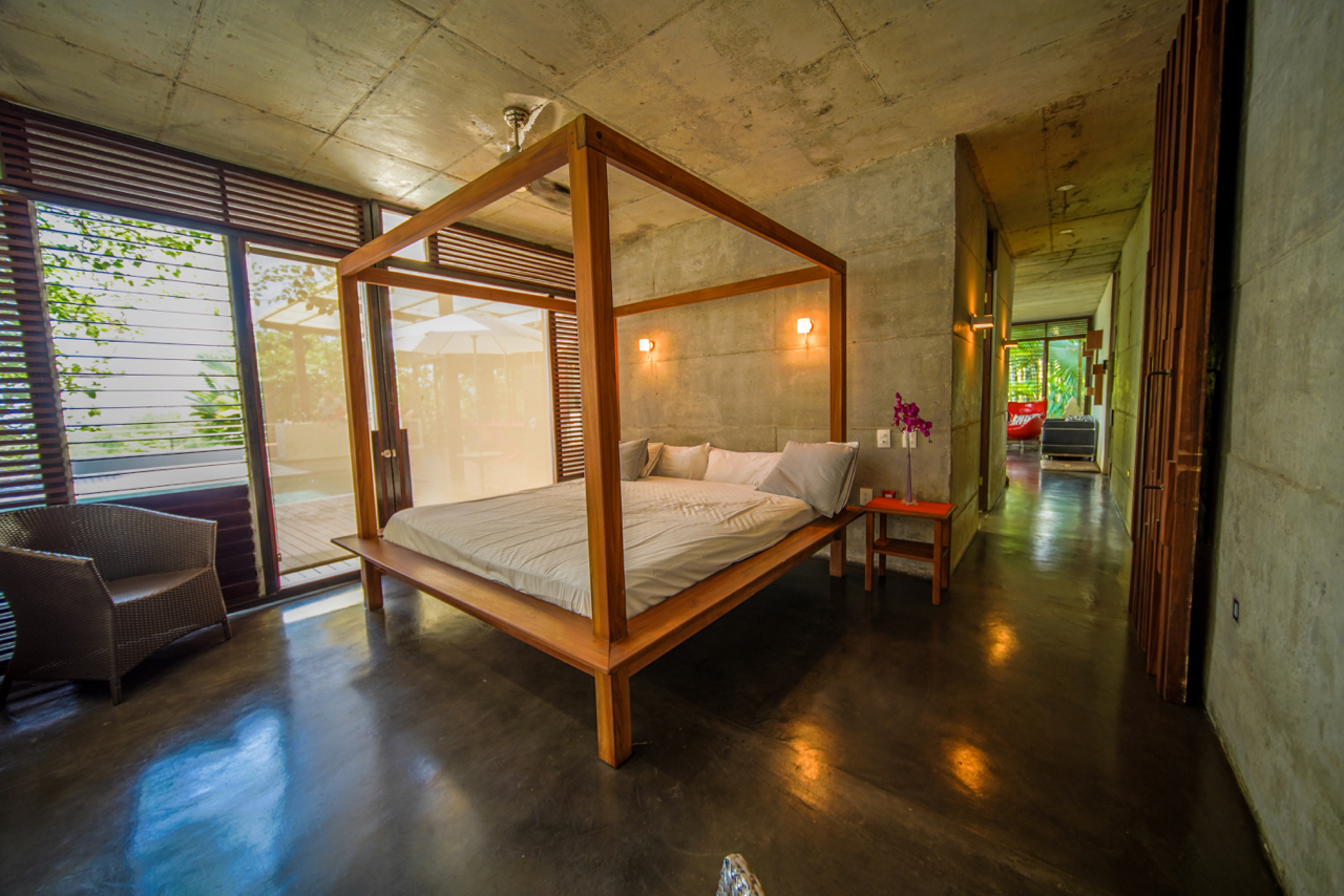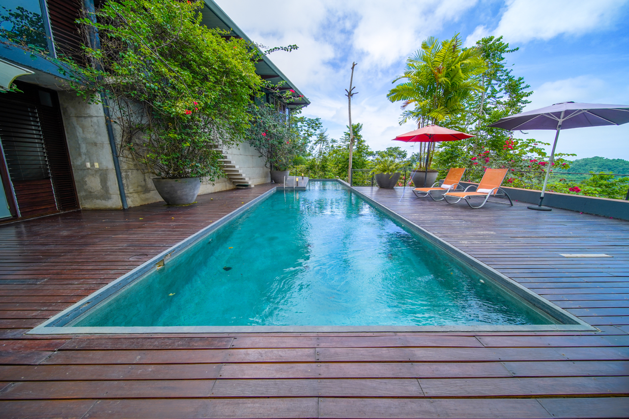 This contemporary designed home combines the elements of openness, lighting, and airflow to allow you to enjoy the flora and fauna of Costa Rica up close, but relax in the grandeur and security of the home. Light pours into the home through massive pivoting doors and glass walled sections. Each room can be individually light-flow adjusted with wide hardwood slatted louvered windows.