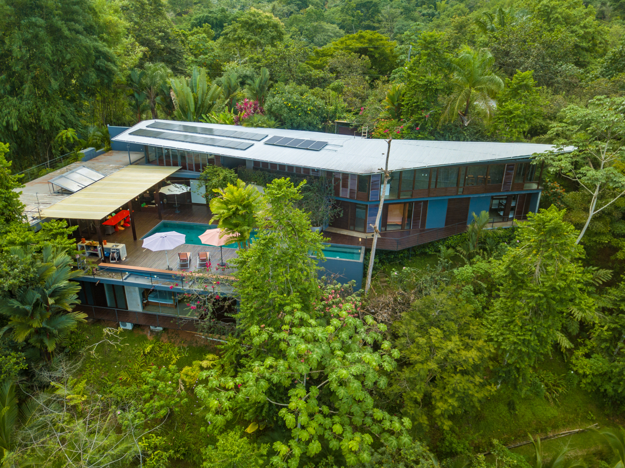Immersed in nature but with an expansive ocean-valley view, this private 4000 sq. ft, 3-level home is the ideal open concept home for the tropics, designed by a Costa Rican born, New York architect.