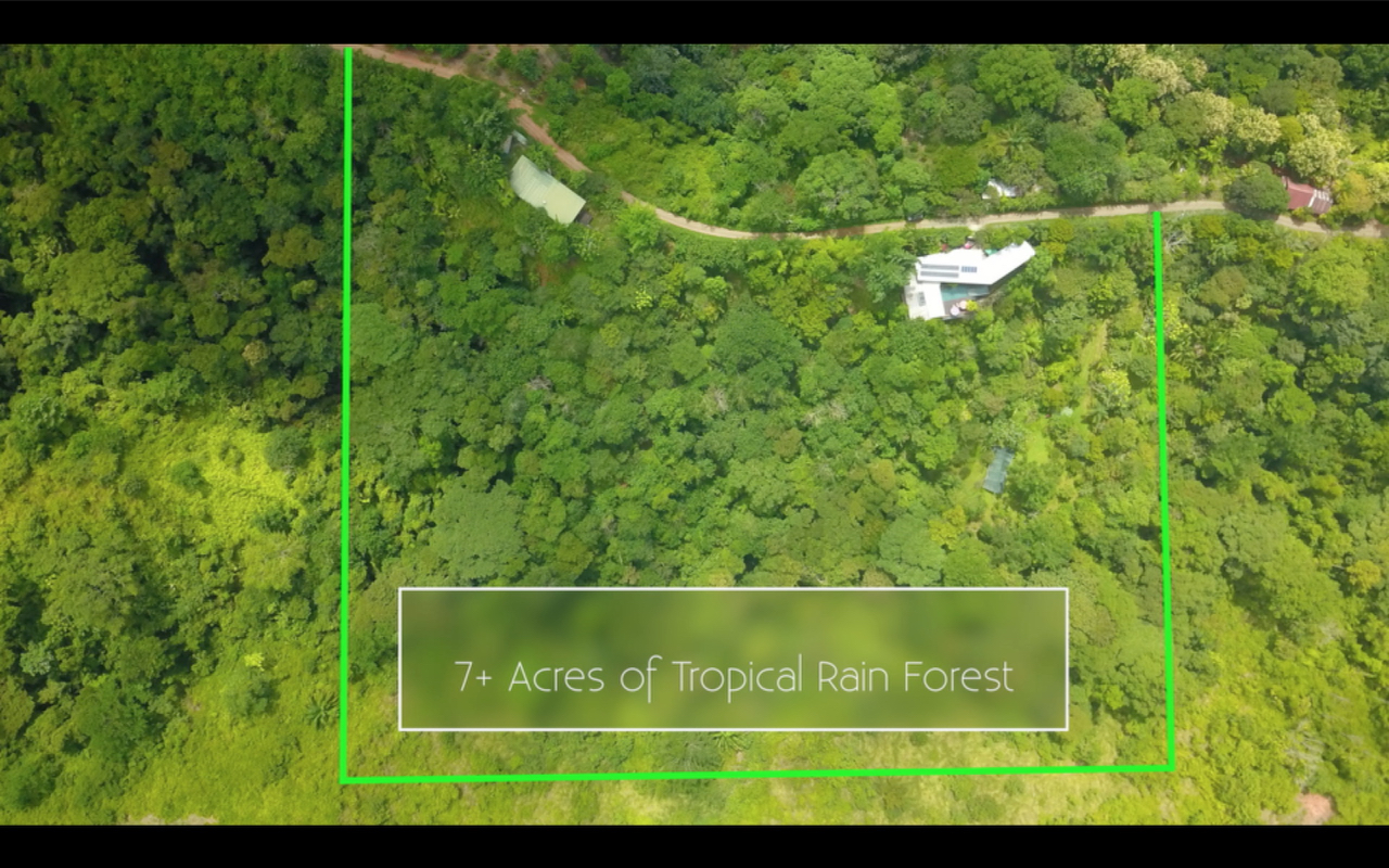 The 7+ acres of tropical forest is partially developed with fractured stone sidewalks and natural paths leading to the tropical gardens, fruit trees, palm thatched rancho and large greenhouse building. The garden and tree nursery infrastructure is already in place for continued property development if the owner so desires.