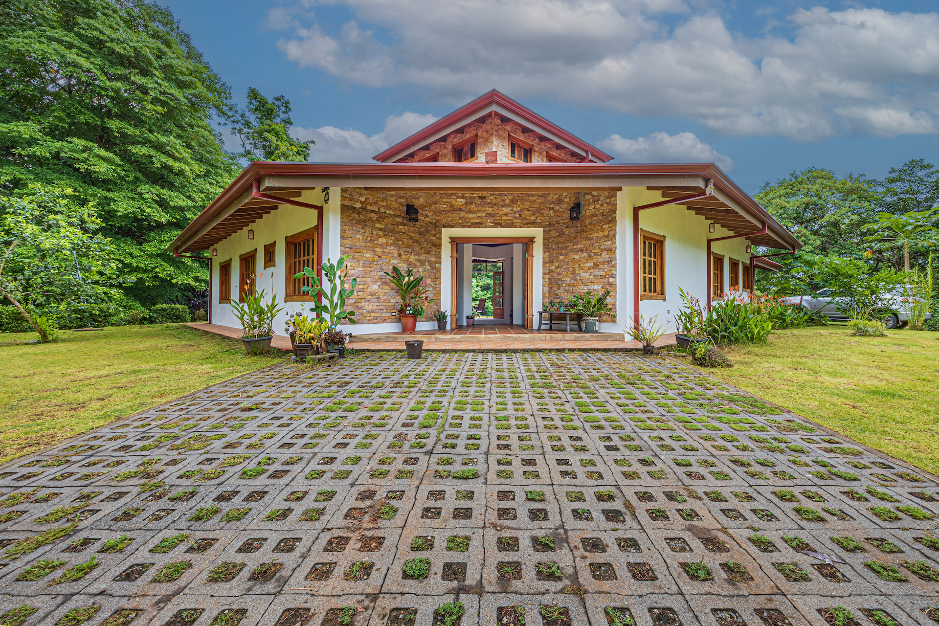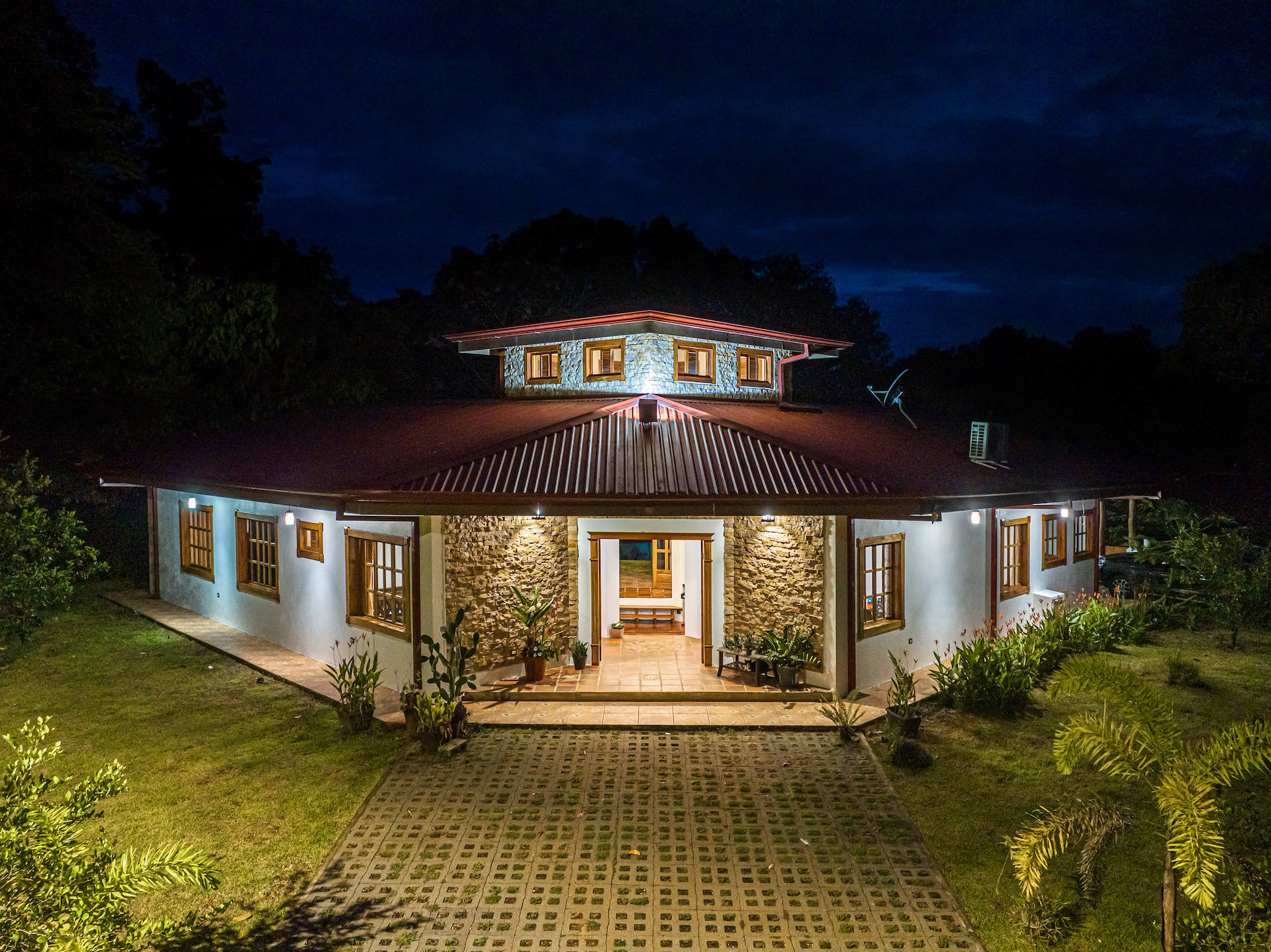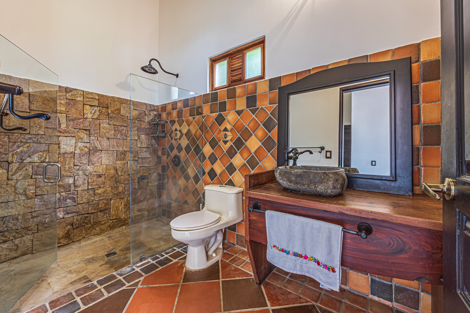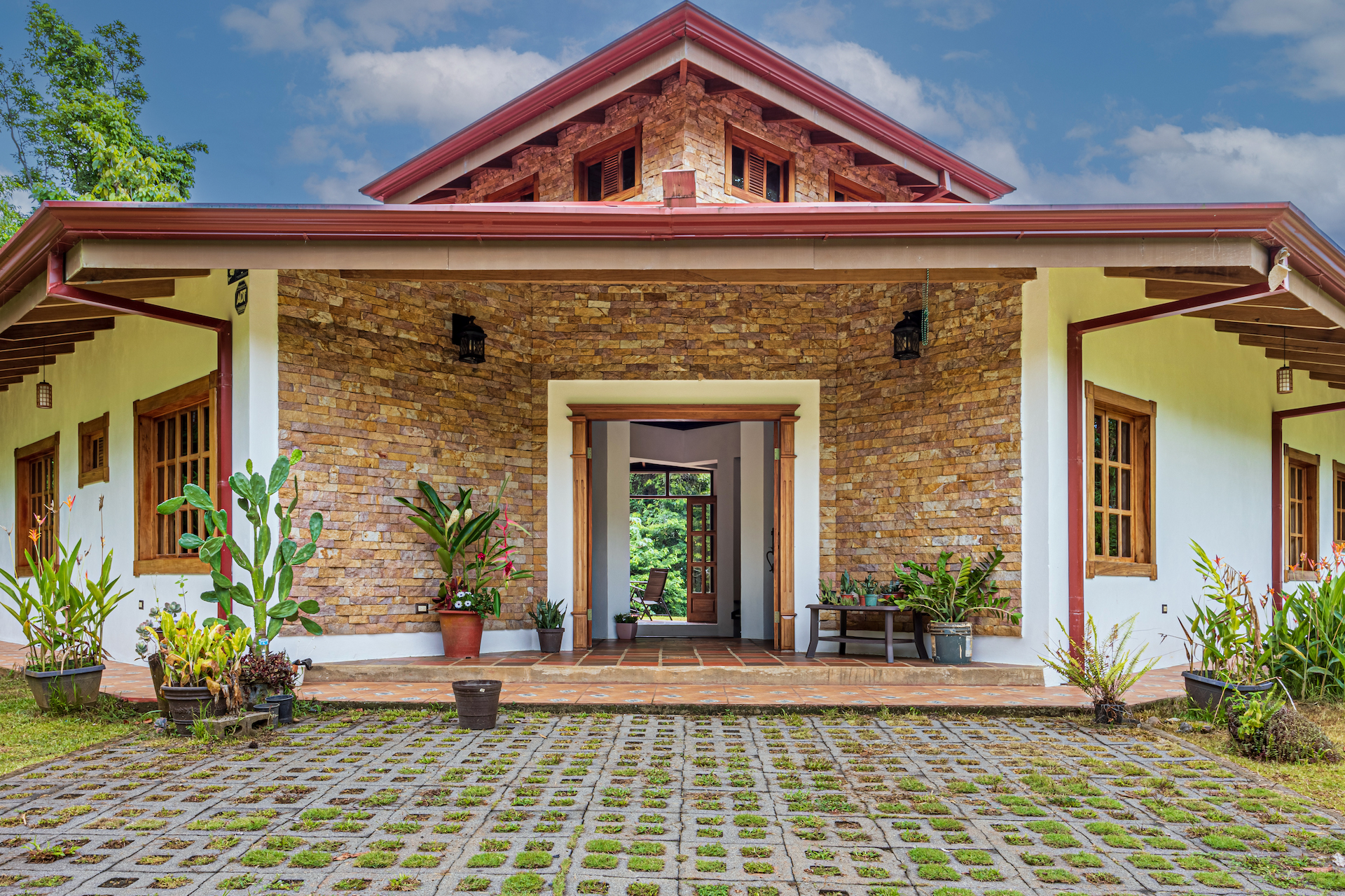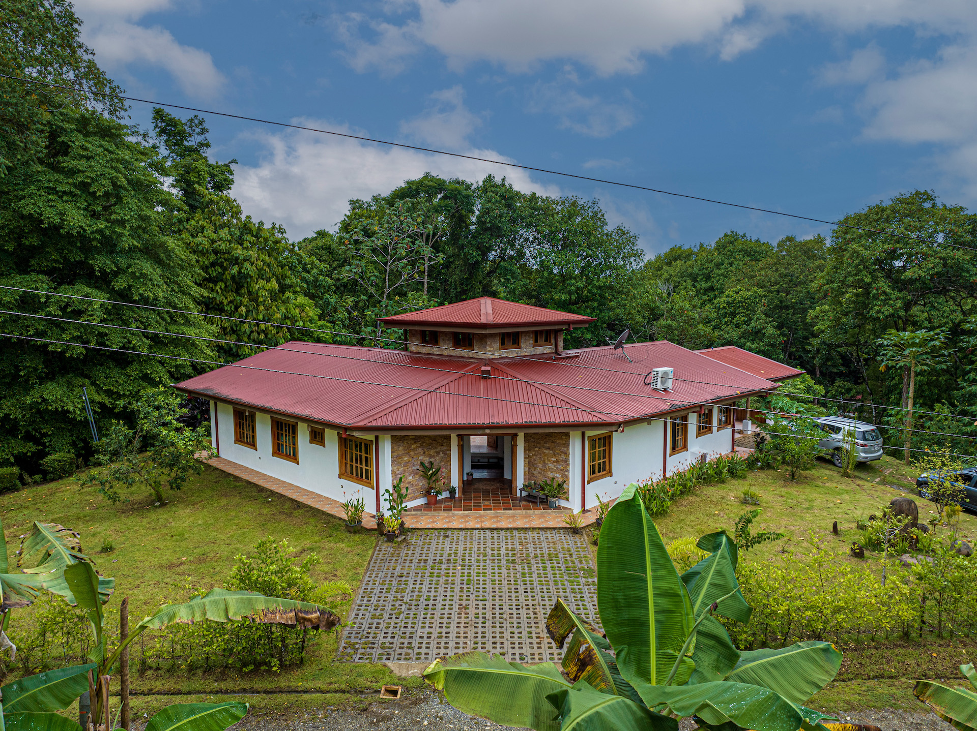 Throughout the house, you'll find exclusive wood sourced from Costa Rica, adding a touch of opulence and highlighting the natural beauty of the surroundings. The wood cabinetry and finishes further enhance the rustic charm, creating a harmonious and inviting atmosphere.