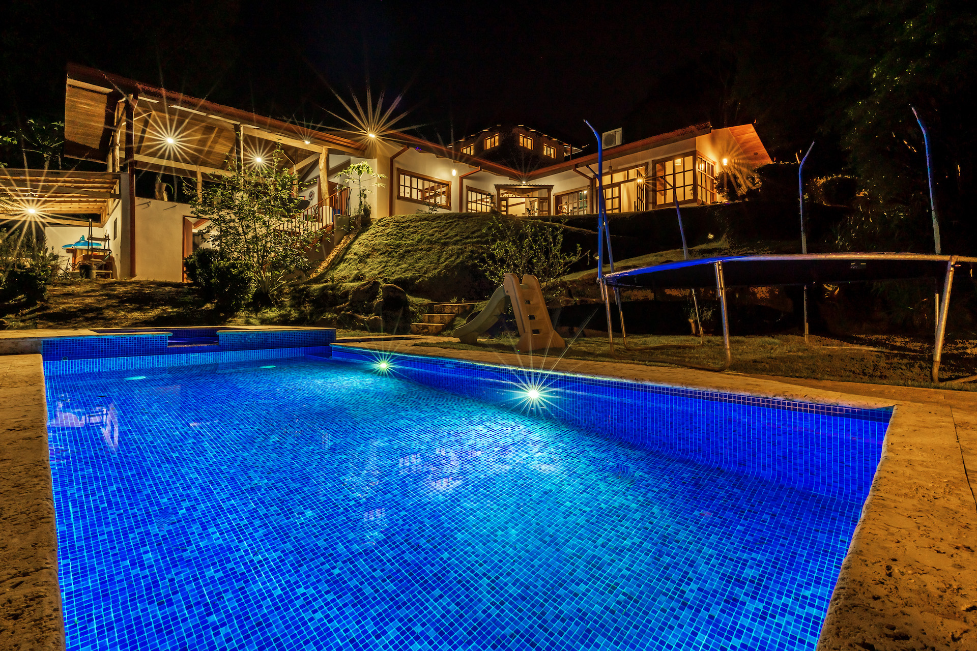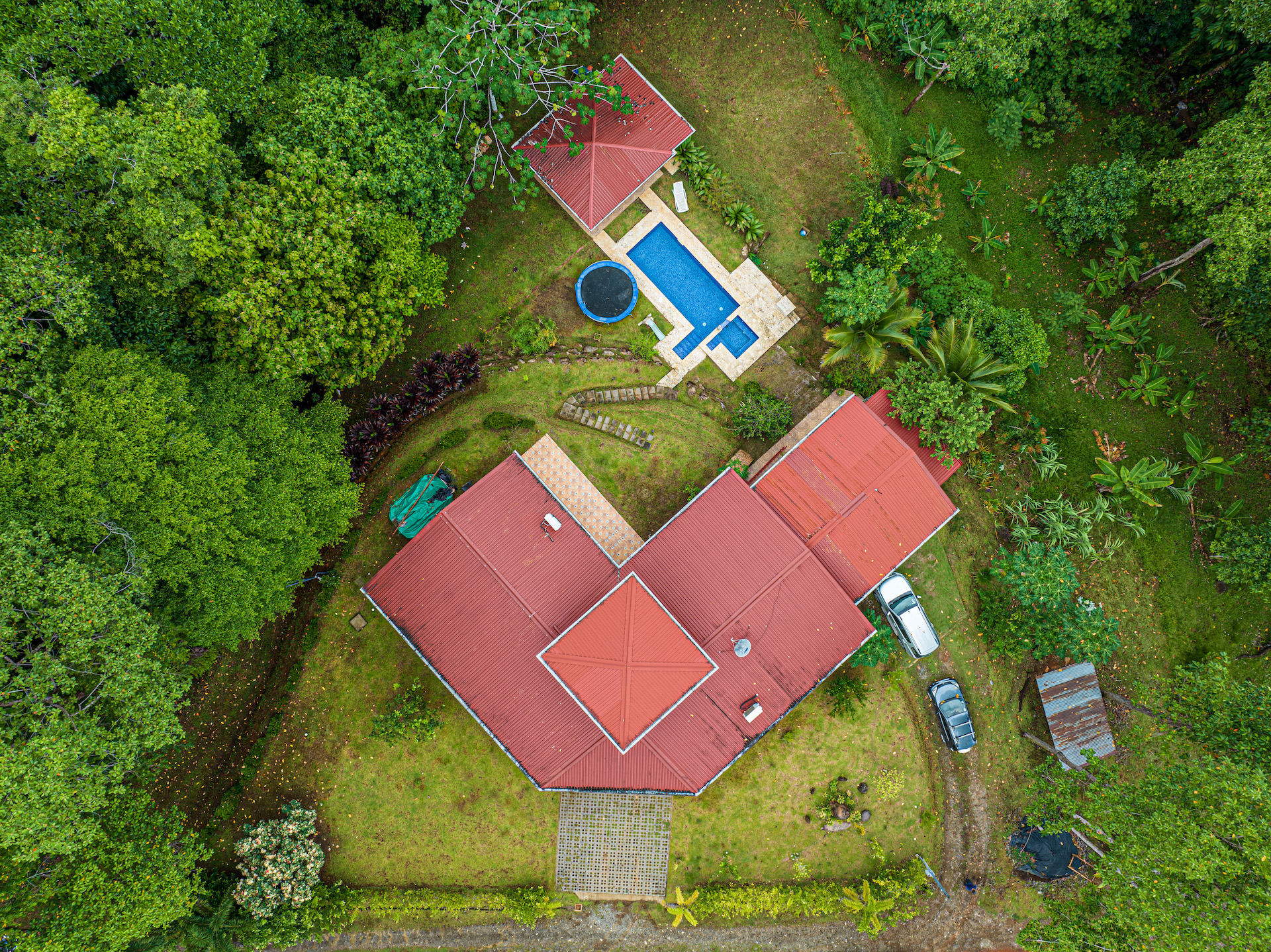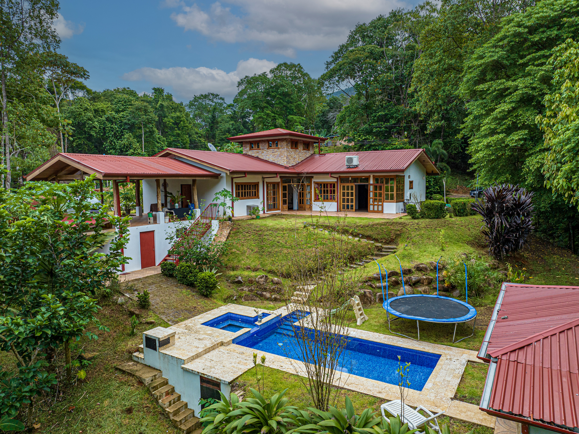 The house is enveloped by a lush tropical garden, with the jungle serving as a natural backdrop. The surrounding landscape exudes tranquility and offers a serene retreat. Additionally, there is a substantial extra building site that can be subdivided, providing potential for expansion or the construction of another substantial property. This presents an opportunity for development or customization according to your preferences.