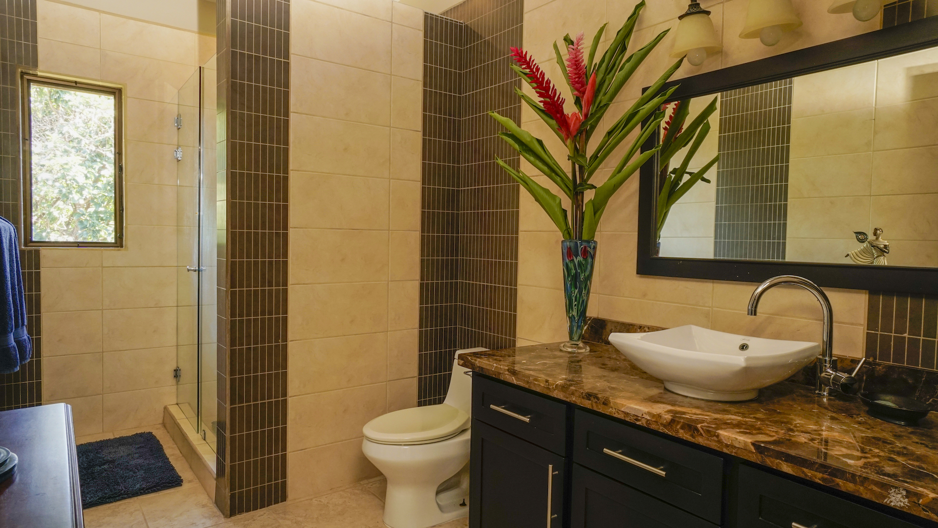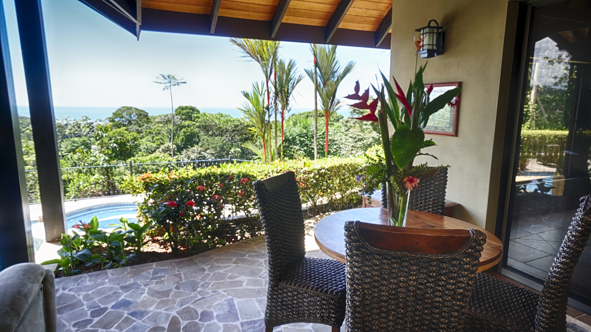 The master suite has a private exit to the pool and pool deck that provides lounging with expansive ocean views, as well as unrivaled privacy within the jungle atmosphere. The ocean view from the inside outside private shower in the master bathroom is a unique feature that any homeowner or renter will immensely enjoy. The oversized closet space and bedroom is a tropical experience that any homeowner will enjoy tremendously.