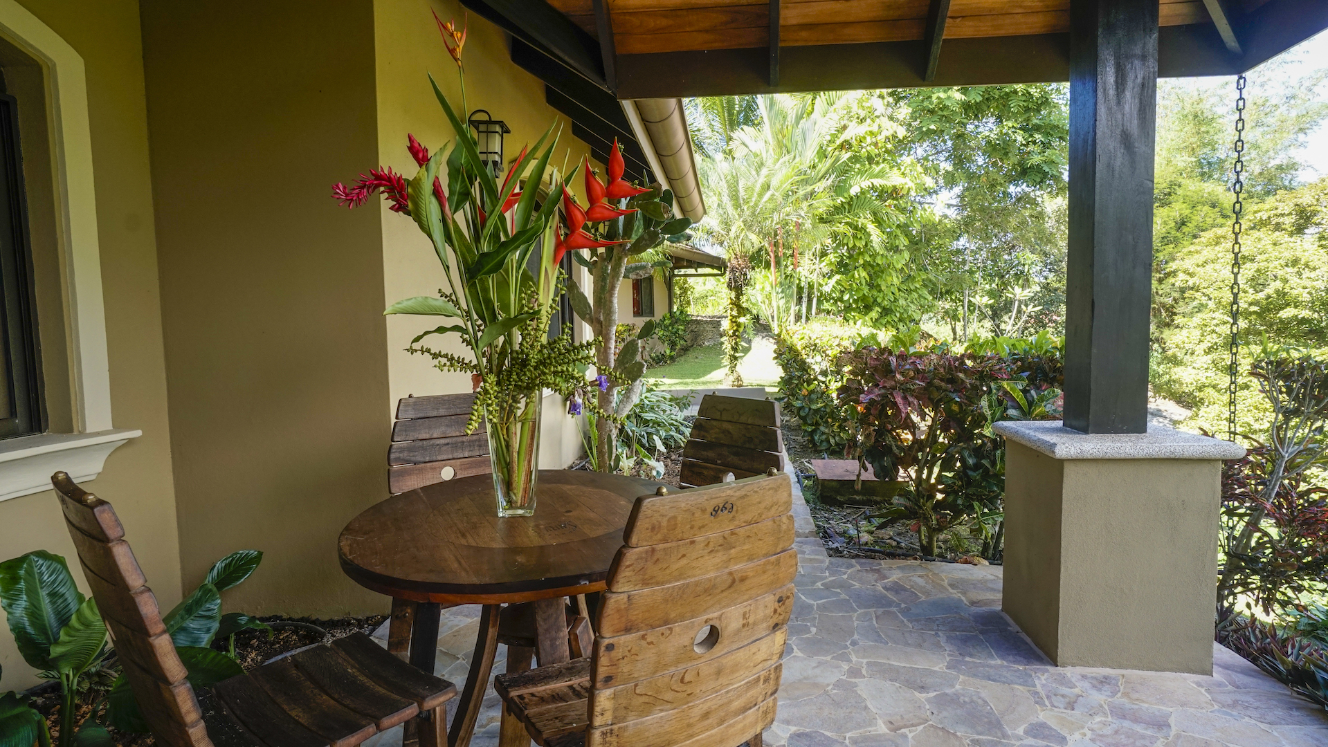 The second bedroom has a private balcony that allows one to sit and enjoy the stunning wildlife that is always active over the mountain and ocean views from this space. With a private bathroom and a large closet it makes it a very comfortable accommodation for any visitor or renter. The third bedroom currently serves as an oversized TV room and the fourth as office space, both sharing the same full bathroom located in between the two rooms. The fifth and final room is a detached guesthouse with a private bathroom with access from outside the main house. This room is perfect for a full time caretaker or visitors that would like a very private space.