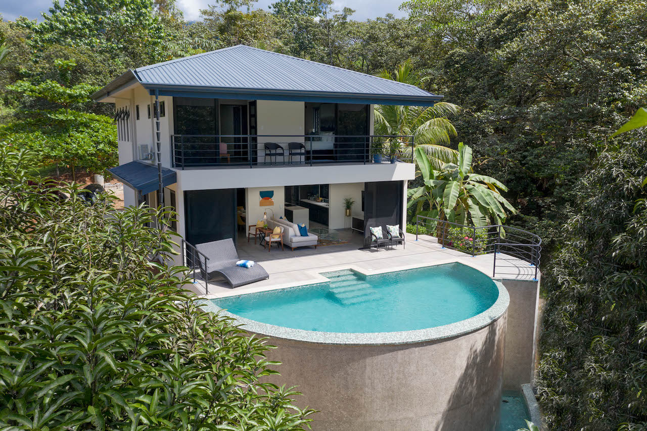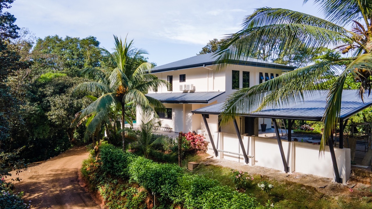 Just minutes away from restaurants, beaches and shopping, yet privately located near the end of the 2-wheel drive road in a quiet area of Ojochal, passing through the electronically controlled gate, you will find this 4+ acre rainforest estate which is a nature-lovers paradise. What truly sets this property apart from all others, is the brand new modern construction with posh furnishings and finishes, on a property that is lush, and richly landscaped with mature native tropical plants. A creek borders one side of the property, then winds and crosses through the back portion of the acreage. Accessed via internal grass-covered roads, you can explore the entirely usable land, including one large flat area, and several other slightly sloped areas affording the possibility of additional construction sites or permaculture and orchards. We have done our best with the photos and virtual tour video, to give you a taste of what’s in store, however you must see for yourself, to really take it all in and be able to appreciate this incredibly manicured park-like property. Pick your own mangos and enjoy watching the wildlife including sloths, monkeys, toucans, parrots and more!