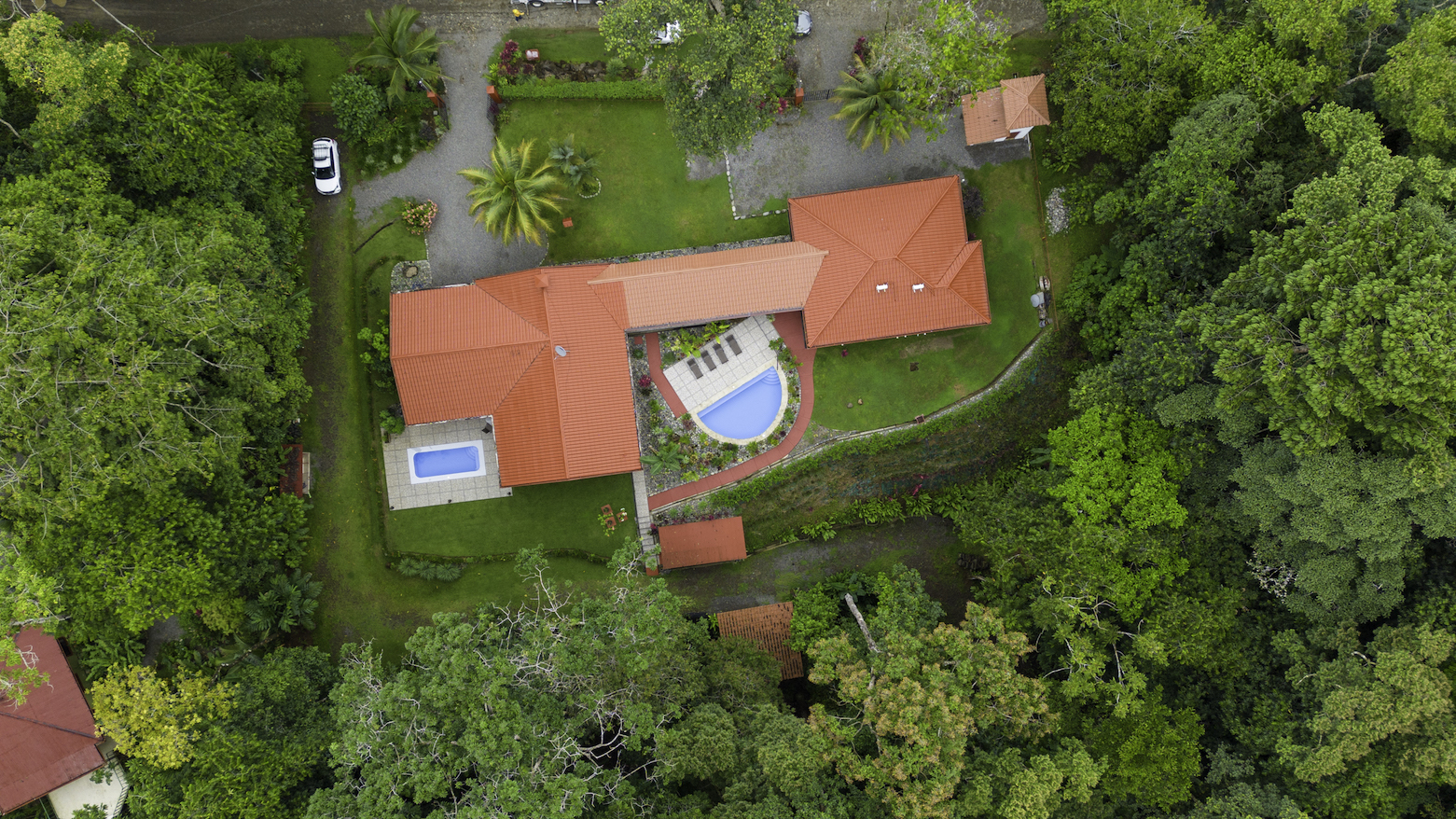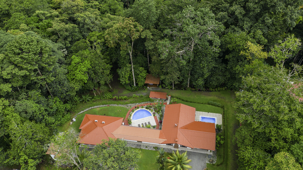 This spectacular jungle-river property is located in the 725 acre wildlife corridor residential development of Cinco Ventanas. Only minutes to beaches, full services and the coastal highway. Unique within the development, this jungle river Villa is conveniently located on the community maintained road yet features privacy and full immersion in the Costa Rica biodiversity experience. Monkeys, Toucans, Parrots, Morphos and a full range of flora and fauna can be observed while basking in either of 2 pools, relaxing on the wildlife deck, dining outdoors or visiting the 100 meters of river frontage. The year-round Rio Media Luna borders the entire Cinco Ventanas development on one side and has a nearby artesian source providing crystal clear, clean water.
