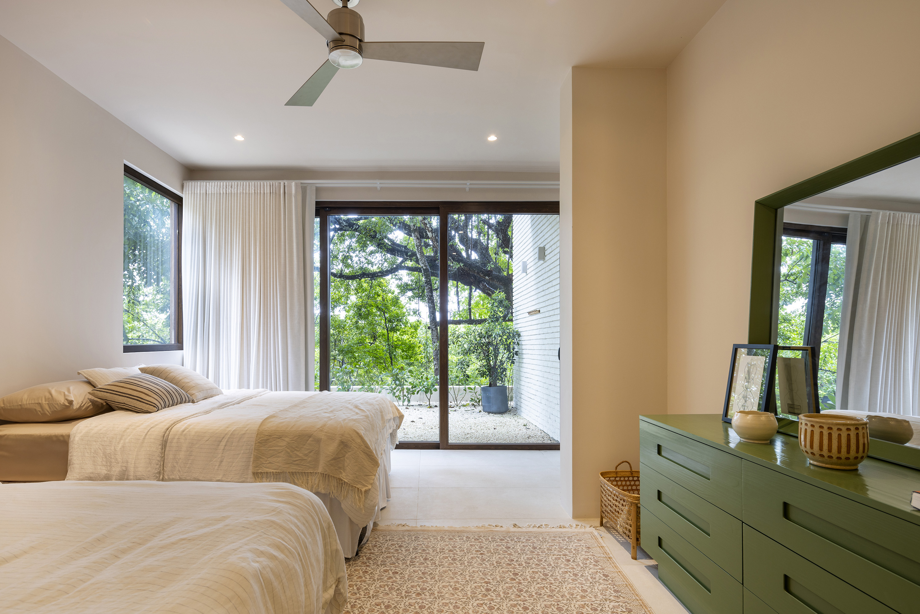 This stunning 5-bedroom home, designed by an architect as a personal family sanctuary, is truly one-of-a-kind. Located just 10 minutes from the beautiful white sand beach of Playa Hermosa, with its year-round all-level friendly surf breaks, it offers the perfect combination of privacy and convenience. Surrounded by lush jungle views, the home features a unique architectural design that seamlessly blends modern elegance with nature’s beauty, a rare find in the Santa Teresa real estate market.