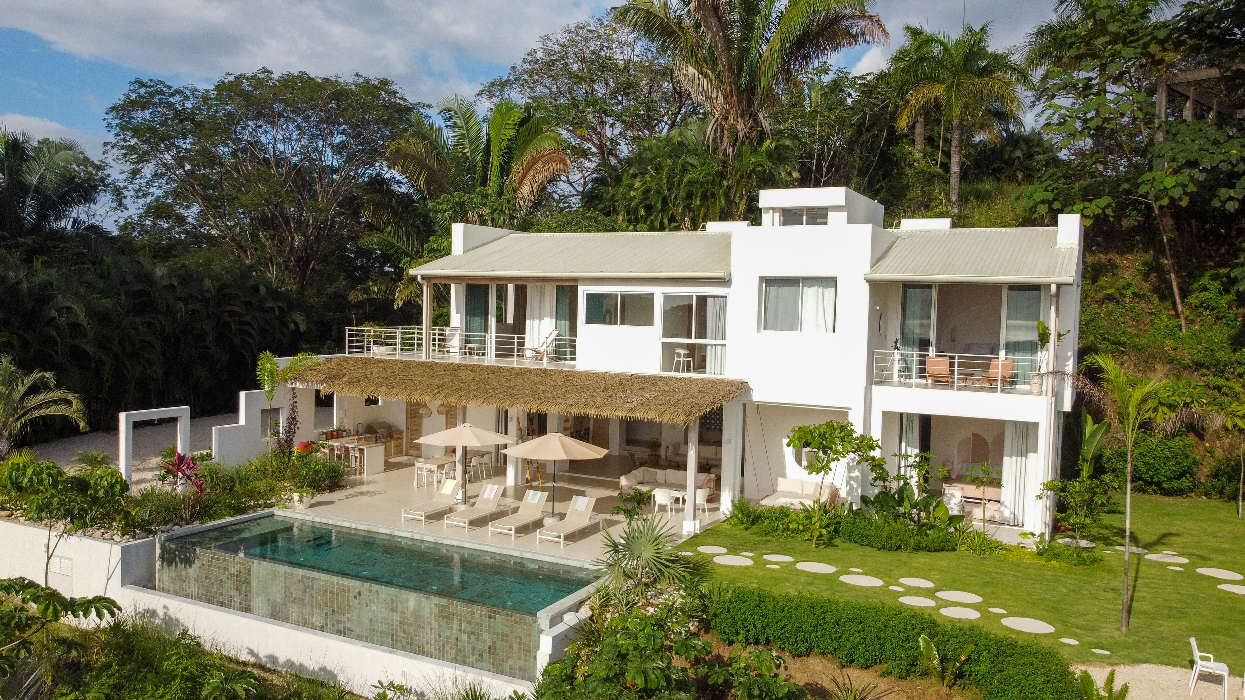 Casa Niri is a designer 5-bedroom villa nestled into the hills above Samara Beach, Costa Rica. Richly detailed and filled with light, all rooms in this boutique residence offer floor to ceiling glass doors and windows with sublime views across the jungle valley to the surf of the Pacific Ocean.