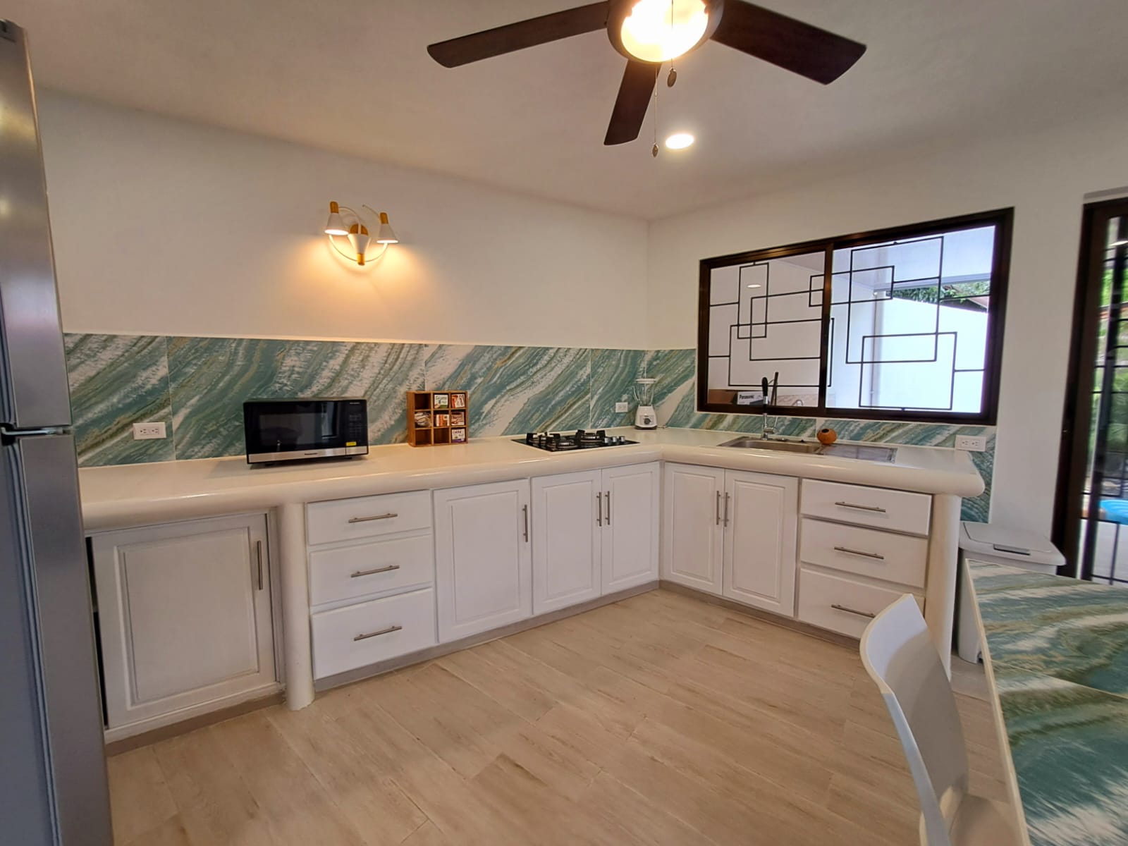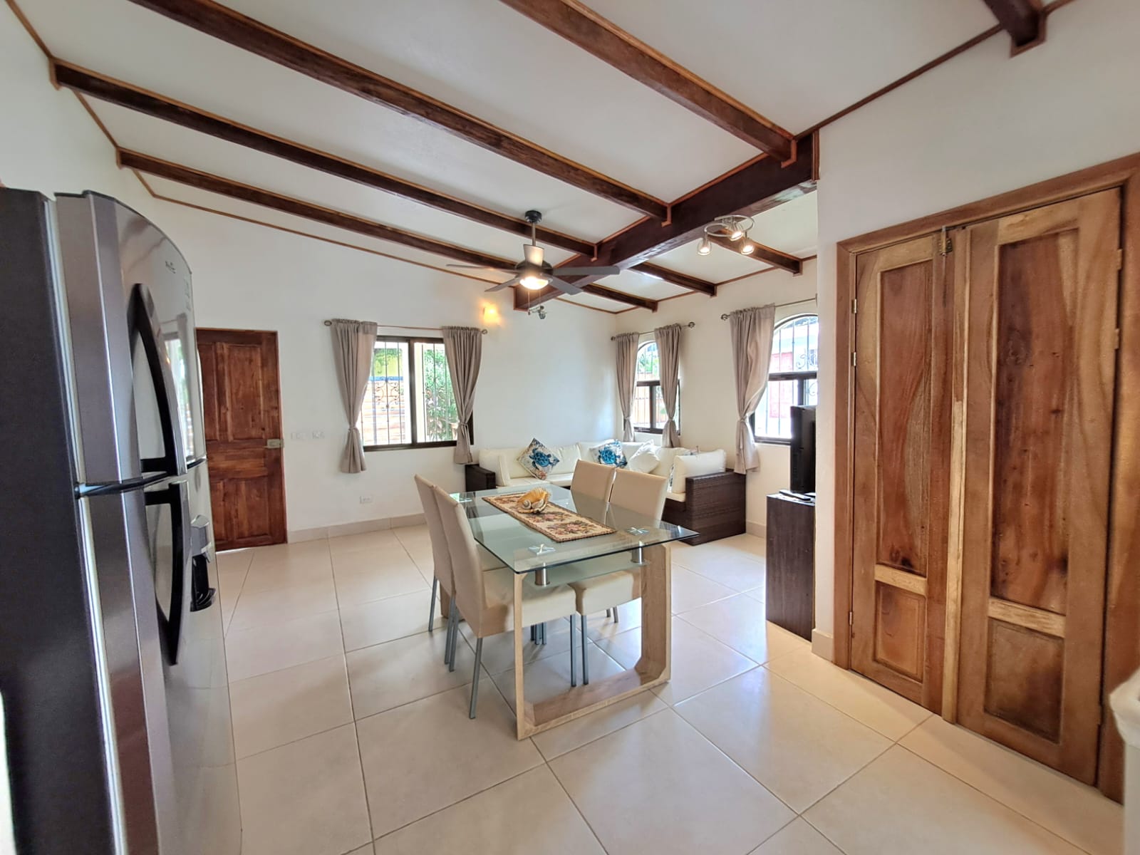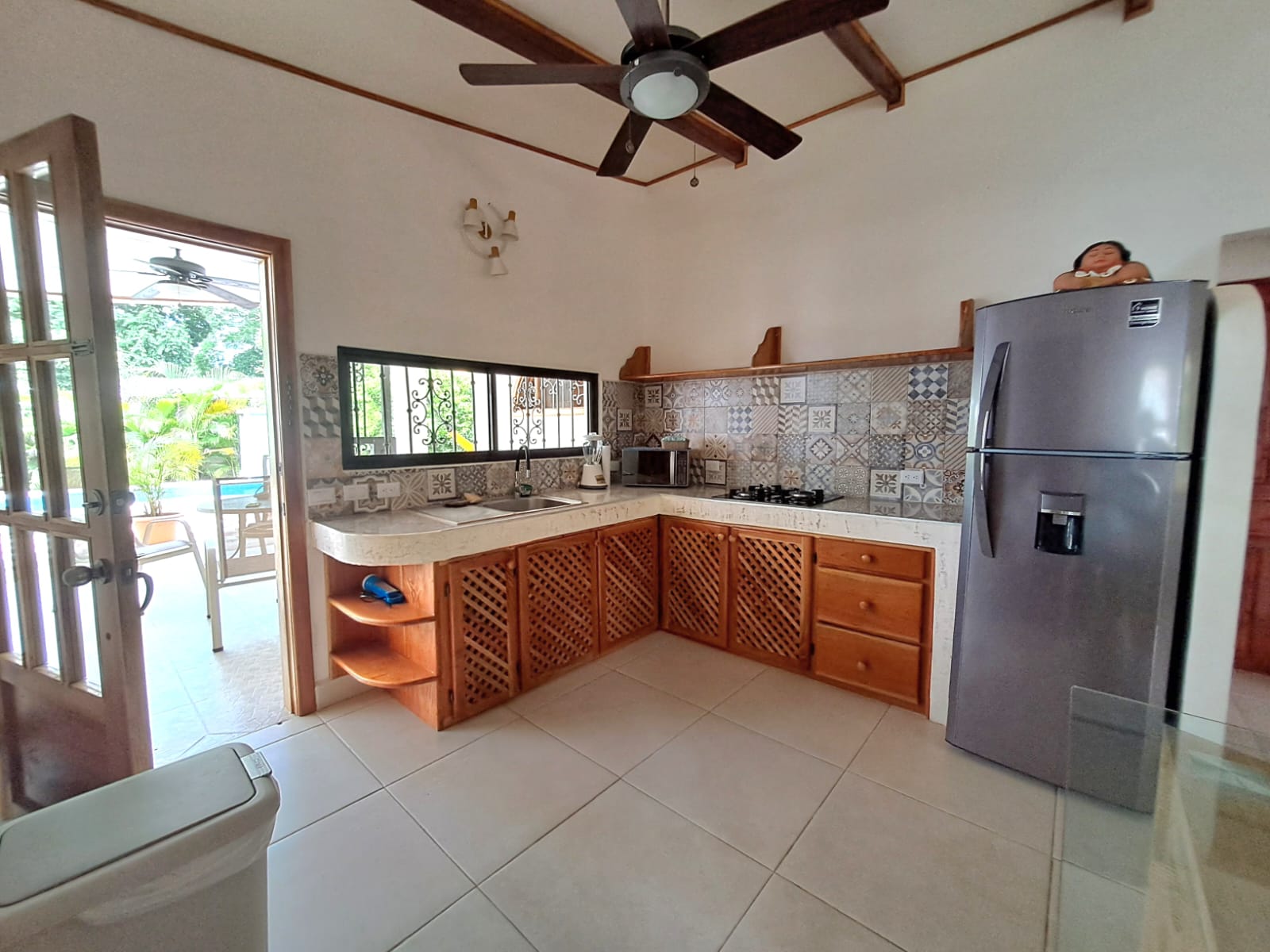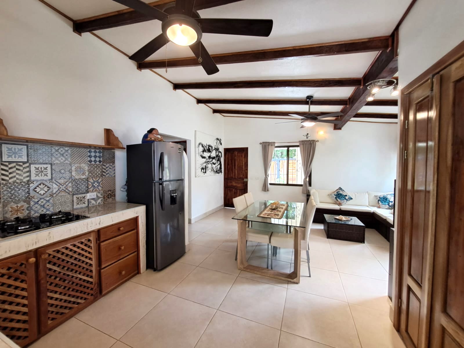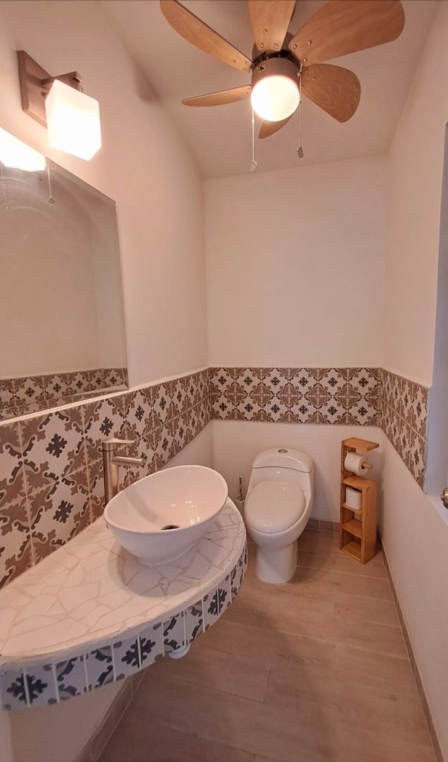 The second house, also renovated in 2024, embraces the ambiance and tranquility of the Costa Rican - Pura vida living style. The main area includes a totally furnished living room and a fully equipped kitchen, leading to an open terrace, garden, outdoor kitchenette, and a very elegant pool. Two charming bedrooms are located to the right of the living room, separated by a bathroom. Fully furnished and equipped, this house features tasteful decoration and high-quality renovation materials.
