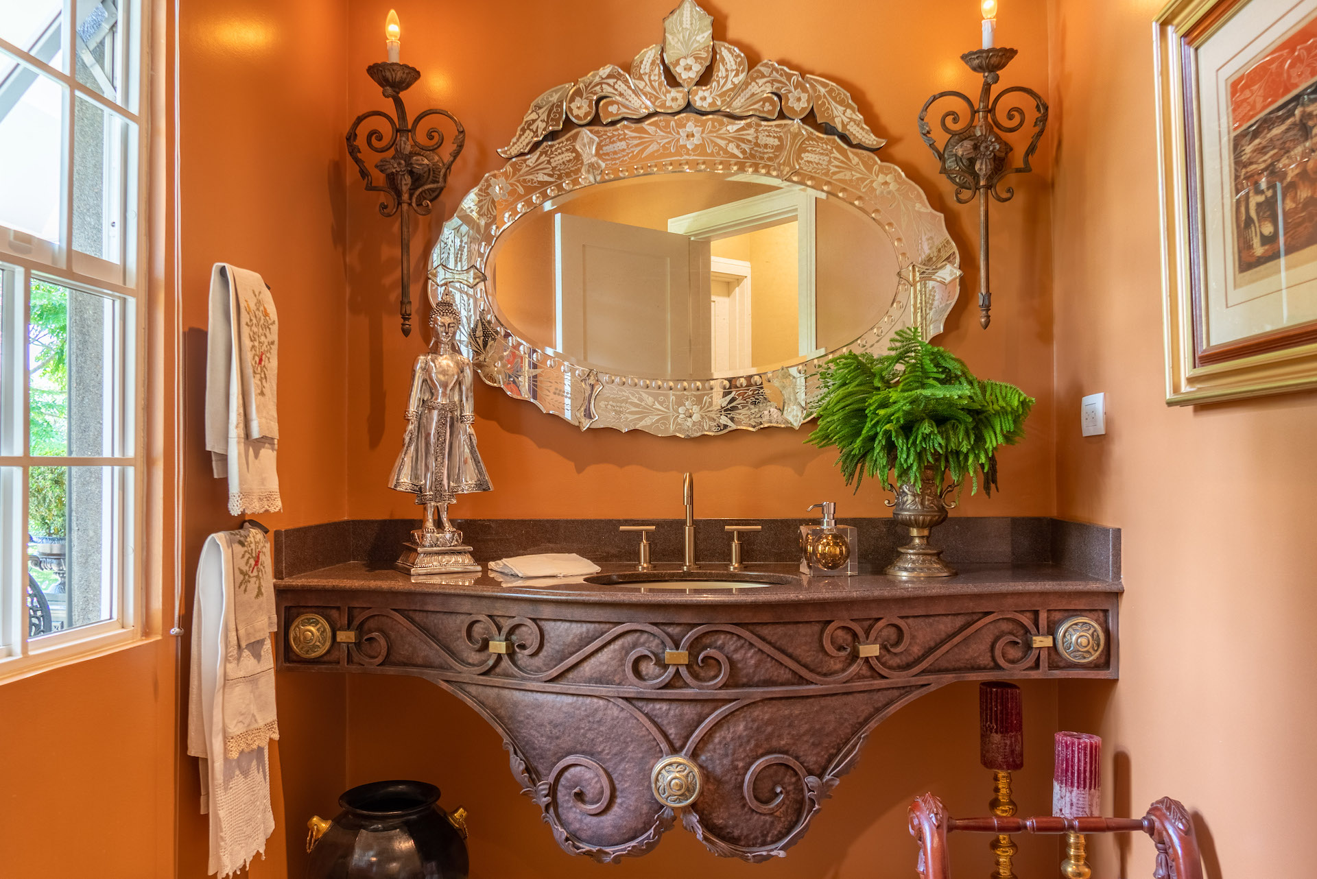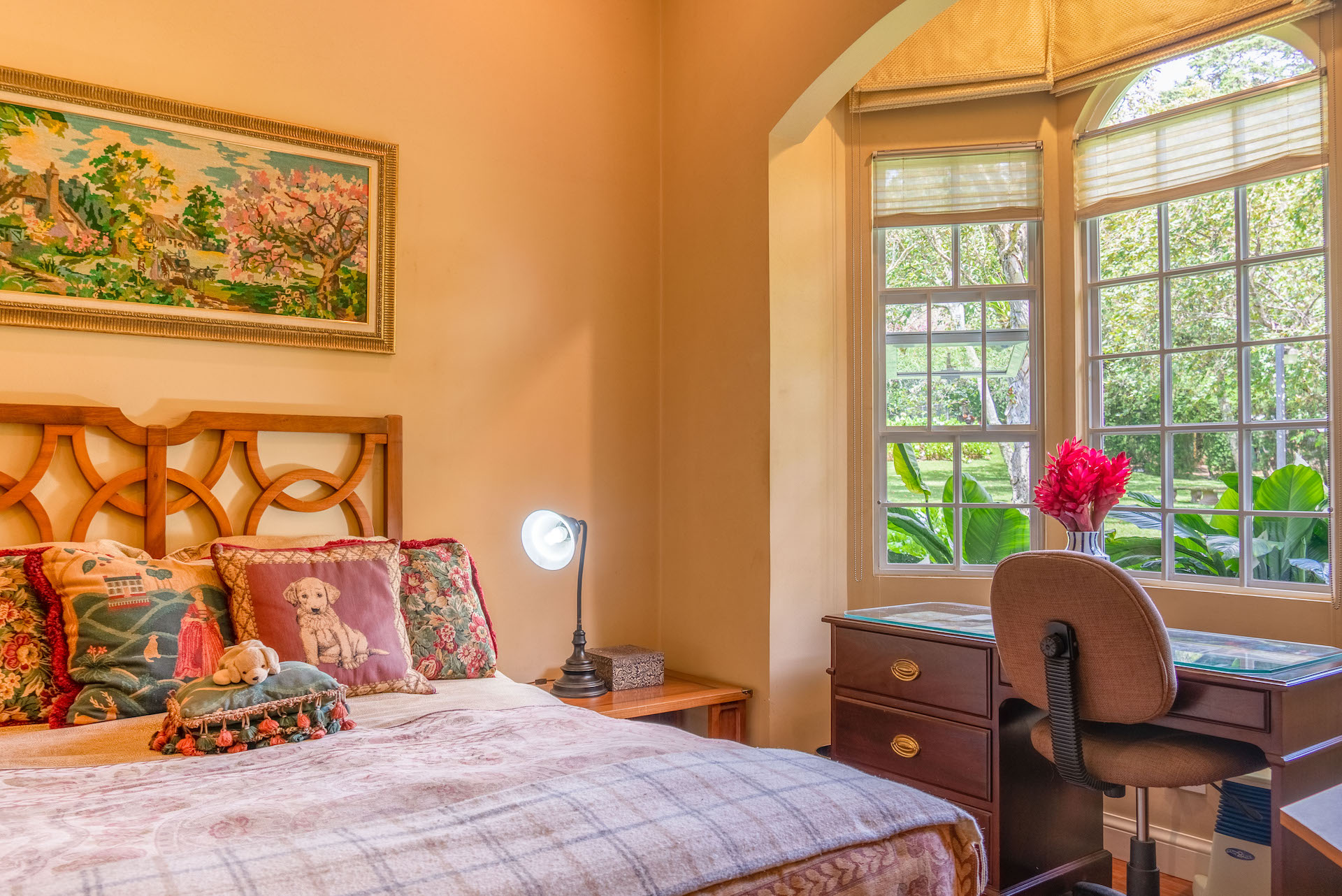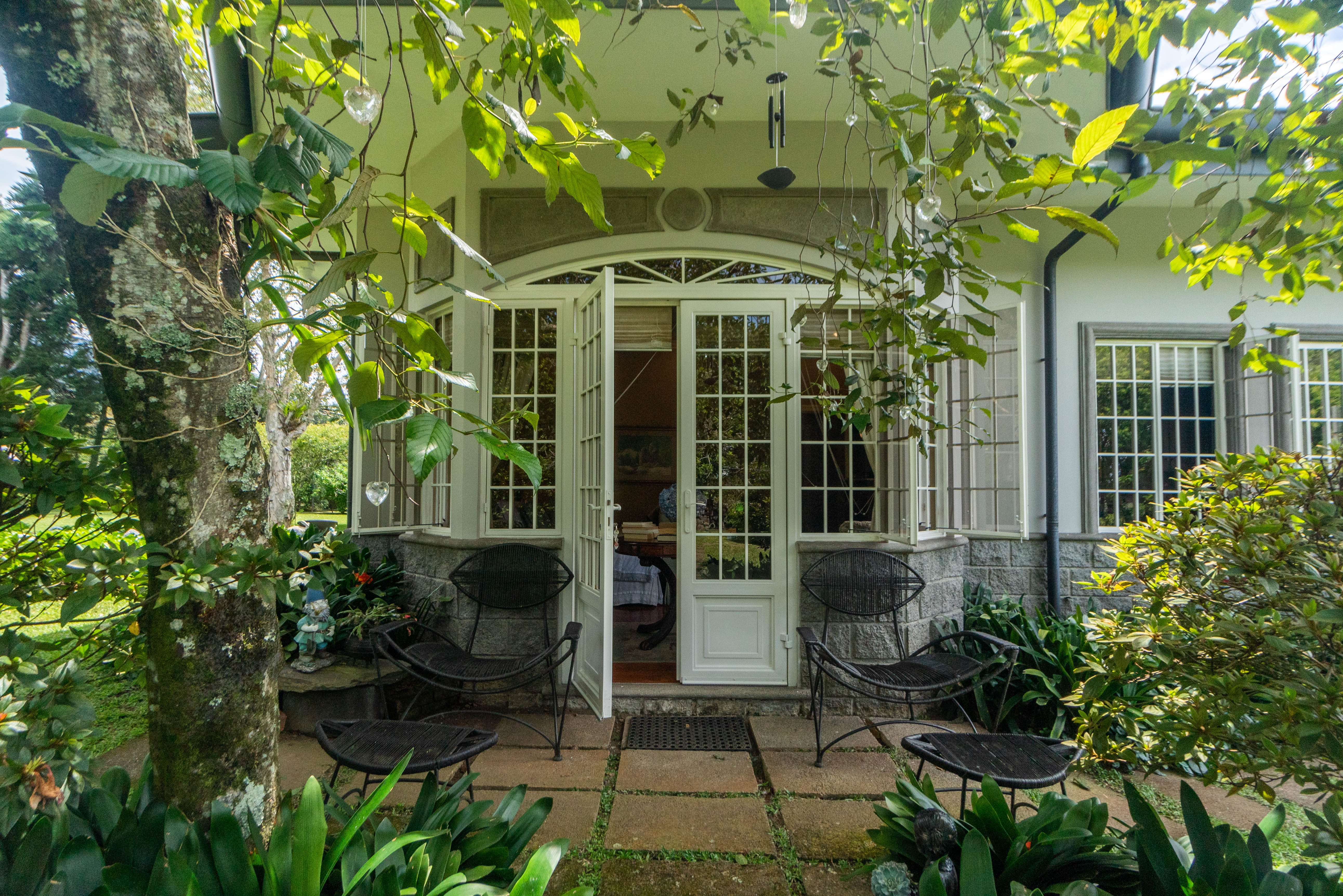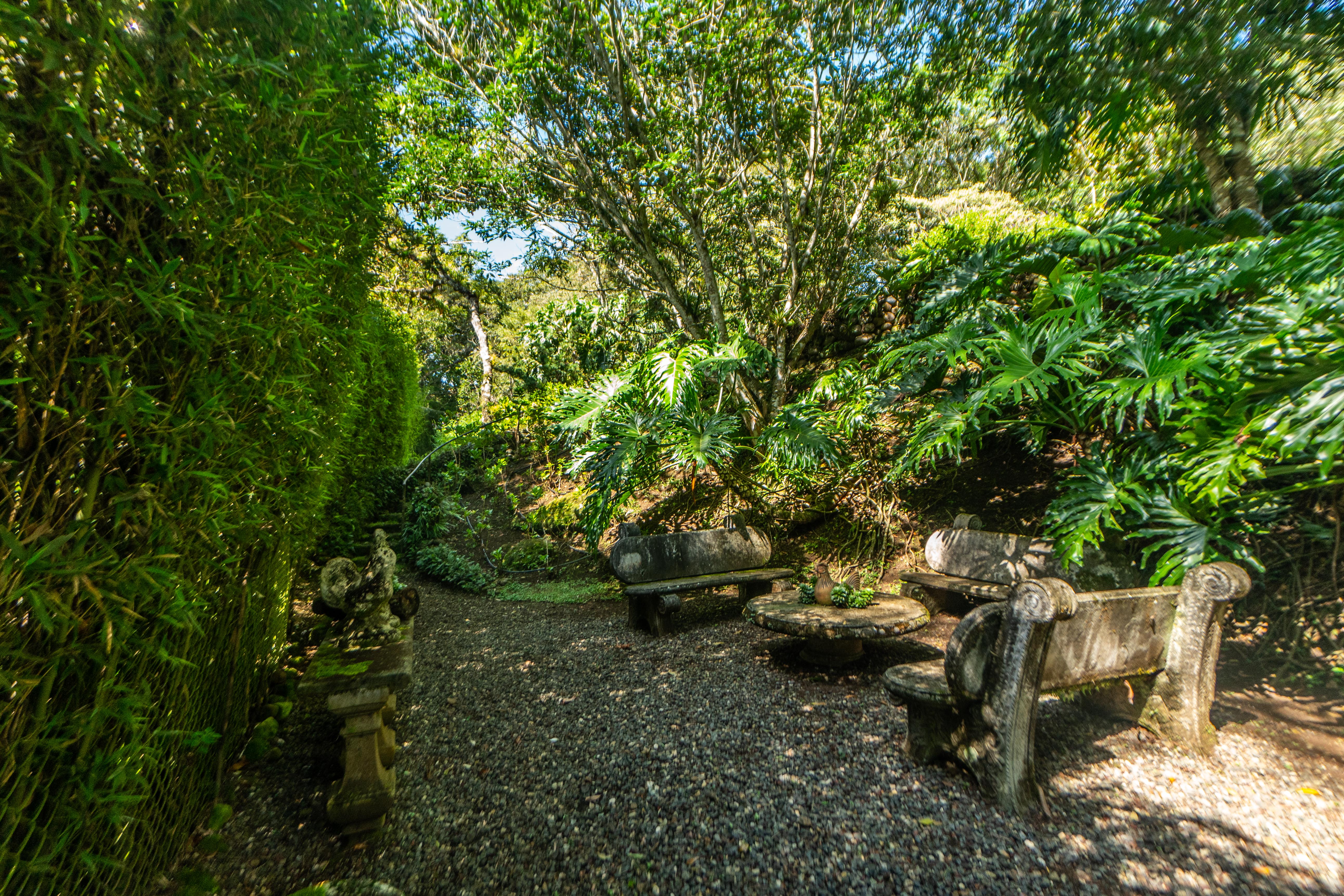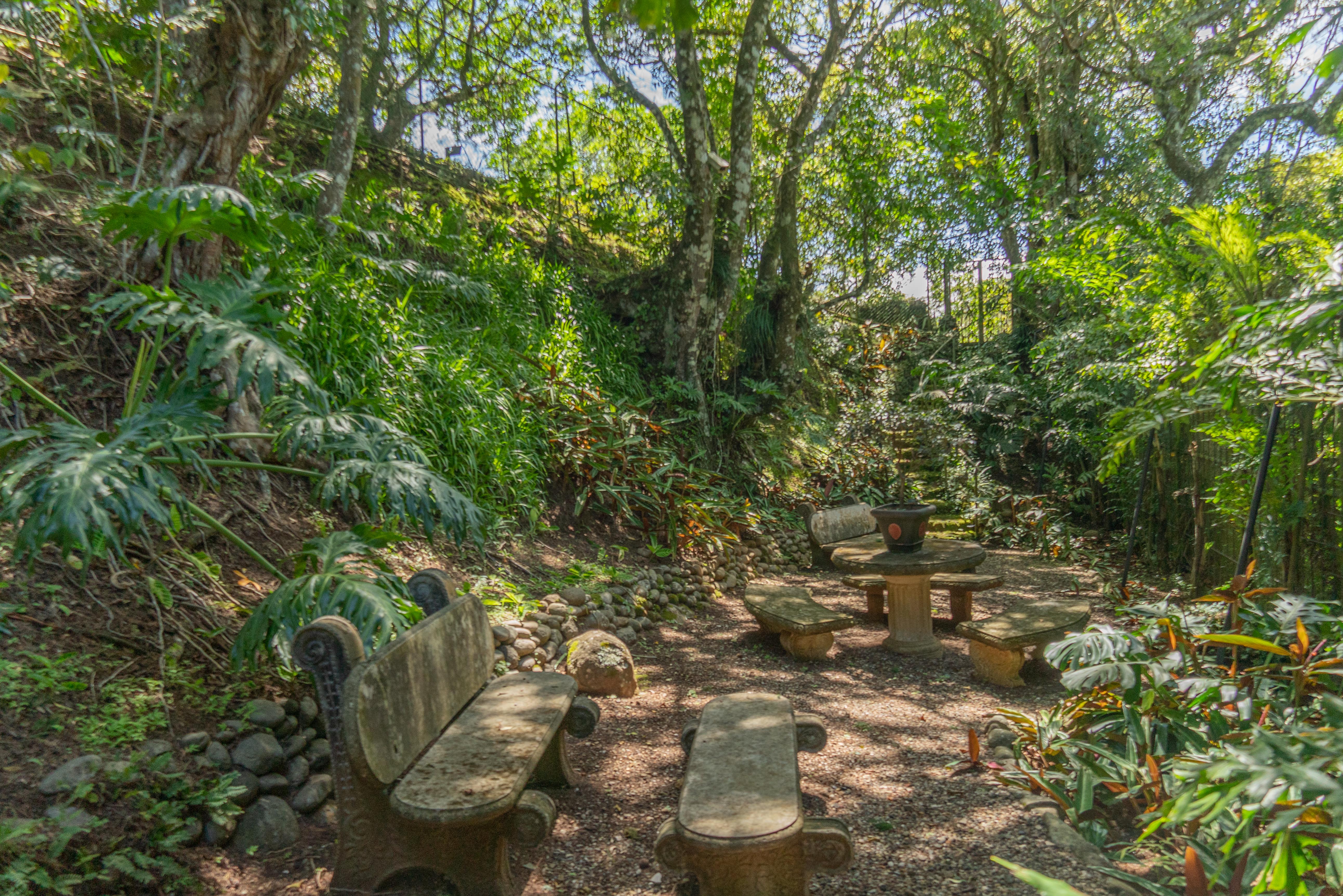 In addition, you will find an iron Gazebo with antique stones on the floor, framing one side of the beautiful architecture of the house. The 7 Corners of meditation around the garden have all been named with affection and love, they have details of volcanic stone, at the edge of the small creek that runs on a side of the property. The corners that were created in the Gardens are all special, wonderful and full of love. Their names are Hope, autumn, Rock, Round Trip, Love, Bridge, and The Bench.