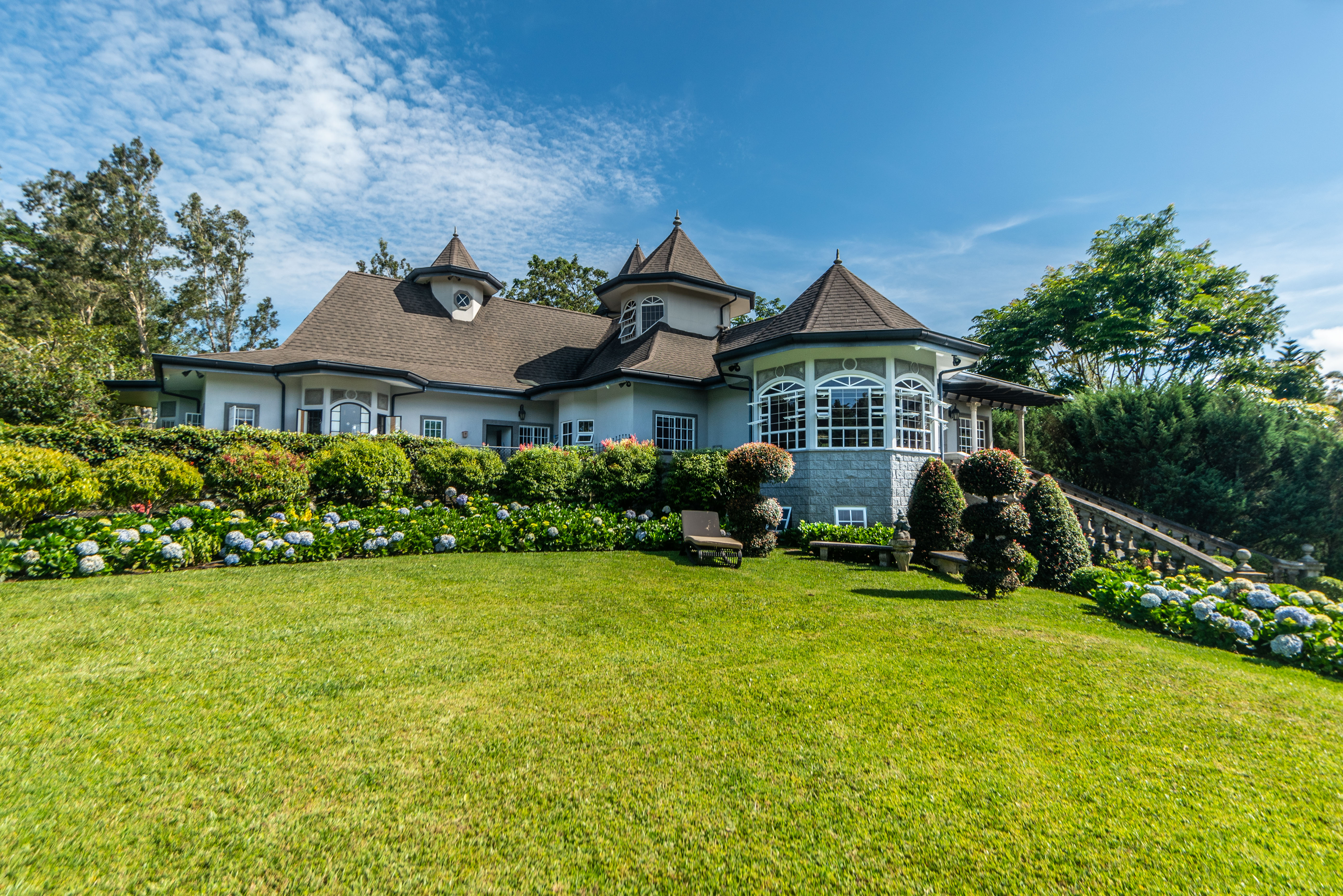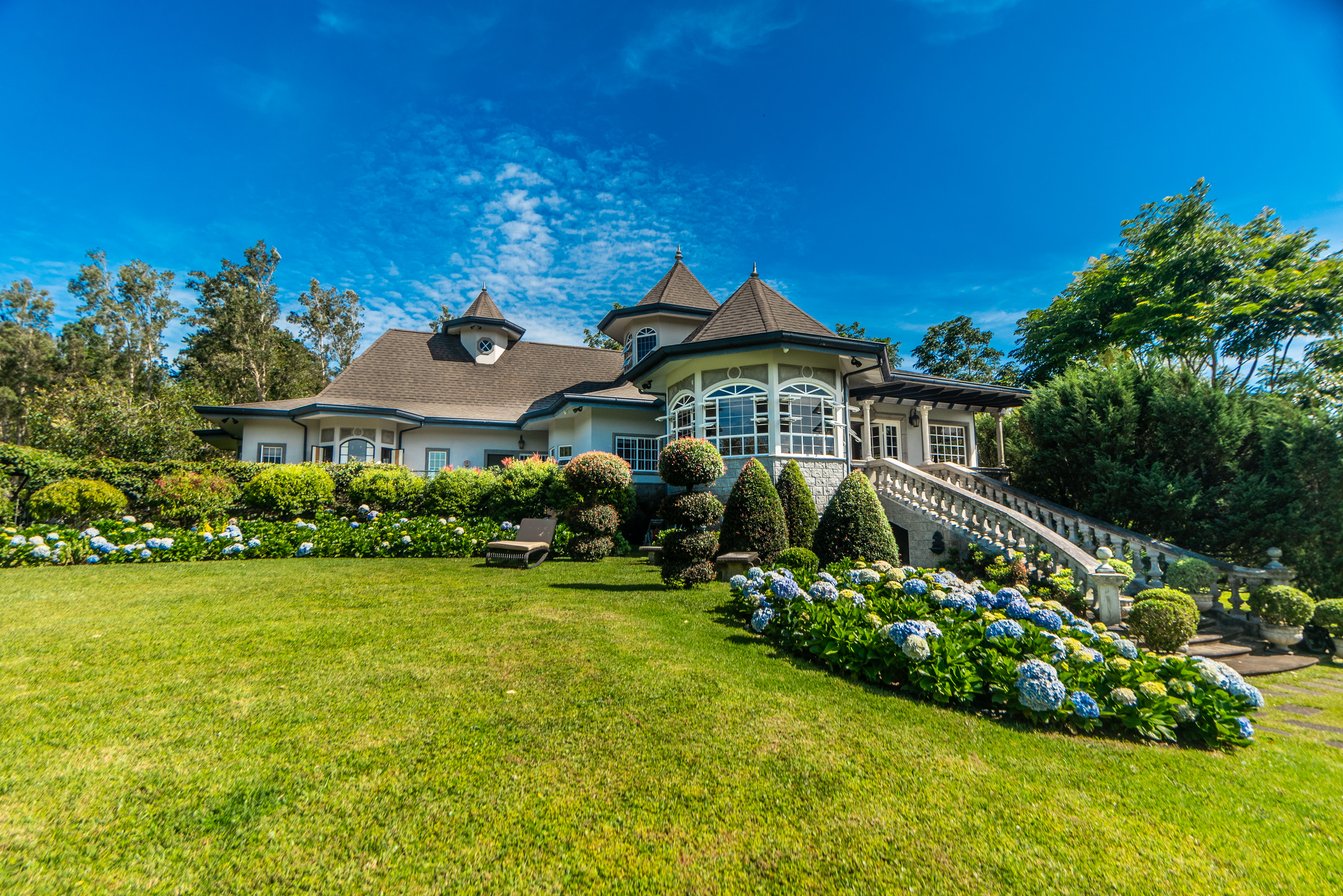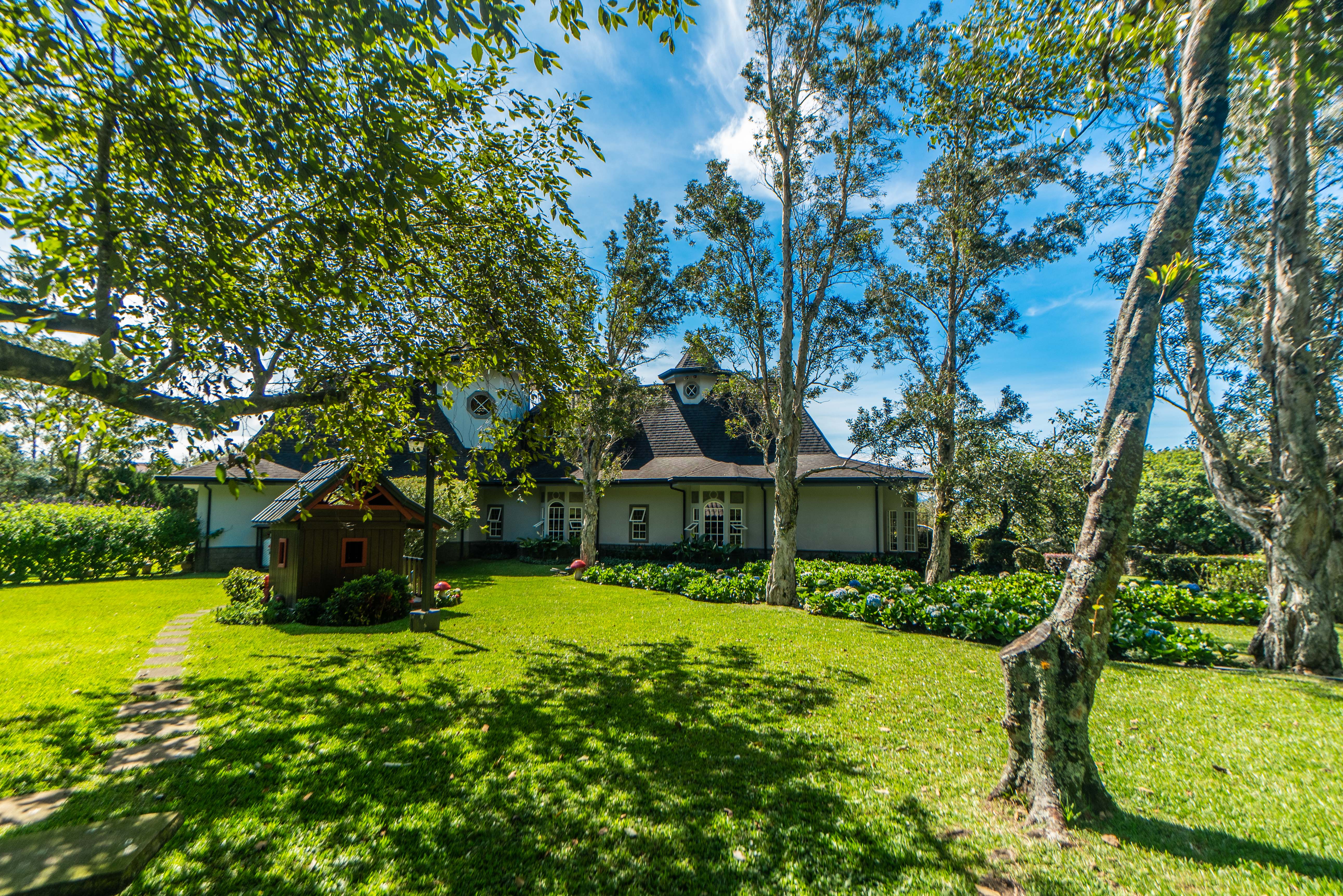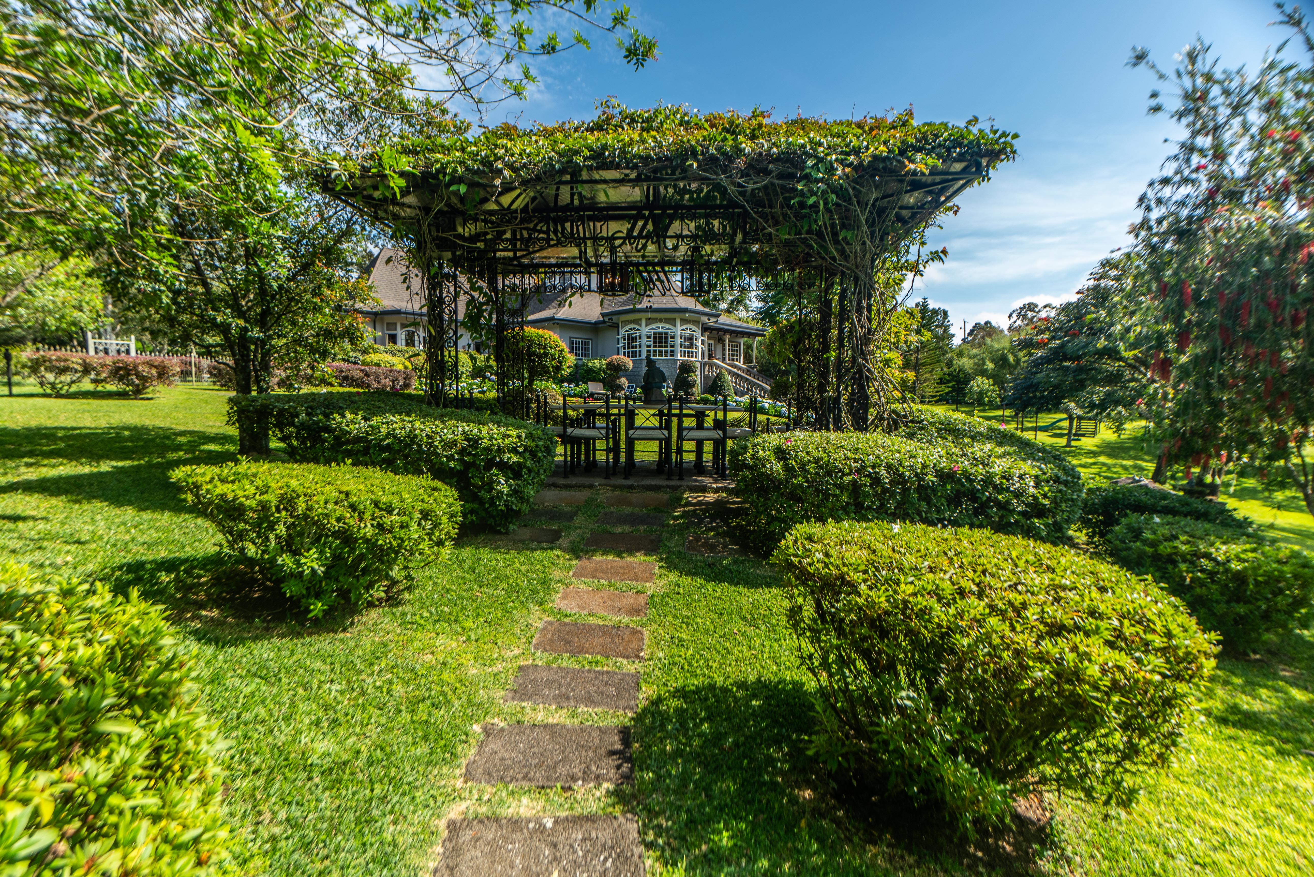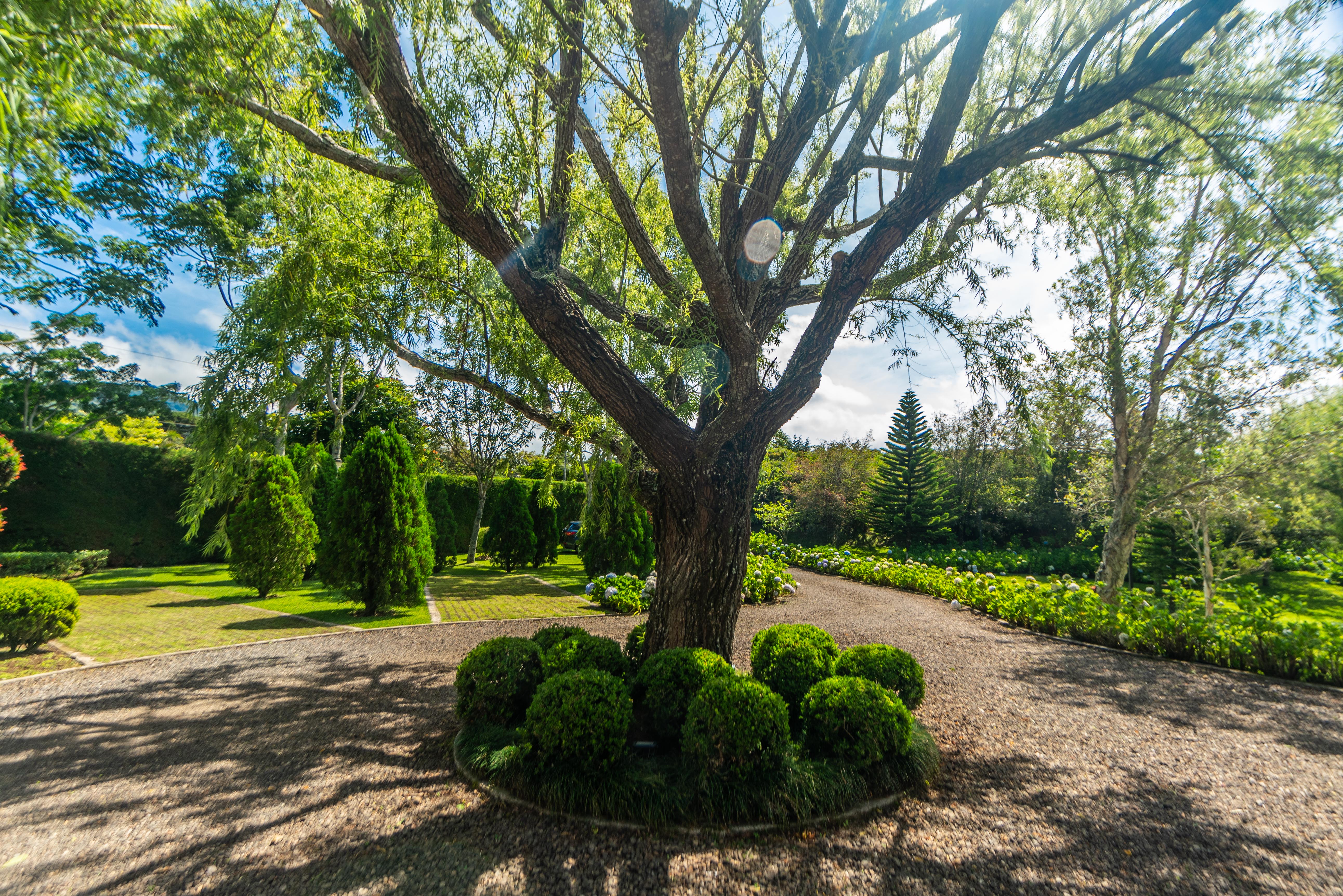 The spectacular gardens include a variety of plants and trees, among which are hydrangeas, orchids, forest flame, variety of pine trees, cypress, golden rain, apple trees, isopo, cork, savanna oak, jaules, wizaro, azaleas, passionflower, lemons, orange, wizaro, corners of stone, blackberries, among others.