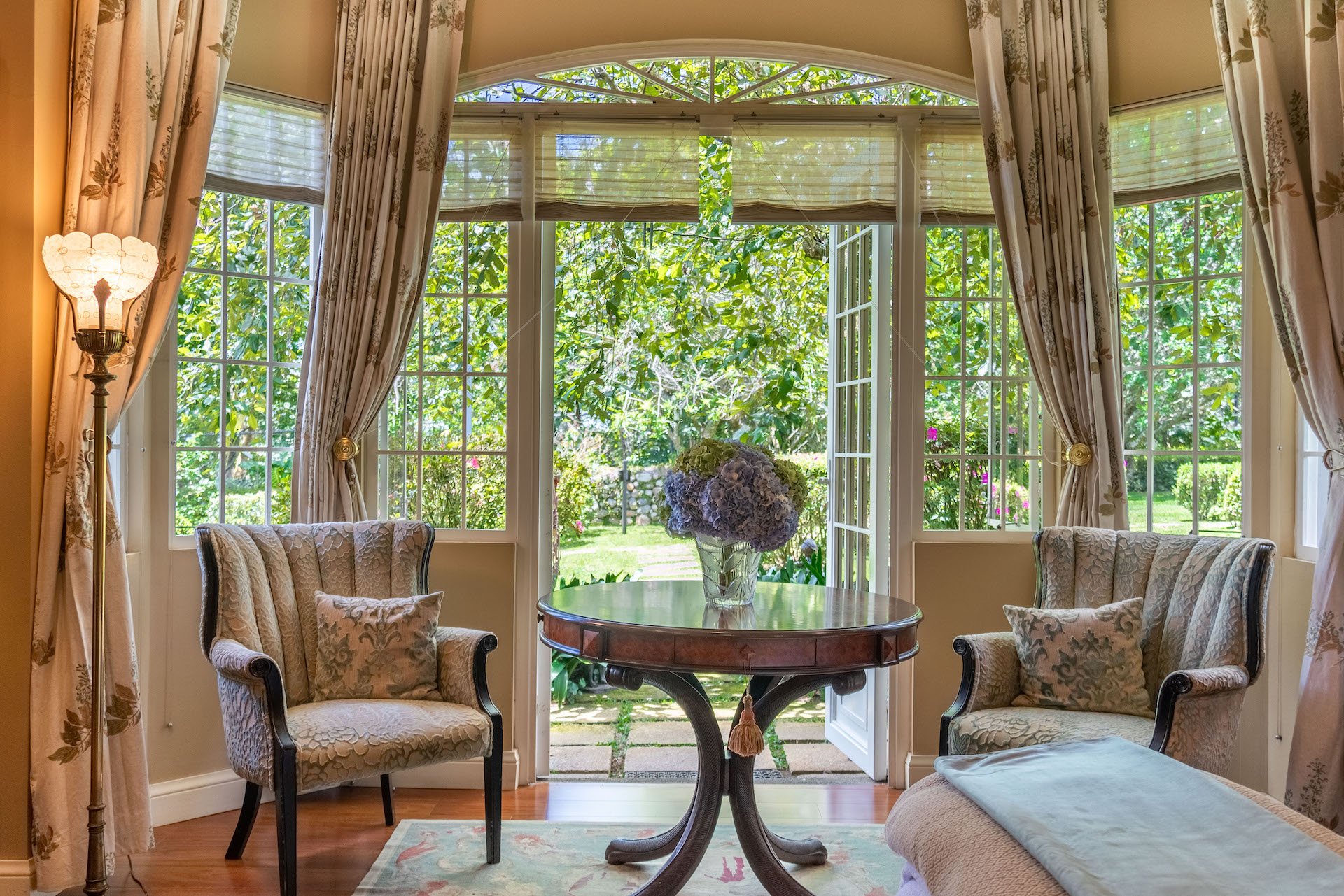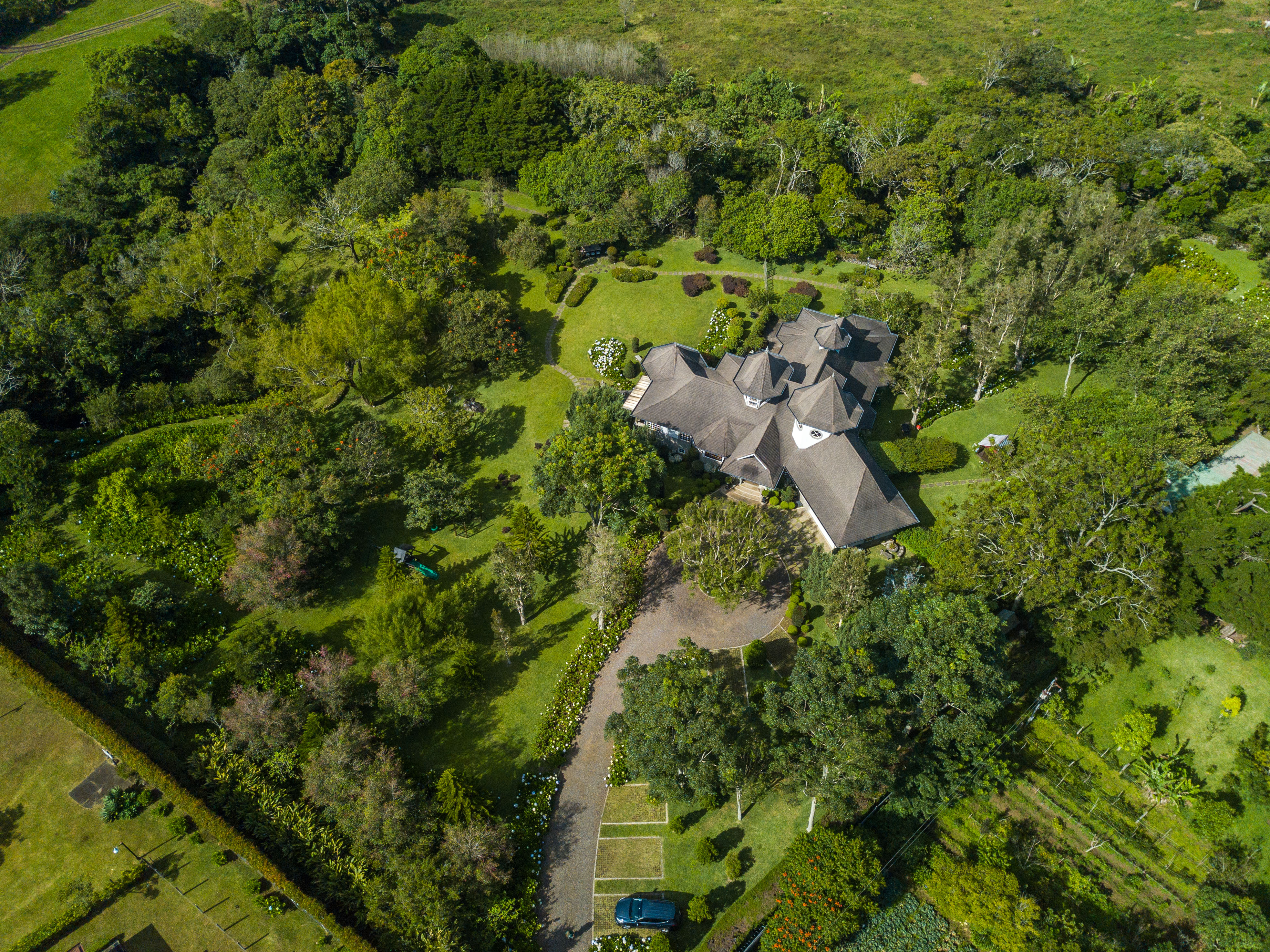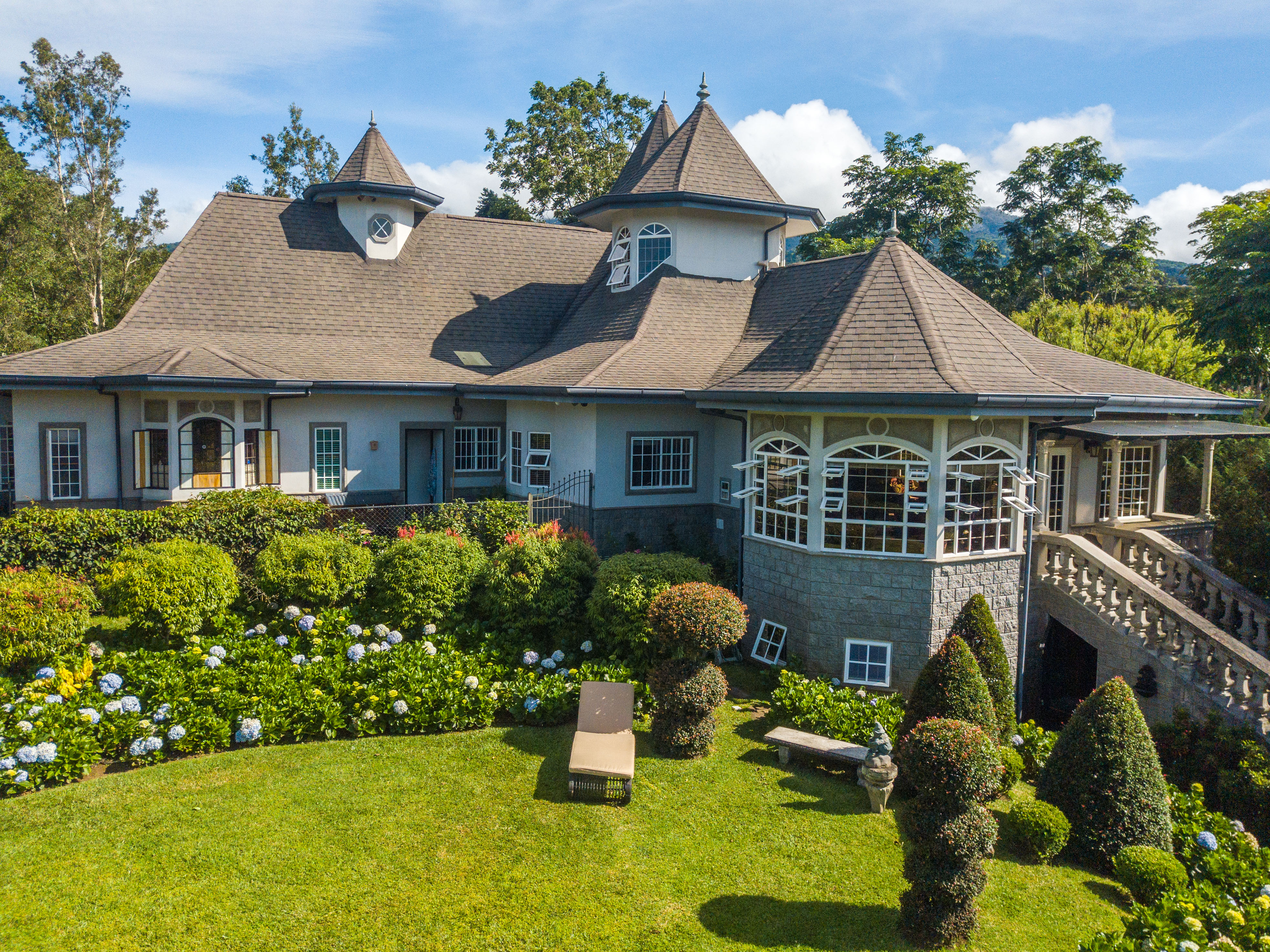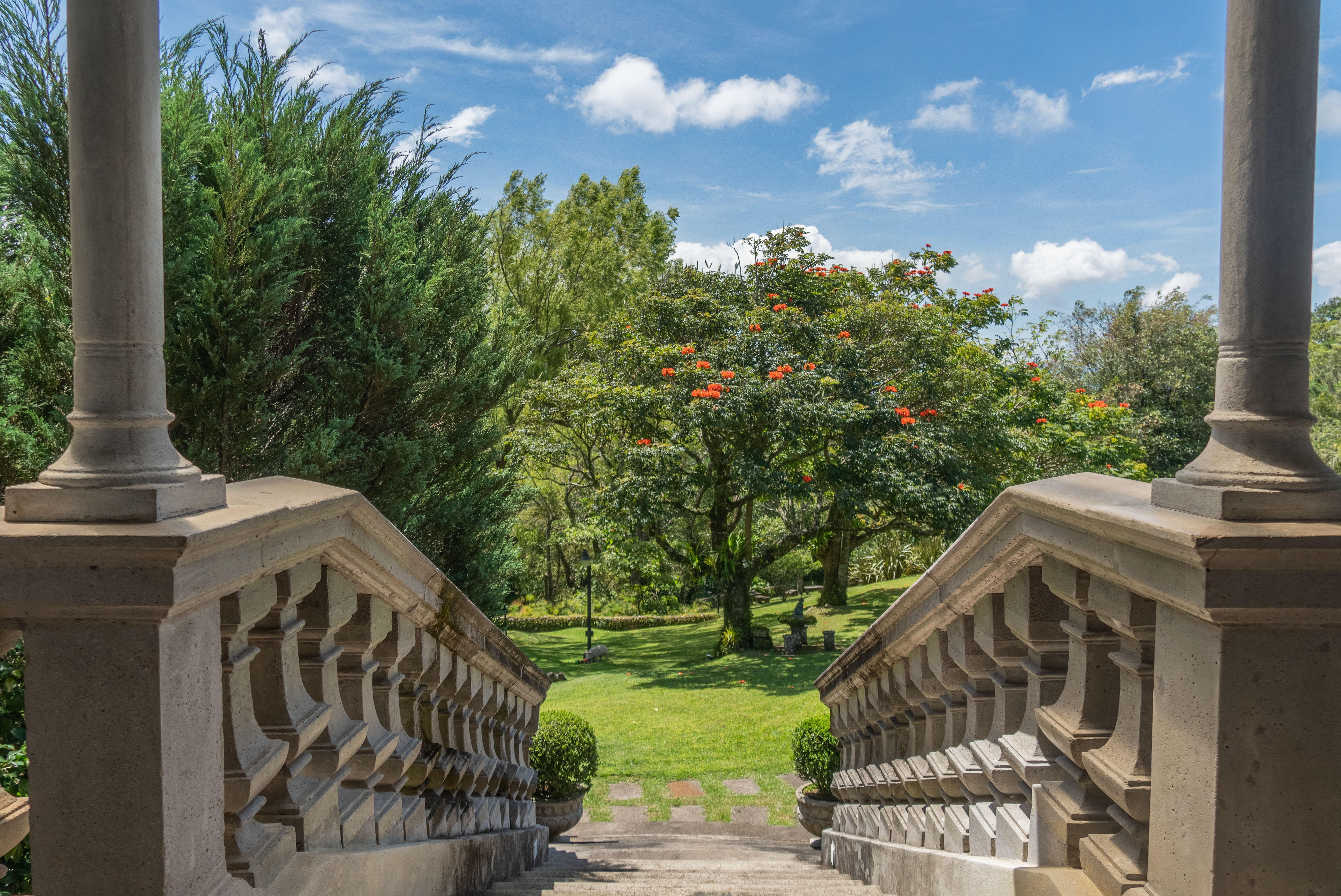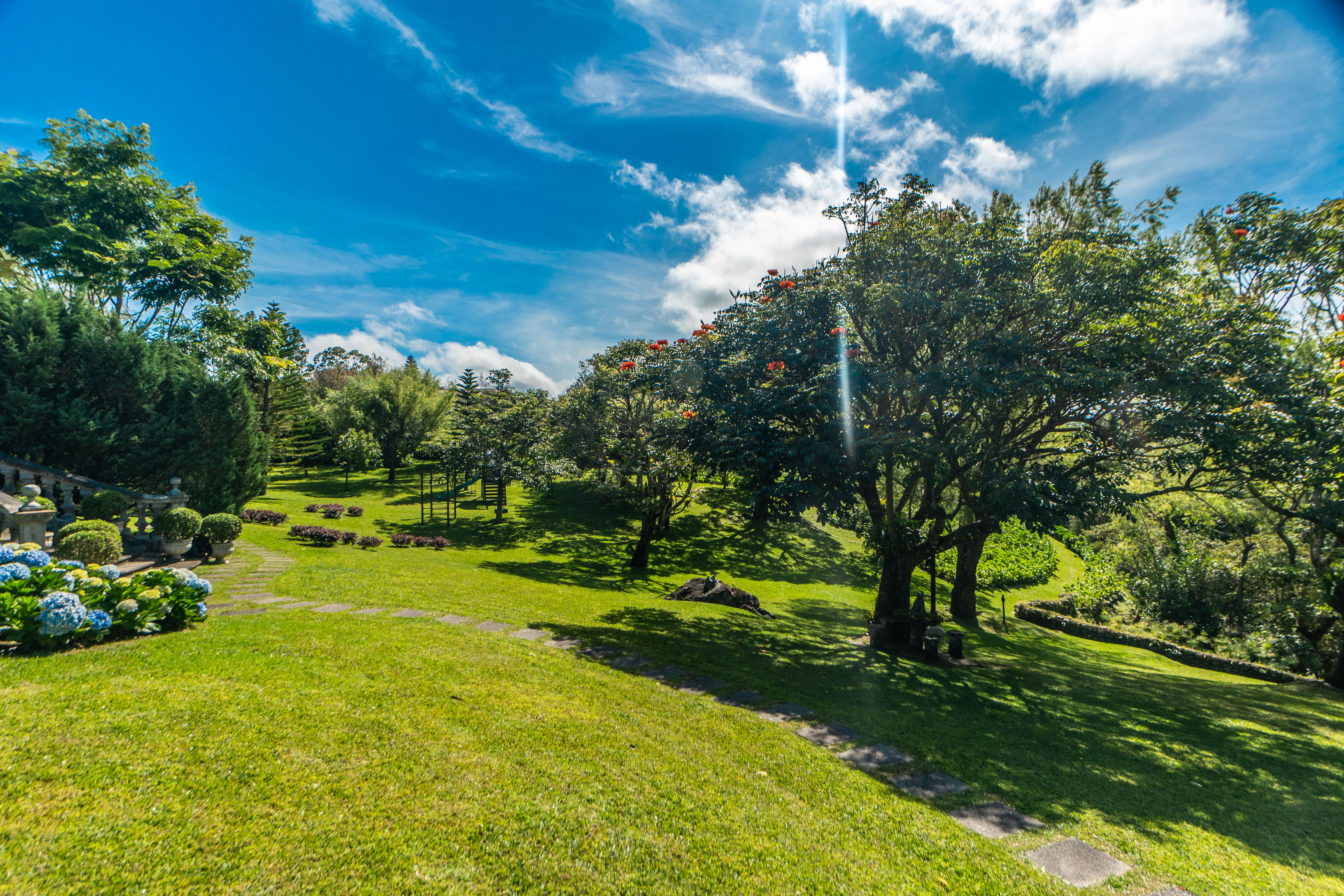 The spectacular gardens include a variety of plants and trees, among which are hydrangeas, orchids, forest flame, variety of pine trees, cypress, golden rain, apple trees, isopo, cork, savanna oak, jaules, wizaro, azaleas, passionflower, lemons, orange, wizaro, corners of stone, blackberries, among others.