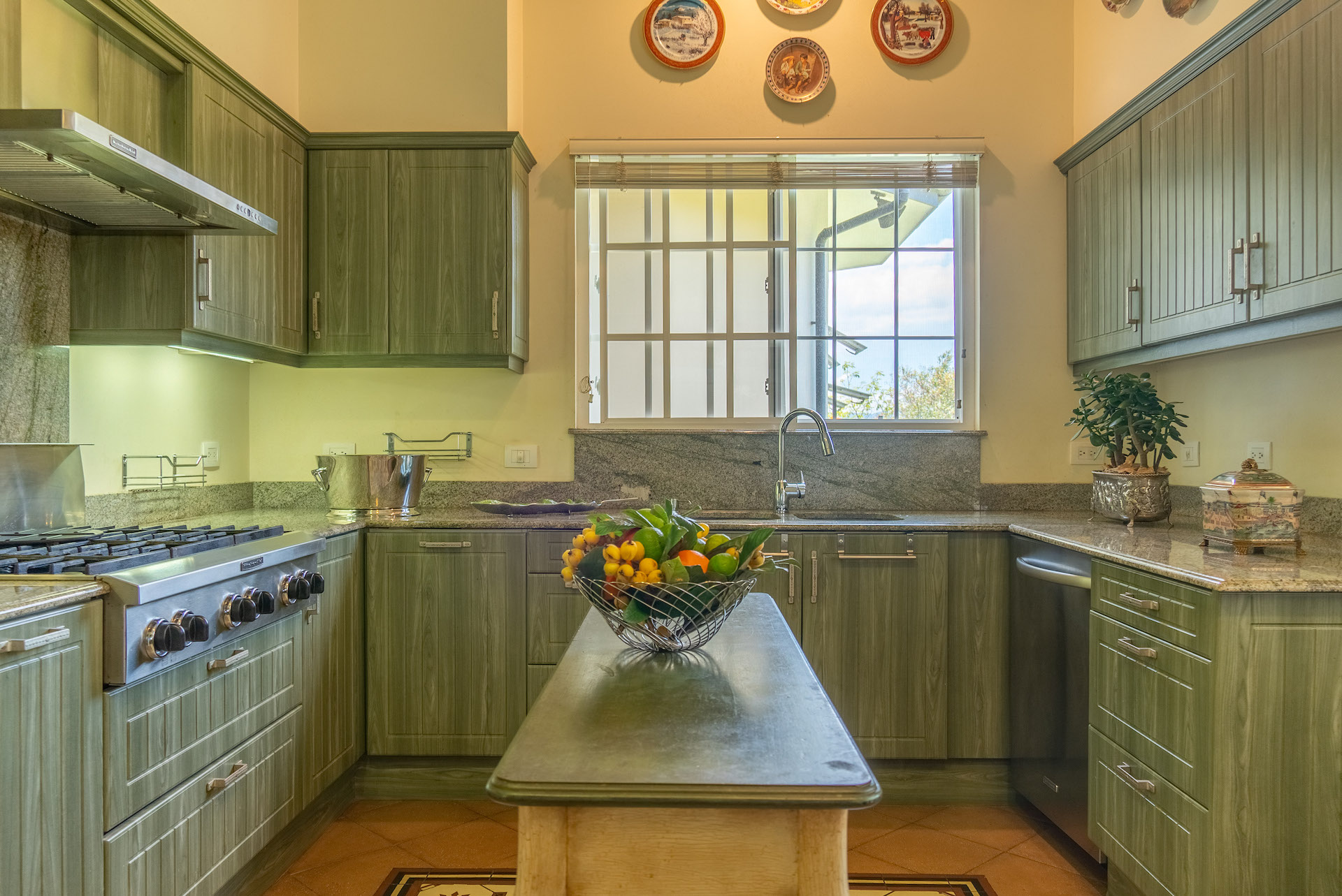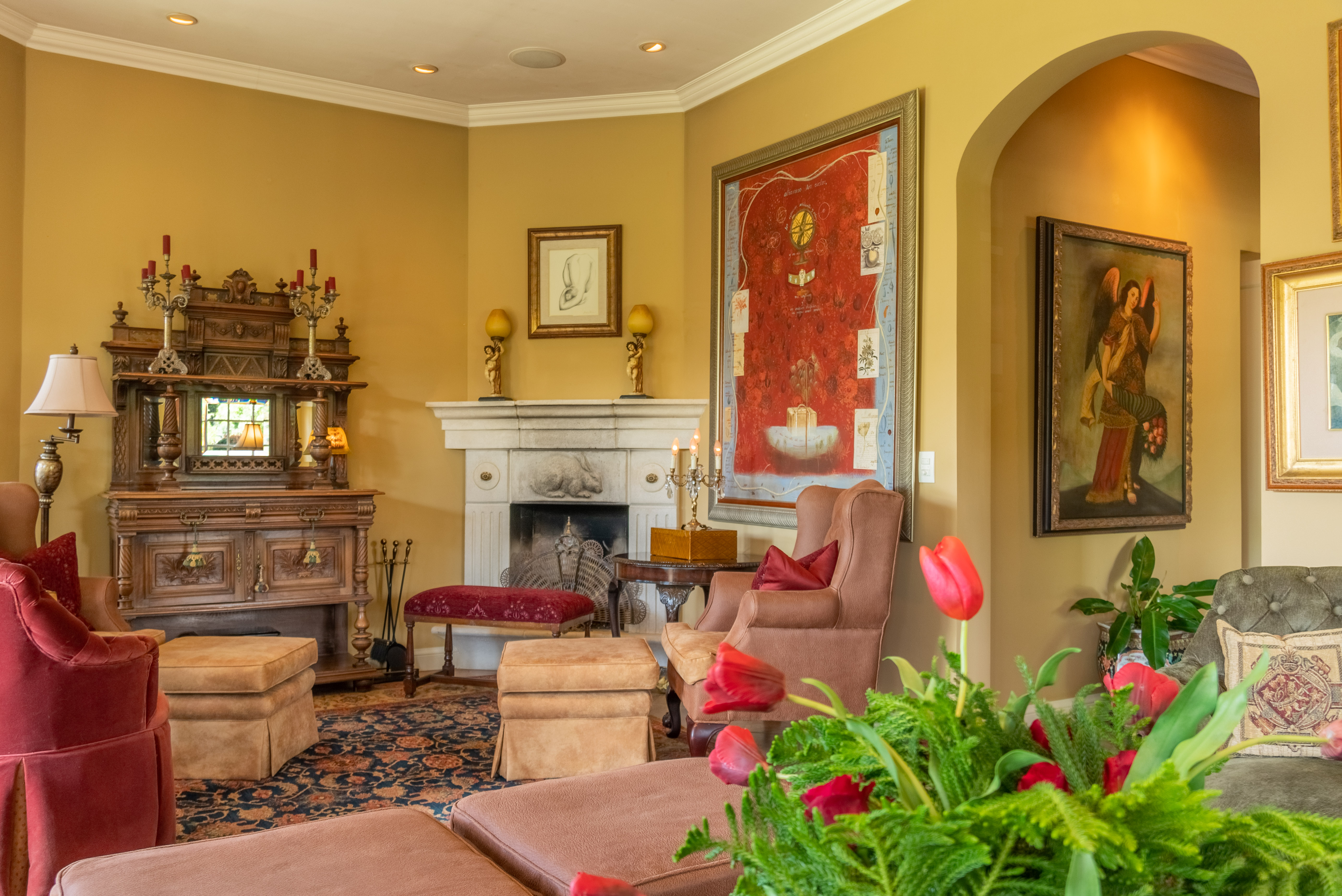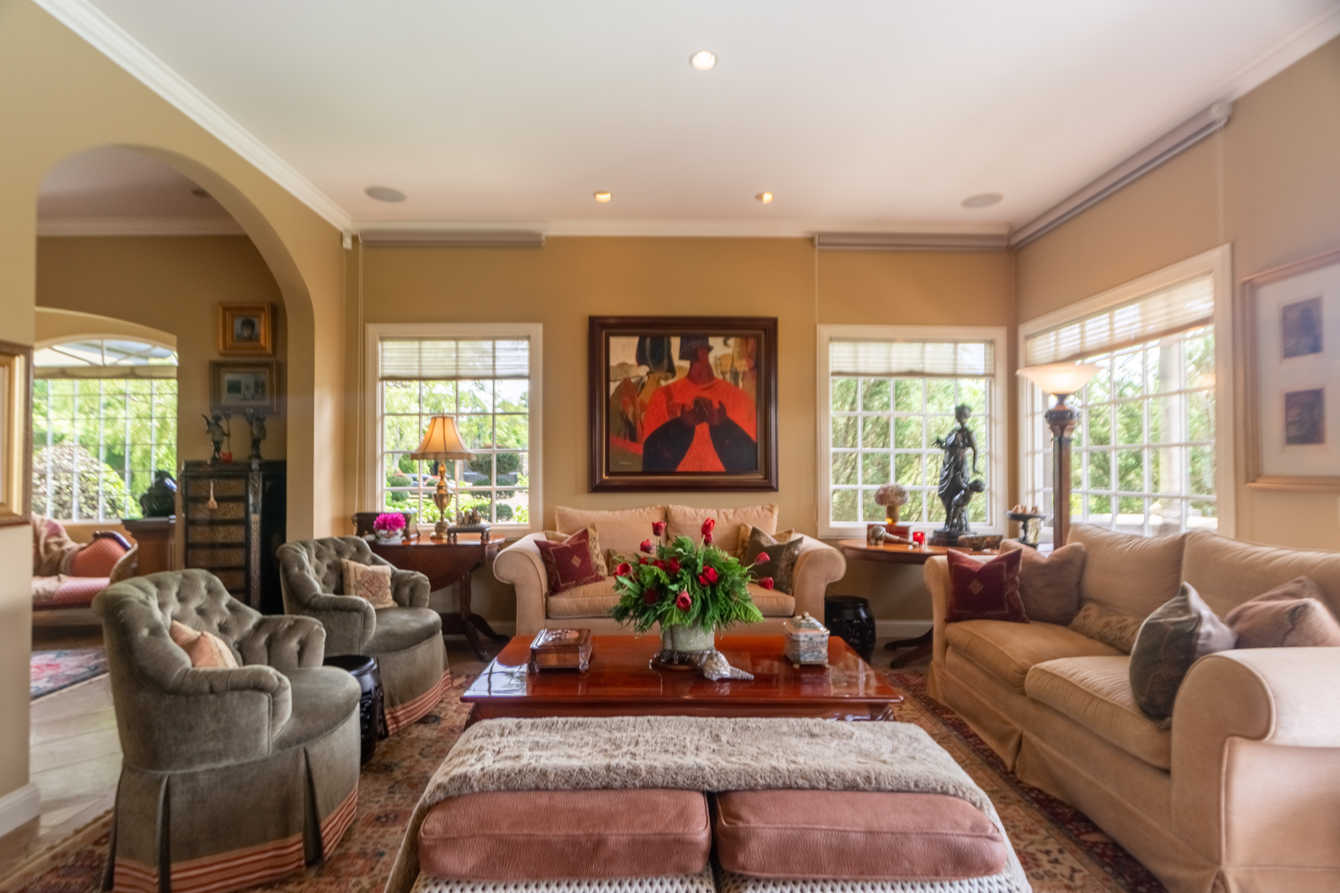 The social area offers several ambiances all overlooking the gardens, the living room has a beautiful gas fireplace. The kitchen offers MOSAIC DONINELLI floors, granite countertops, custom made cabinets and Kitchen Aid appliances.