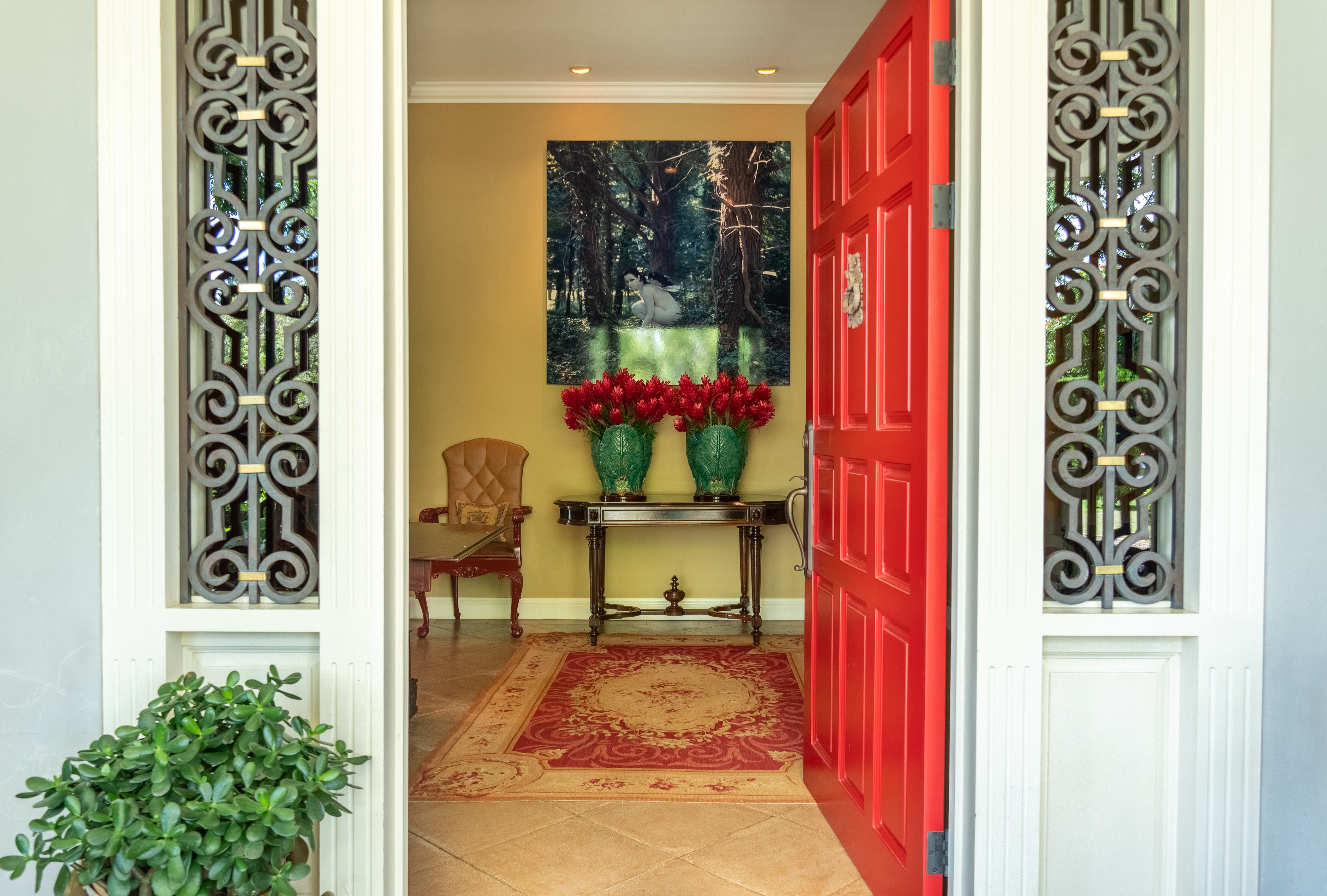 Lobby. Half bathroom for visitors. Garage with huge storage room, closet with all electrical panels, alarm, and cameras. Internal social area with four different ambiances, all with windows that overlook the gardens and fireplace. The kitchen with plenty of storage space. Service area with pantry, whites’ closet, laundry, and half bath for a chauffeur. The bedroom area has two secondary bedrooms with a bathroom and closet each. Master bedroom with access to gardens, office area, bathroom, and walk-in closet.
