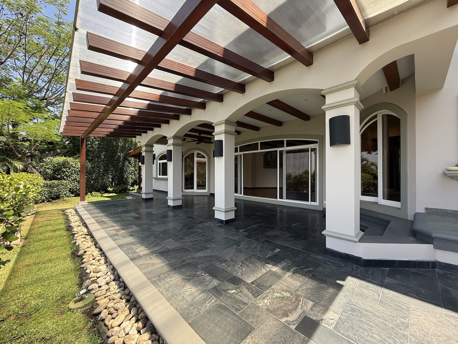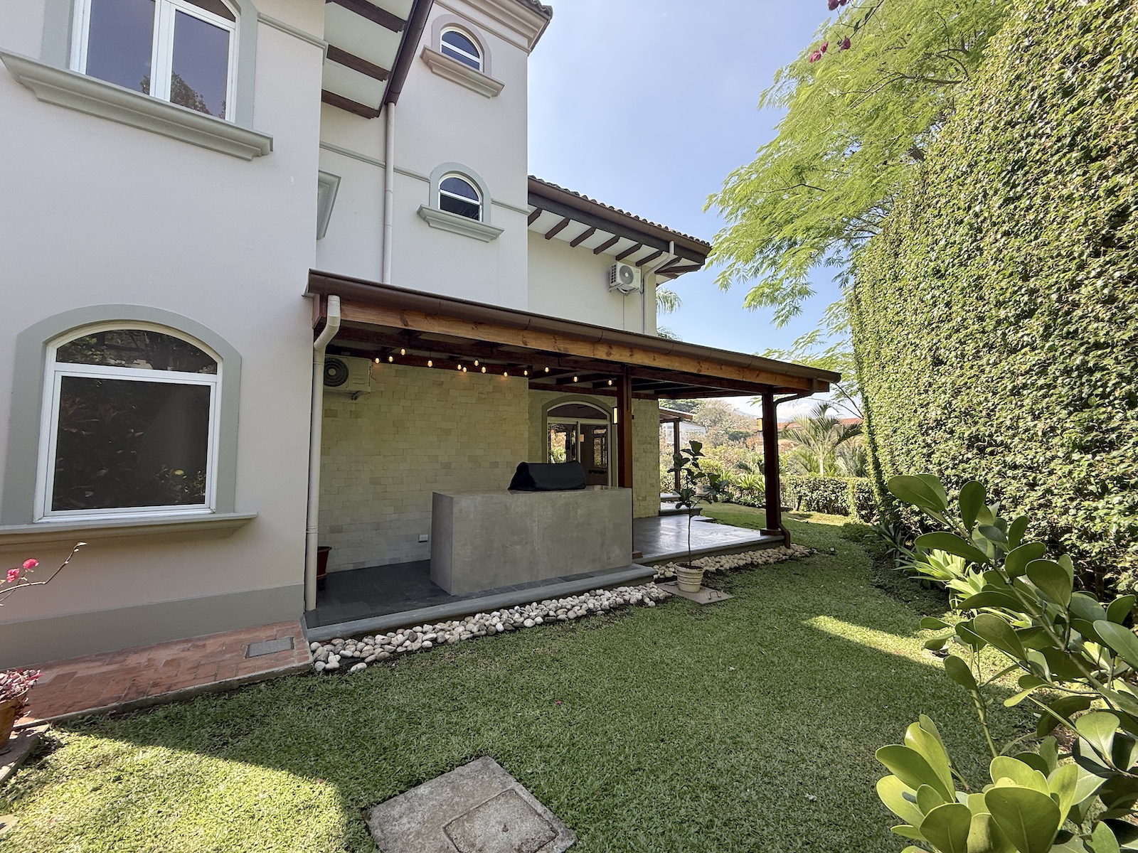 La propiedad incluye amplio parqueo techado, área de pilas con baño completo, varias bodegas espaciosas y aire acondicionado en 4 habitacións.