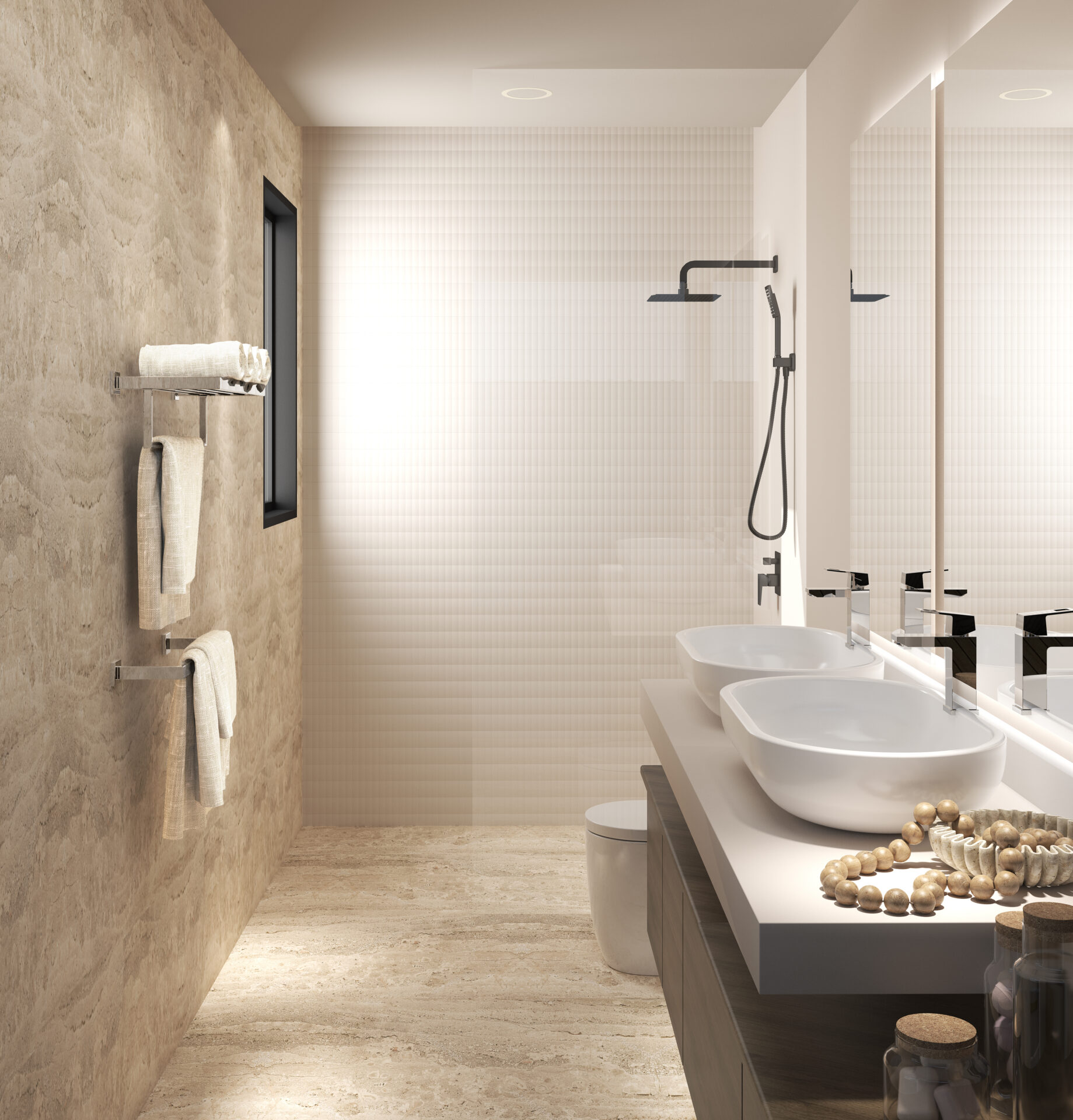 🛏️ Main House – Spacious & Sophisticated ✔️ 4 large bedrooms, each with a private en-suite bathroom ✔️ Double vanities and generous closet space in every room ✔️ Open-concept layout connecting kitchen, dining, and living areas ✔️ Seamless indoor-outdoor flow