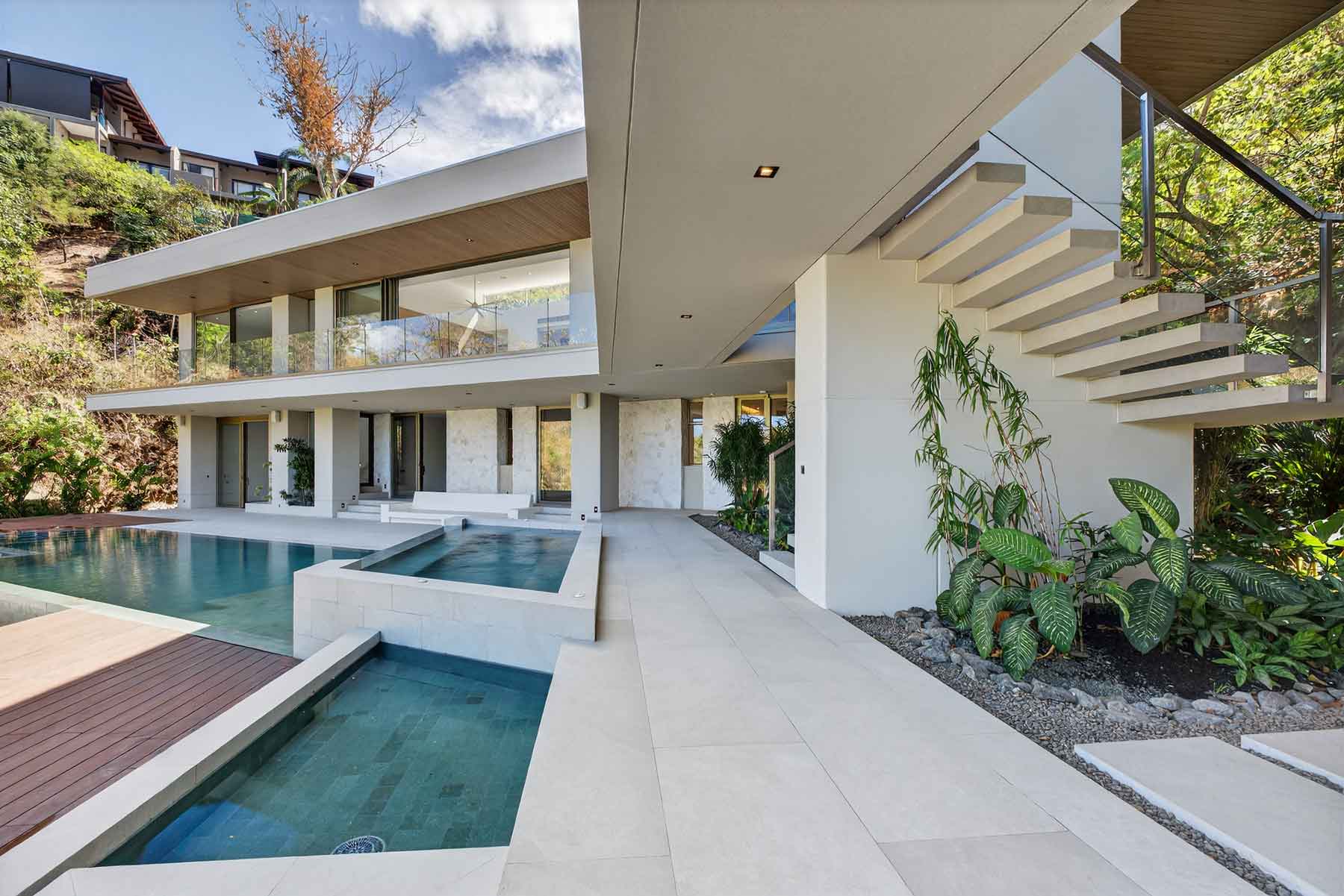 -Five spacious bedrooms, each with private ensuite bathrooms, opening to either lush poolside terraces or secluded balconies