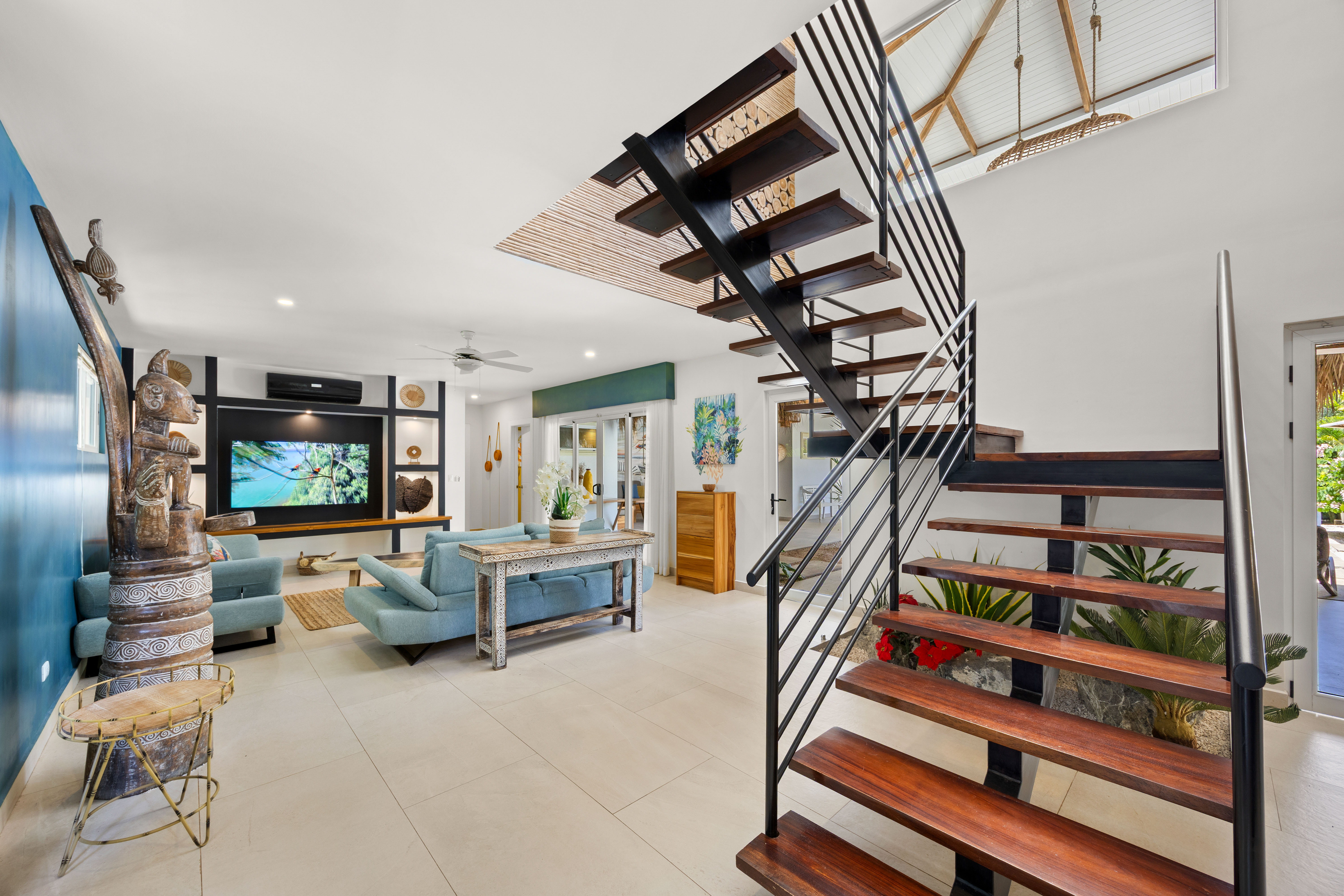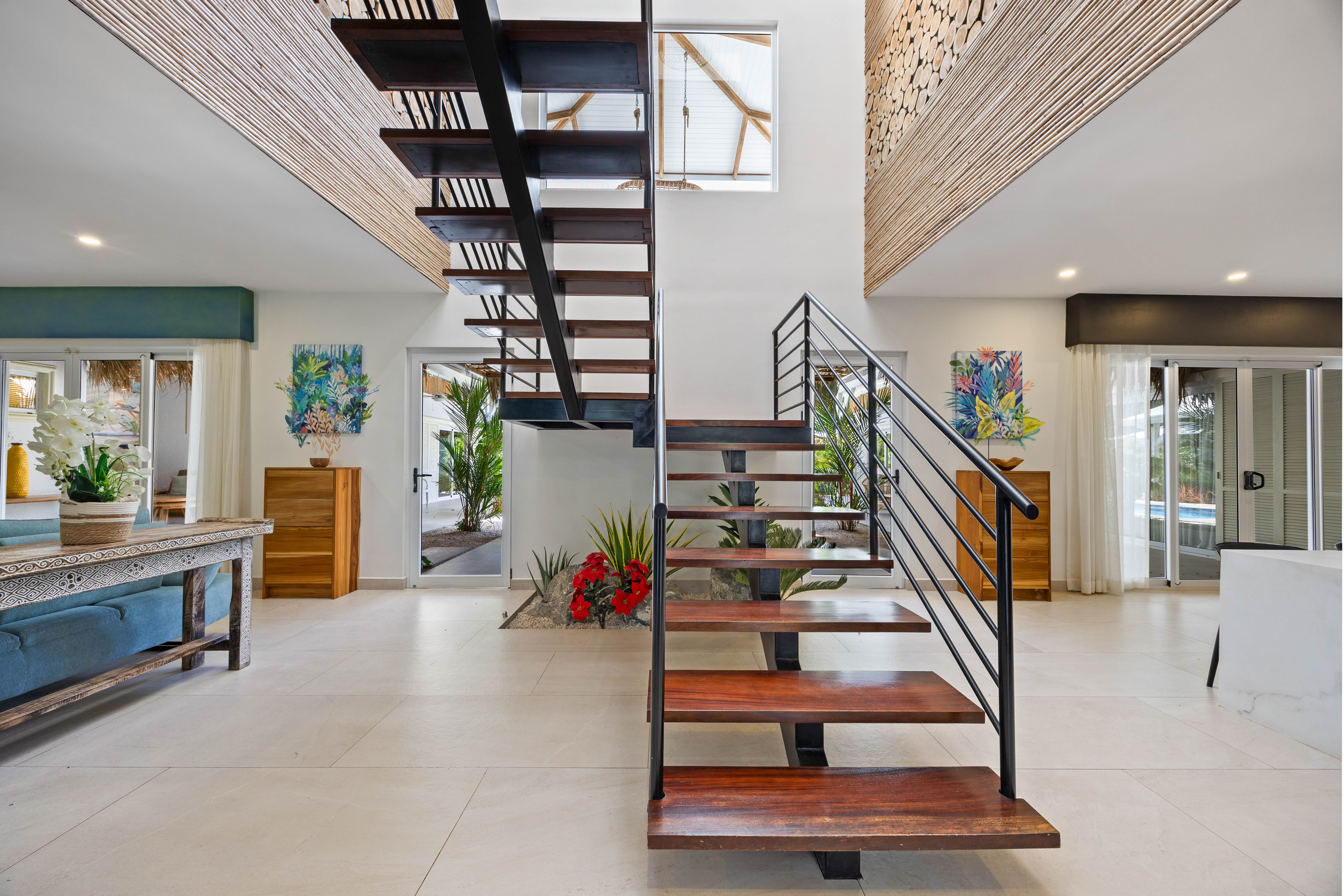 Inside, every detail reflects warmth and character. Designed by a renowned decorator, the interiors feature bold Caribbean tones, curated furnishings, and artisan finishes that create an atmosphere both soulful and sophisticated.