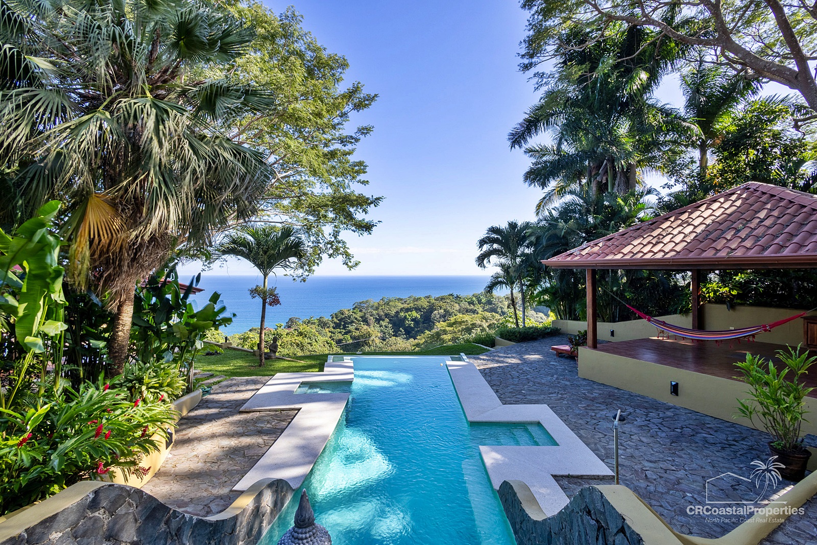 Set on an elevated position above the vibrant coastal town of Montezuma, this remarkable estate enjoys expansive views of the Pacific Ocean framed by lush tropical jungle. Mature gardens surround the property, creating a peaceful and private setting with a strong connection to nature.