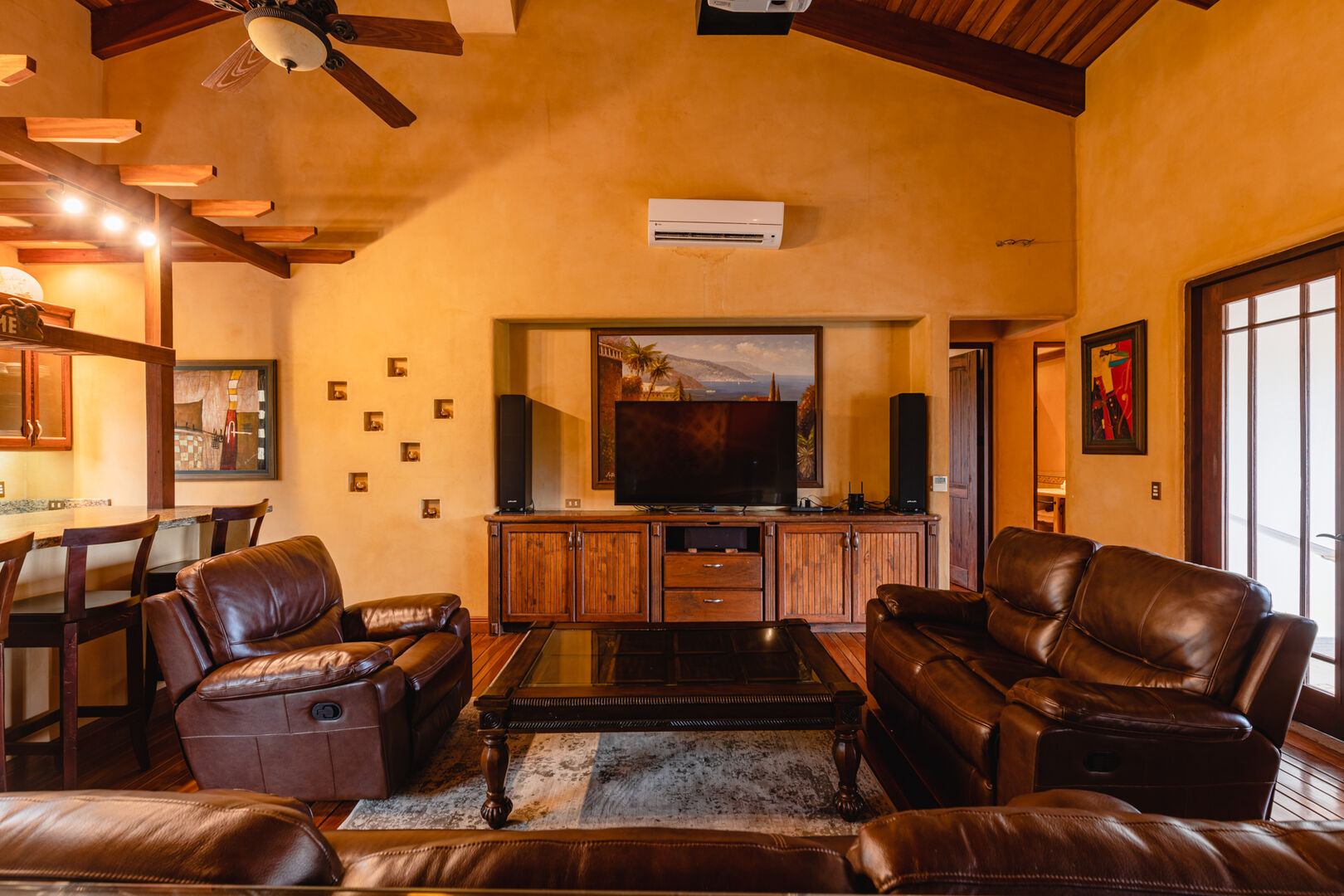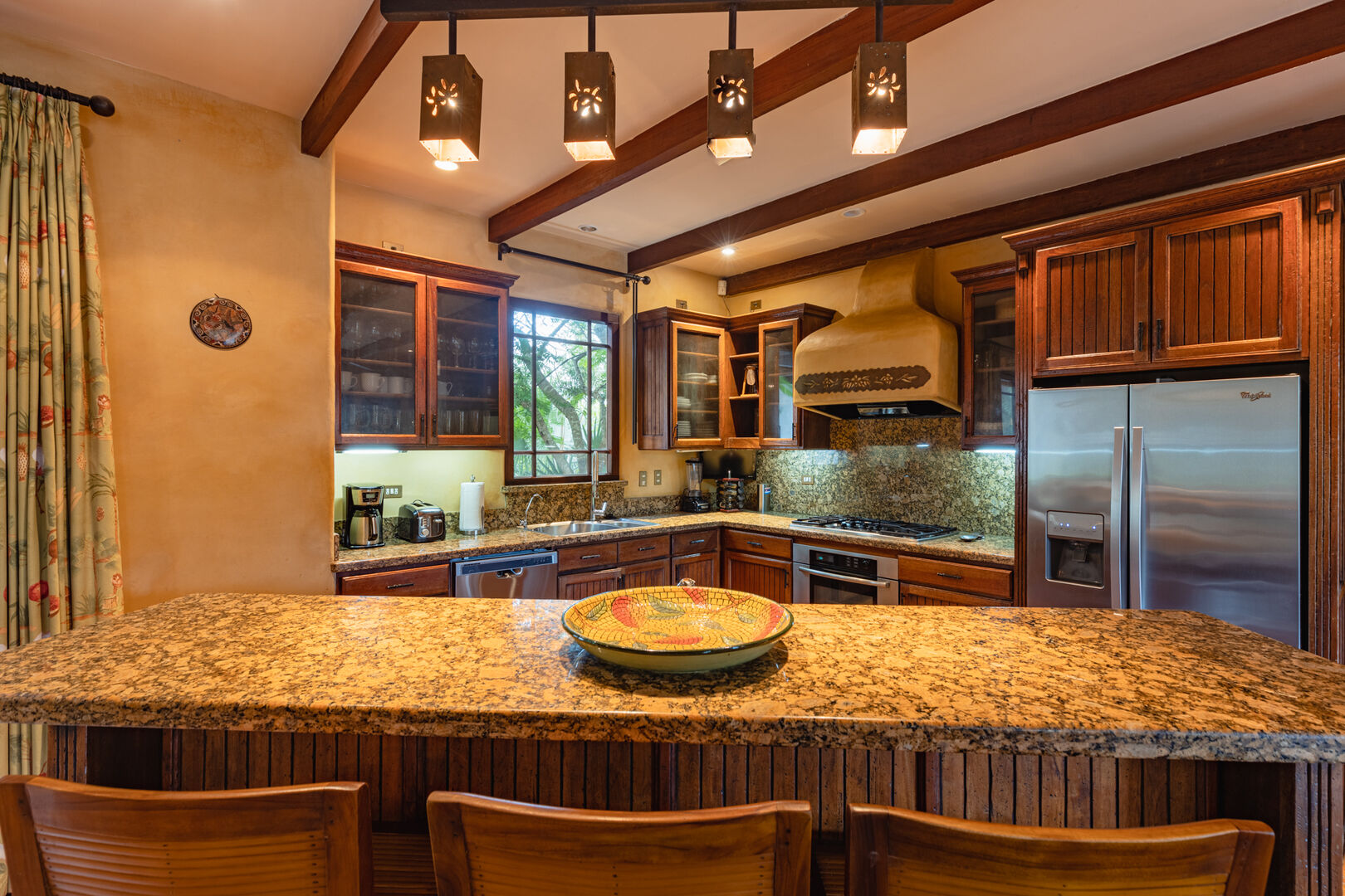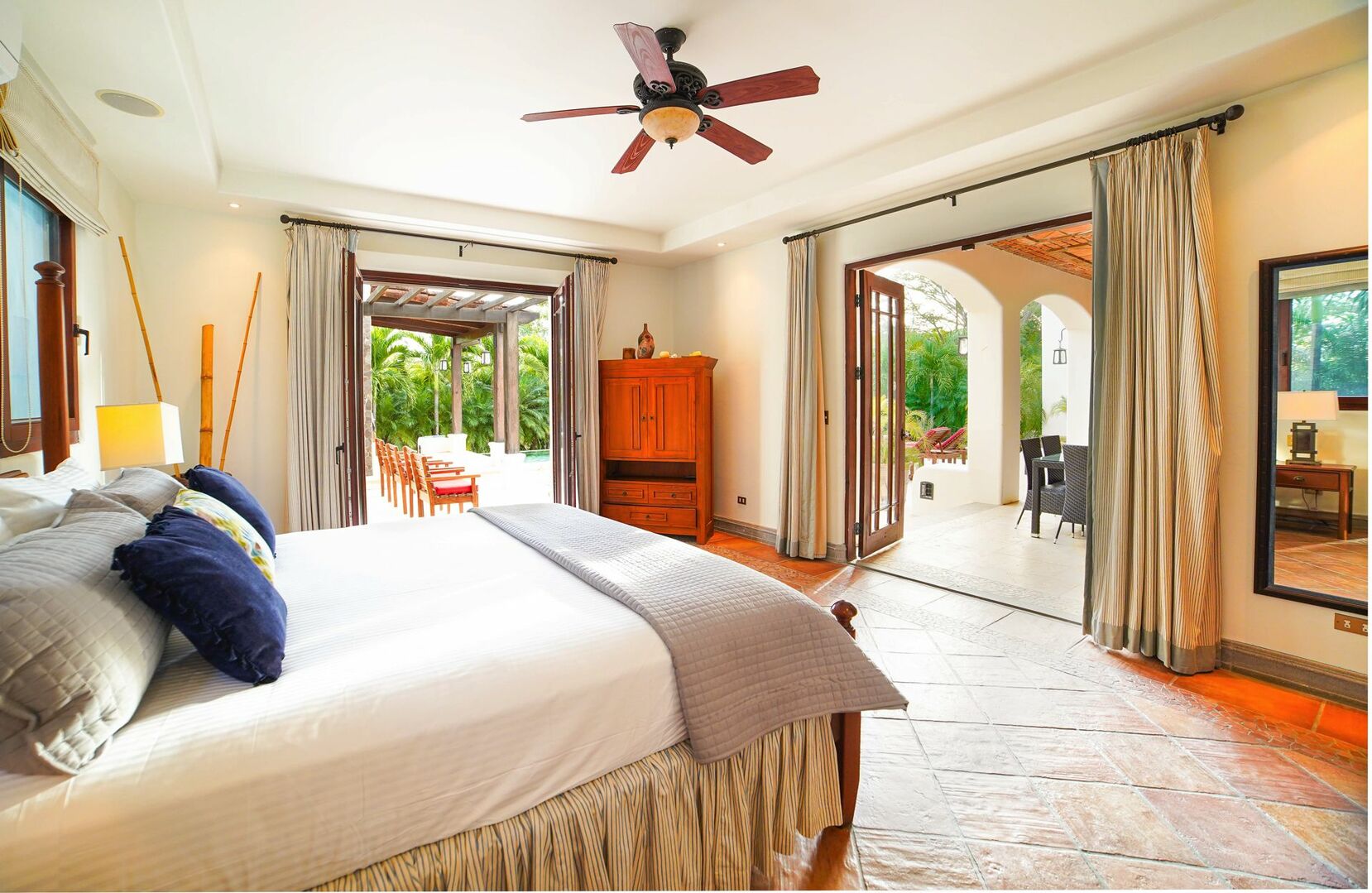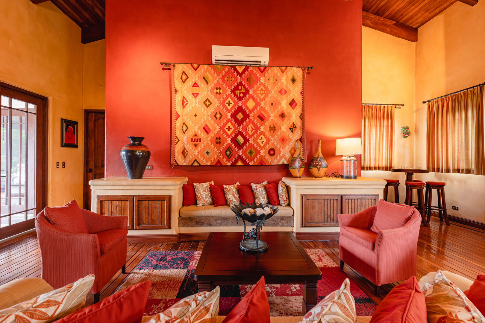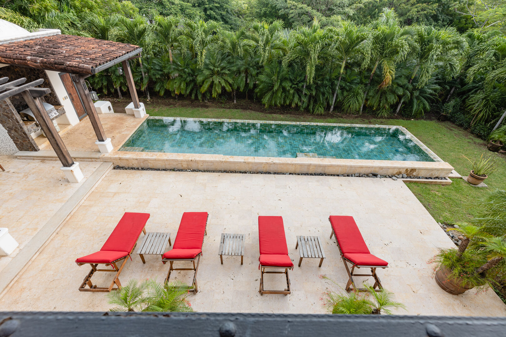 Set on a lushly landscaped 2014m² site, Casa Orquidea features a salt-filtered infinity pool, a covered Pool Pavilion, and extensive outdoor social areas. Designed by architect Miguel Podolsky and custom built by Karl Gronemeyer, this 6-bedroom, 4.5-bath home showcases nearly 6,000 sq. ft. of Spanish Colonial architecture. The open floor plan highlights exquisite finishes, handcrafted details, and an inviting design. A grand Entertainment Room, two Master Suites, solar panels, and modern amenities like a security system and surround sound elevate this elegant yet comfortable residence.