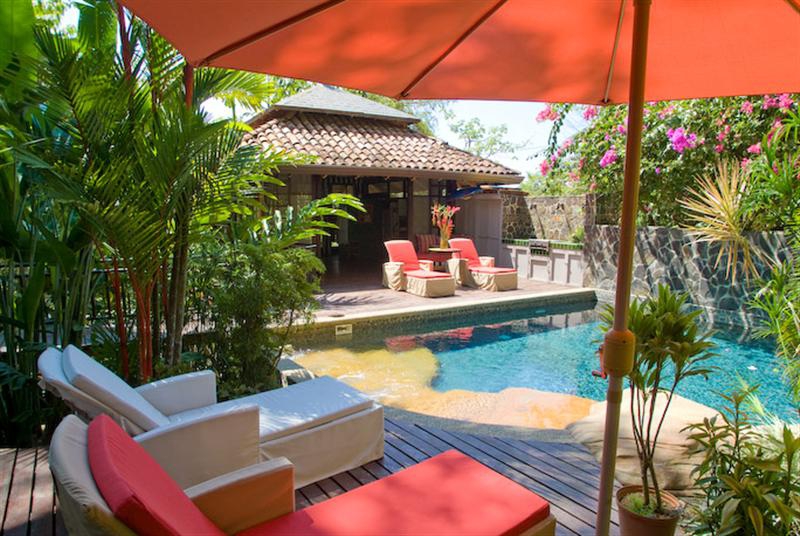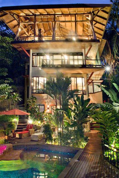 Experience the wonders of the rainforest and the beauty of tropical living in this spectacular treetop luxury villa. This villa is built on 5 stories with 6 bedrooms and 7 bathrooms and the ability to accommodate 16 guests. There is also an elevator for easy access to each floor. Entrance is on the top floor where you will find a gorgeous open air living room which boasts incredible views of the Pacific Ocean, the Manuel Antonio National Park, and the amazing wildlife that inhabits the rainforest. Also, on this level is one bathroom, a dining area, and a gourmet kitchen equipped with every necessity known to chef. The next level down features the master suite which has access to a large wraparound terrace, sofa seating and a king size bed that looks towards the Pacific Ocean and the National Park. The master suite bathroom comes with a double head shower and jacuzzi built with a stone bath. Take the stairs or the elevator down one floor and you will find 2 additional bedrooms: one with a King size bed and another with a Queen, both with pool and jungle views as well as a private bath. There is also another bedroom with a king size bed on the pool level which looks upon the tropical gardens and the 15 meter lap swimming pool and waterfall. These features define the tropical luxury of this exquisite villa. With a natural jungle oasis complete with a 20 foot waterfall, this pool is perfect for both exercise and recreation. Surrounded by trees in the back and adjacent to the pool, is the pool house which features 3 convertible sofas. The pool house opens up to the outdoors and enjoys refreshing ocean breezes. There is no reason to leave the pool as there is a kitchenette, sink, large refrigerator and BBQ grill! Below the pool house are two additional bedrooms with a private bath and open air shower. This luxury villa is special because of the effort made to minimize the environmental impact. The home rises up from a small area and widens at the top to 1,200 square feet. The home's design is reflective of a Japanese Zen garden, and the decor is complete with treasures from around the world. This home currently enjoys a very lucrative vacation rental program. Owner financing available.