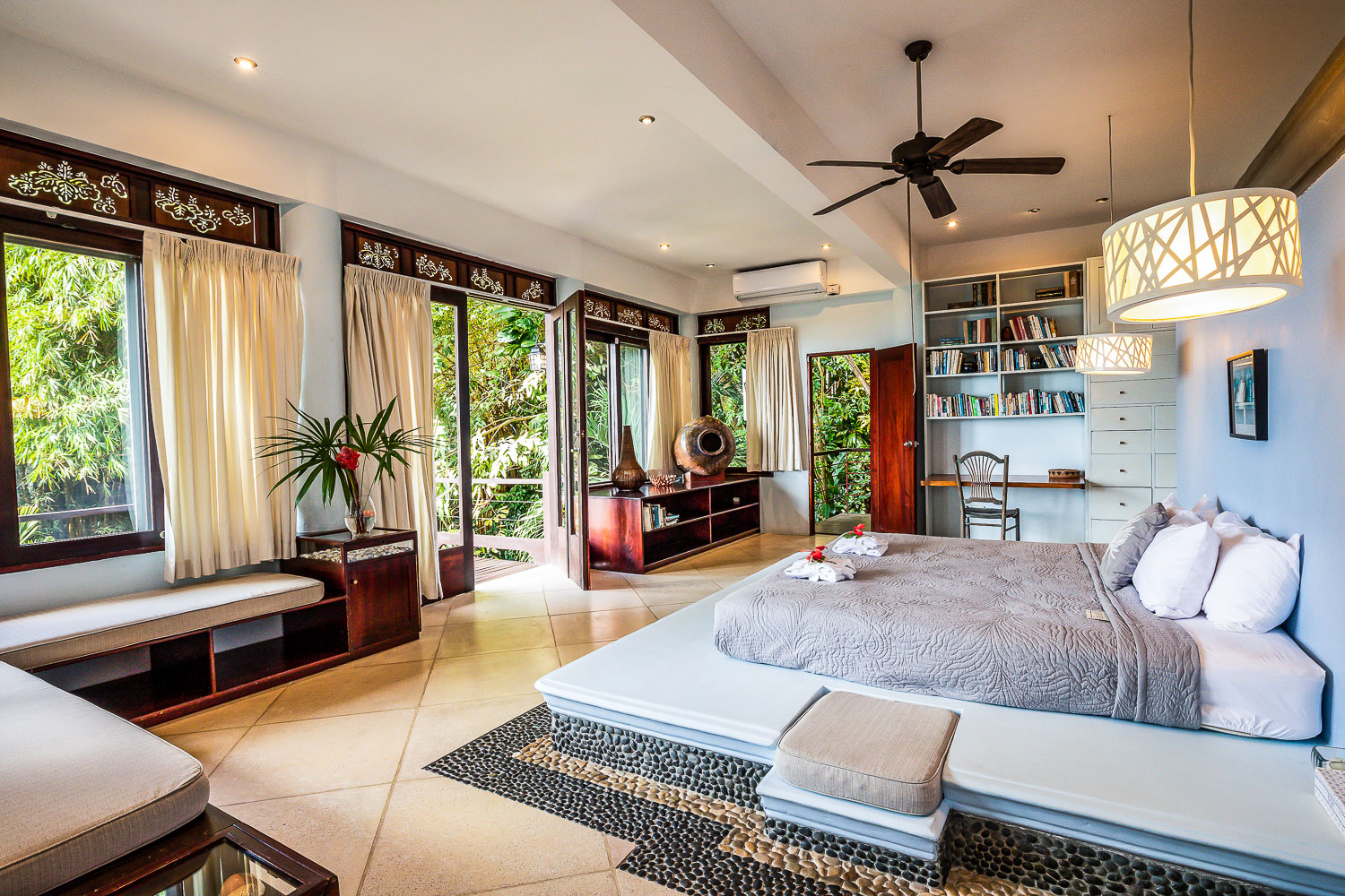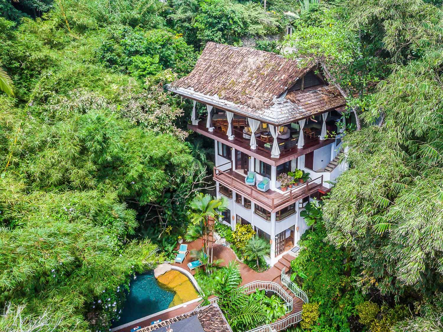 There are a total of 6 bedrooms in the house, highlighted by the master suite which is on the level just below the kitchen and common areas. this master is ENORMOUS and offers its own private balcony, breathtaking views, and a Balinese-inspired bathroom complete with a private tub and shower. The remaining bedrooms and bathrooms are spread throughout two buildings that encompass the tropical pool deck. While there are not ocean views from the pool, you feel truly immersed in the rainforest and an incredibly private setting from which you can marvel at all the wildlife which visit the property daily. There is a spacious bonus room by the pool, perfect for an afternoon bbq, yoga, or even special events. An amazing property, an amazing income property, and a location that is impossible to beat.