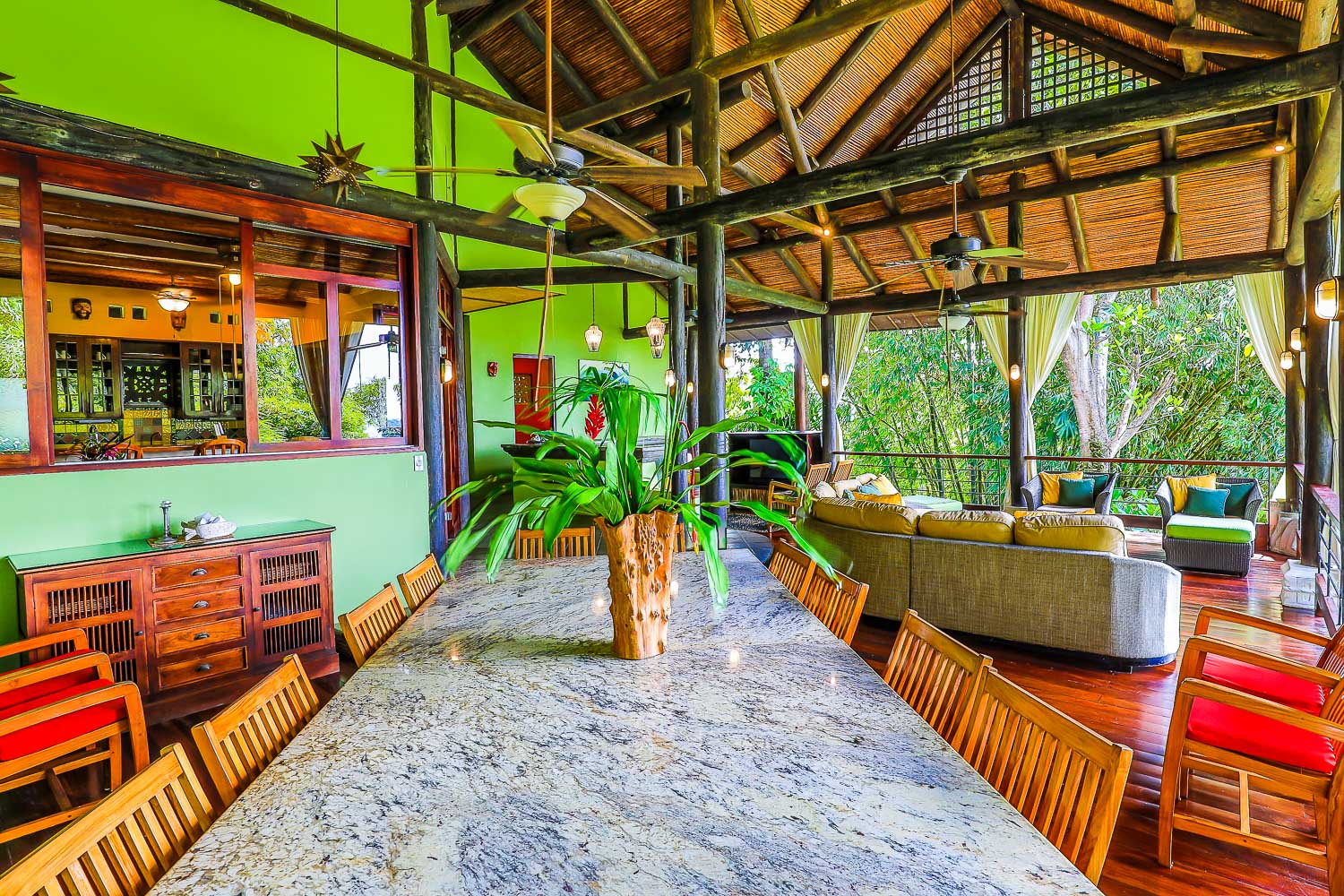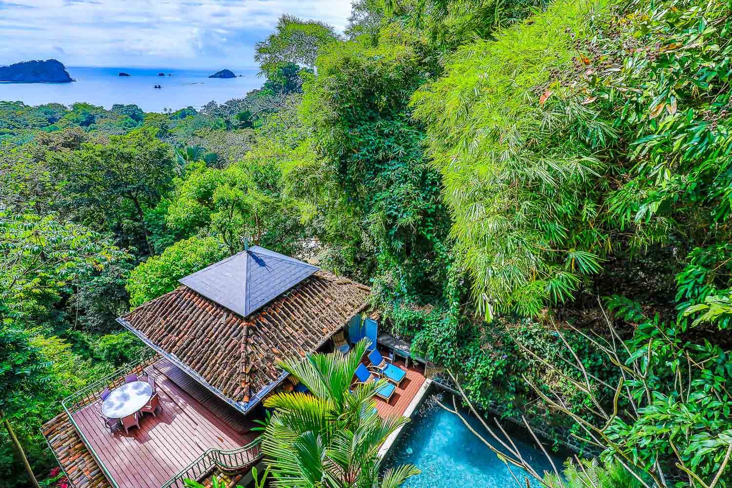 This property is the investment property you have always dreamed of owning! Set in the heart of Manuel Antonio, this dramatic Balinese-inspired home brings in all the magic of tropical architecture with a fusion of organic materials, luxury, integration of the rainforest canopy and the living spaces, and use of the cascading topography such a part of this area's character. The home is a POWERHOUSE rental property and is being sold with a solid lease in place which provides a passive income to the owners of $6500 per month. The tenant is running a short-term rental in the property and manages all elements of the home, pays all maintenance, utilities, and services.