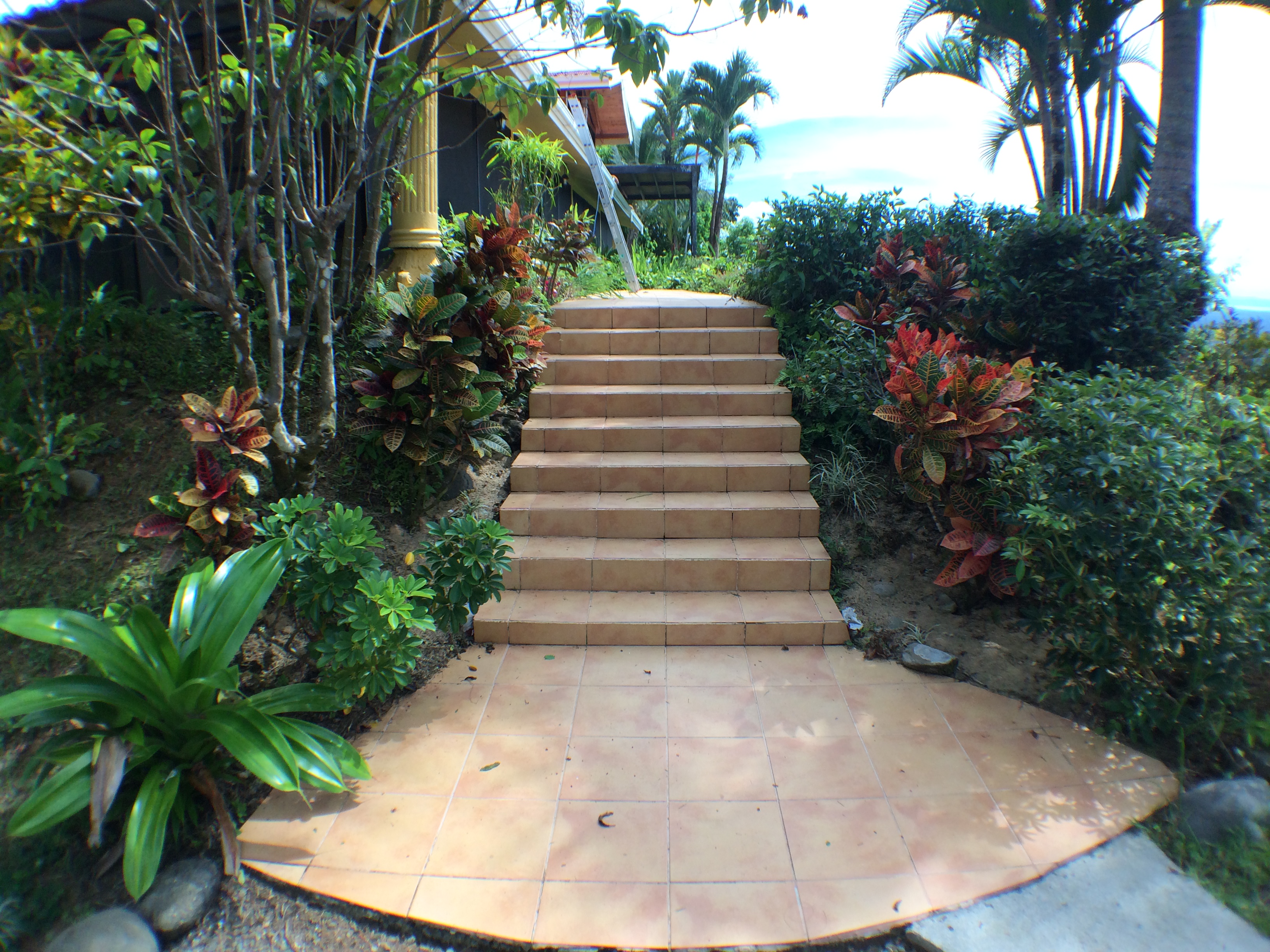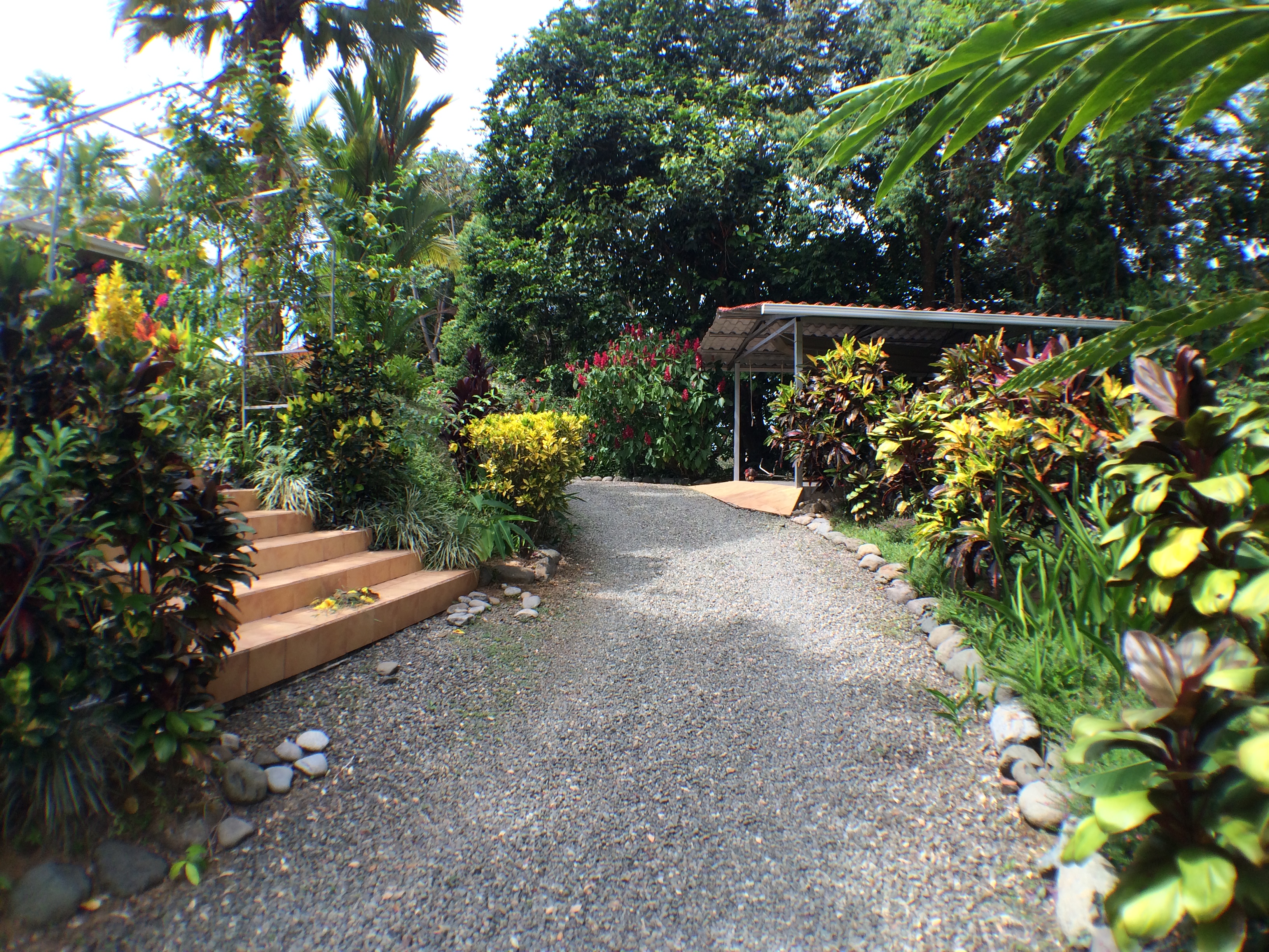 The Main Entrance is equipped with an electric gate for added convenience and privacy. Driving up the paved entrance we are pleasantly greeted with a lush, tropical,and well manicured yard , lined with lipstick palms, wild orchids, mangos, coconuts,bananas,and many others. There is a lower level covered parking lot for the Main Home,and a 2 car garage for the Guest Home.