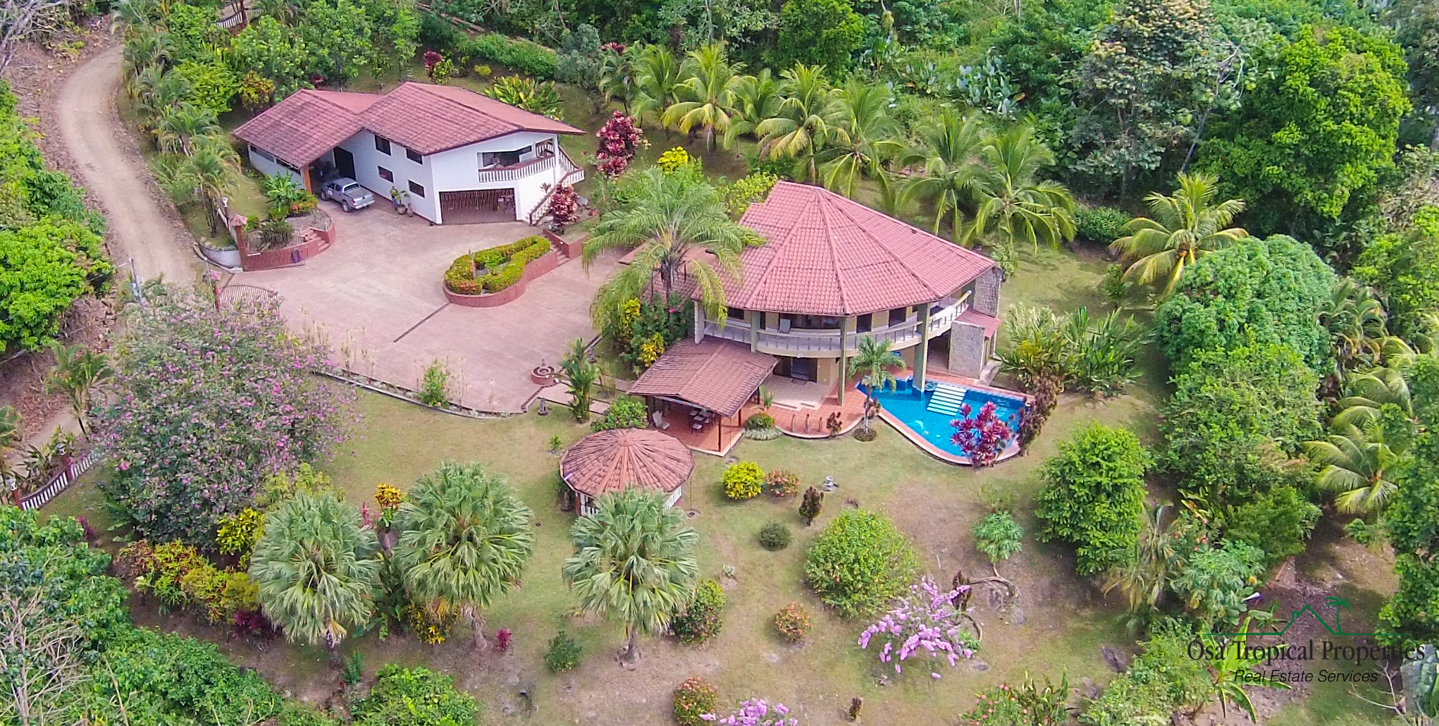 This exceptional property has it all. A lovely home with private guest suite, a large garage with additional guest quarters above, and a fantastic ocean view. There are many flowering bushes and mature fruit trees on the well-maintained grounds, lovely terraces, an outdoor dining area, a large pool with bathroom, and a gazebo provide ample space for tropical outdoor living. The extensive 5,500 square foot concrete driveway and parking areas are excellent for this income-producing property.