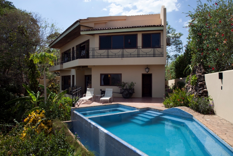 Luxury ocean front home situated in an alcove near the tip of the prestigious Northridge peninsula of Playa Flamingo where the Flamingo Bay is your front yard and the White Sandy Beach of Flamingo is your playground. You will experience spectacular, breathtaking views from every advantage point on this property and from every apartment. When you wake up in the morning, the first thing you see is the ocean and the lush jungle below. Casa De Serenidad is aptly named for the tranquility and serenity one feels when here. The front of the house offers the cultural beauty of antique ox carts used for floral decorations to accent the yard. Banana trees and other plants/flowers are plentiful and add to the beauty of the entry way. There are 4 fully equipped apartment rentals on the property all them share access to an infinity pool, BBQ area, fully equipped gym, a wading pool with hammocks, laundry facilities and a 2 person sit on top kayak. This is a great family home or income producing property, come and enjoy this paradise by the beach
