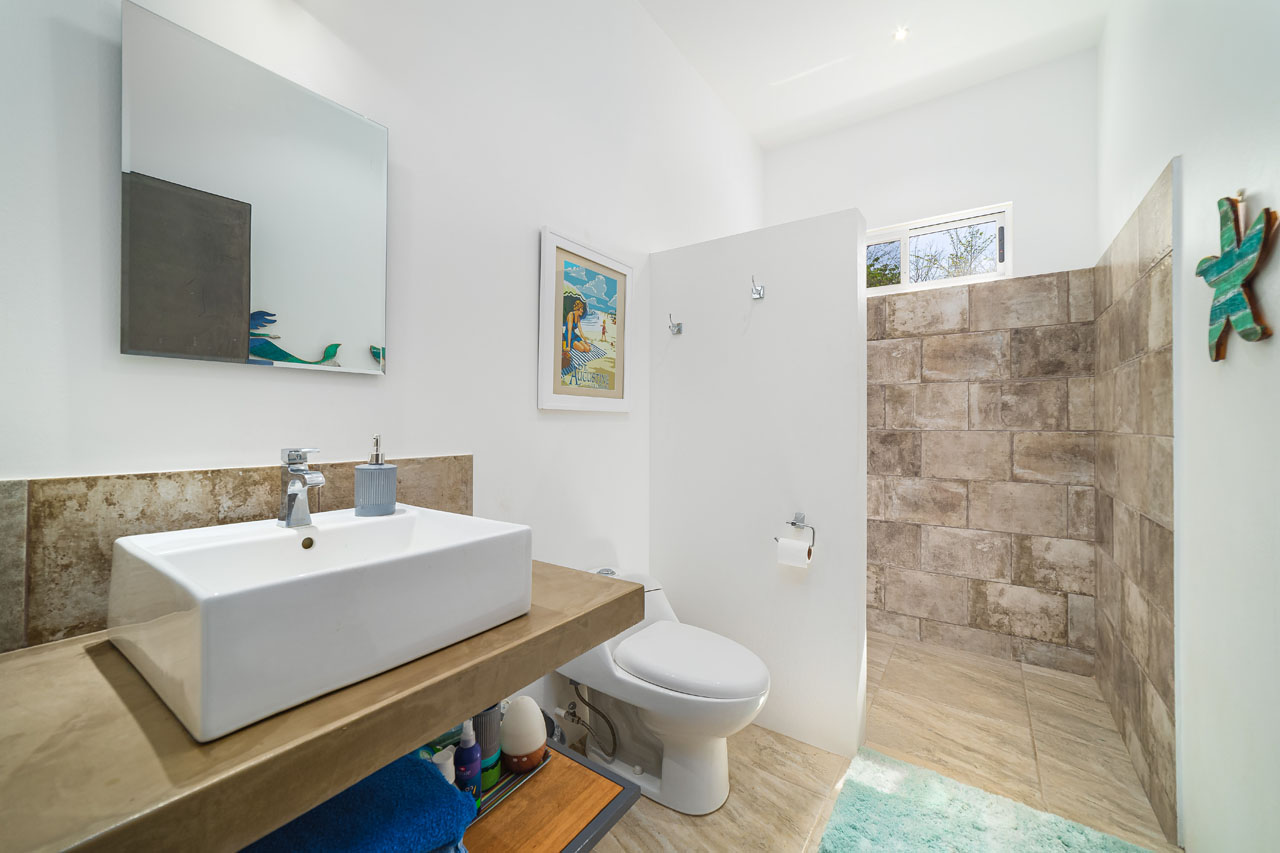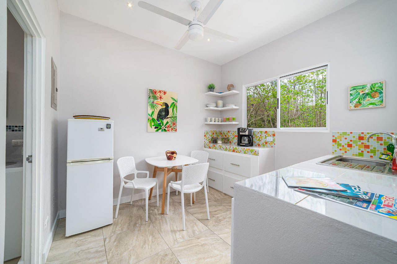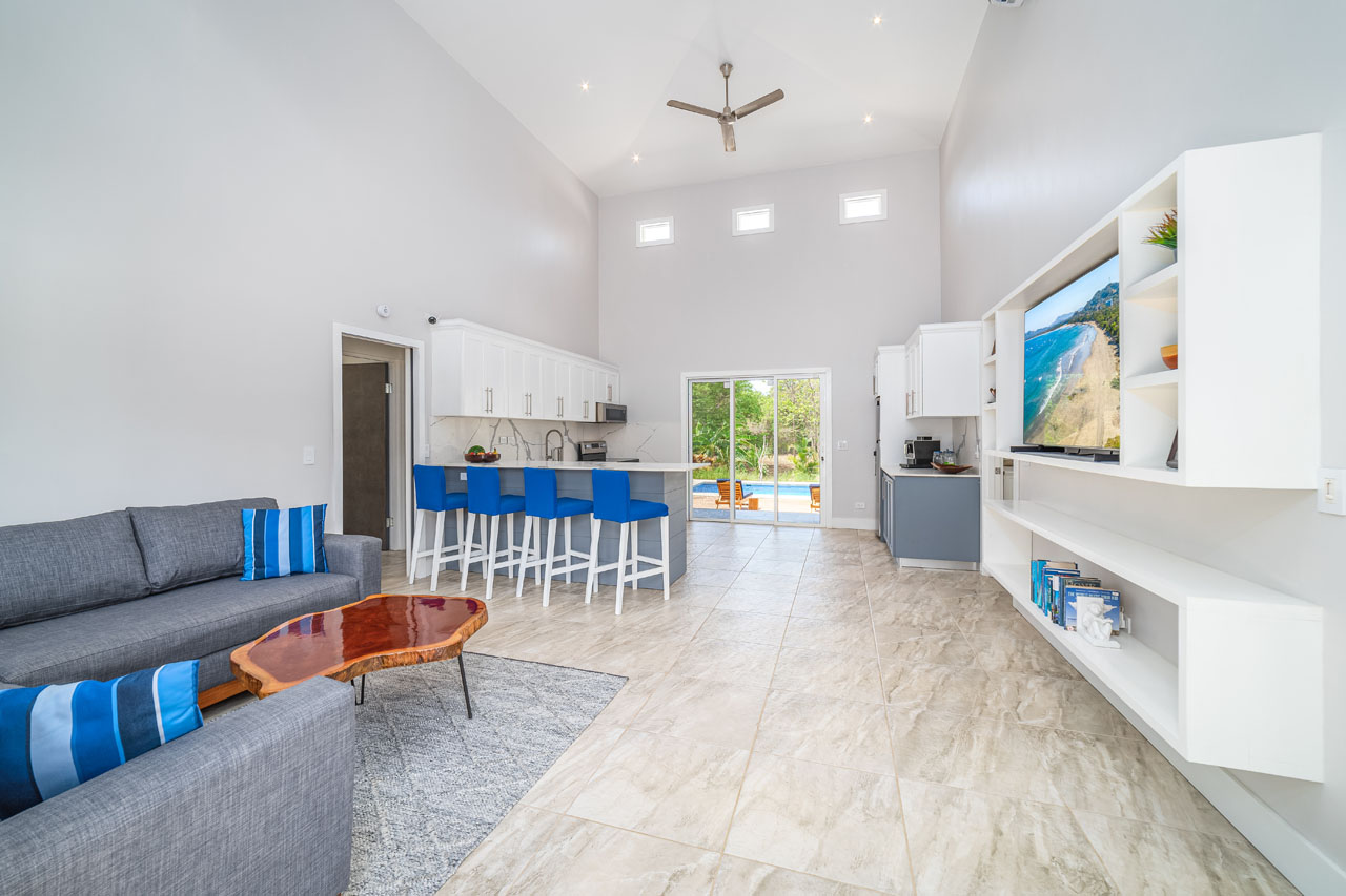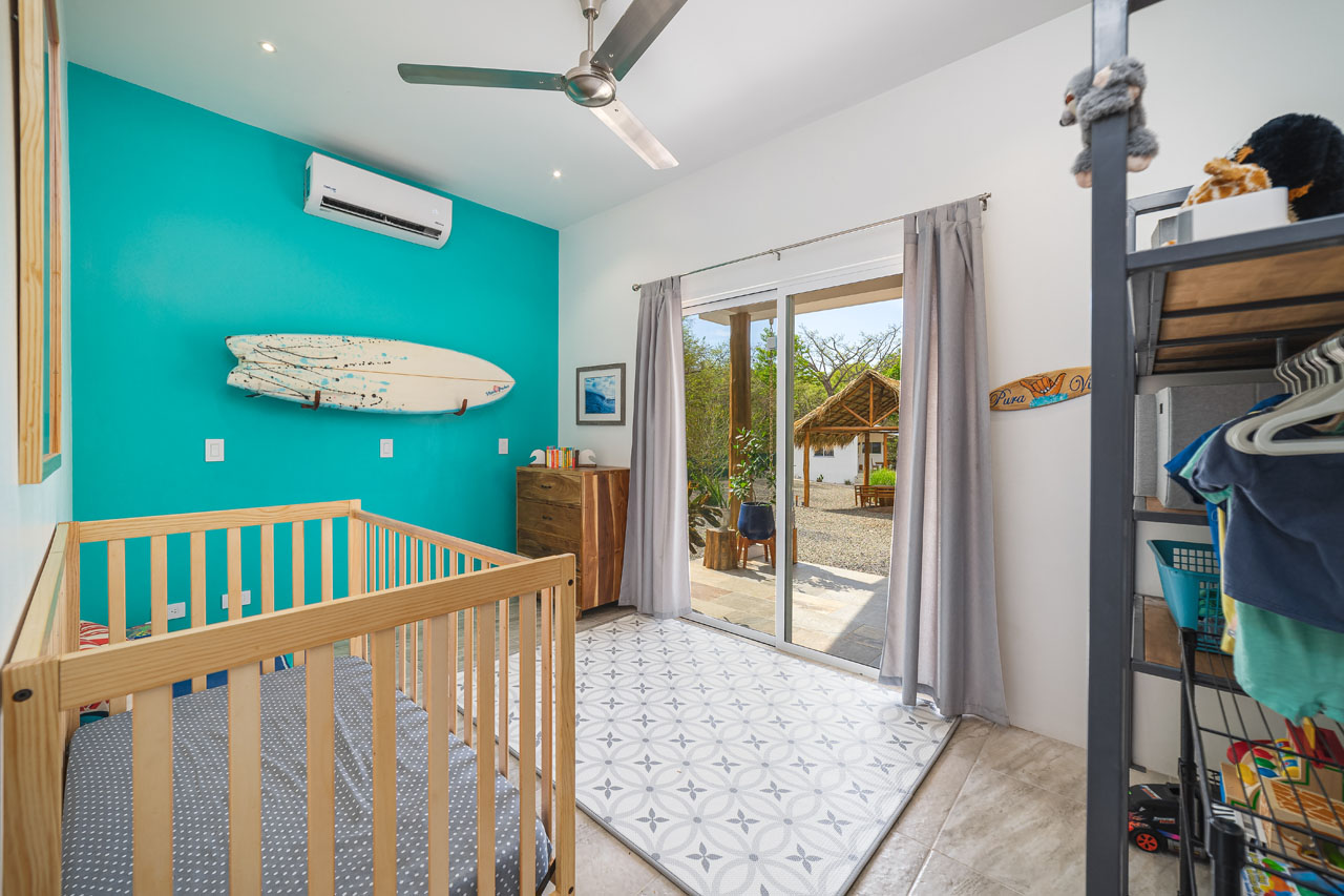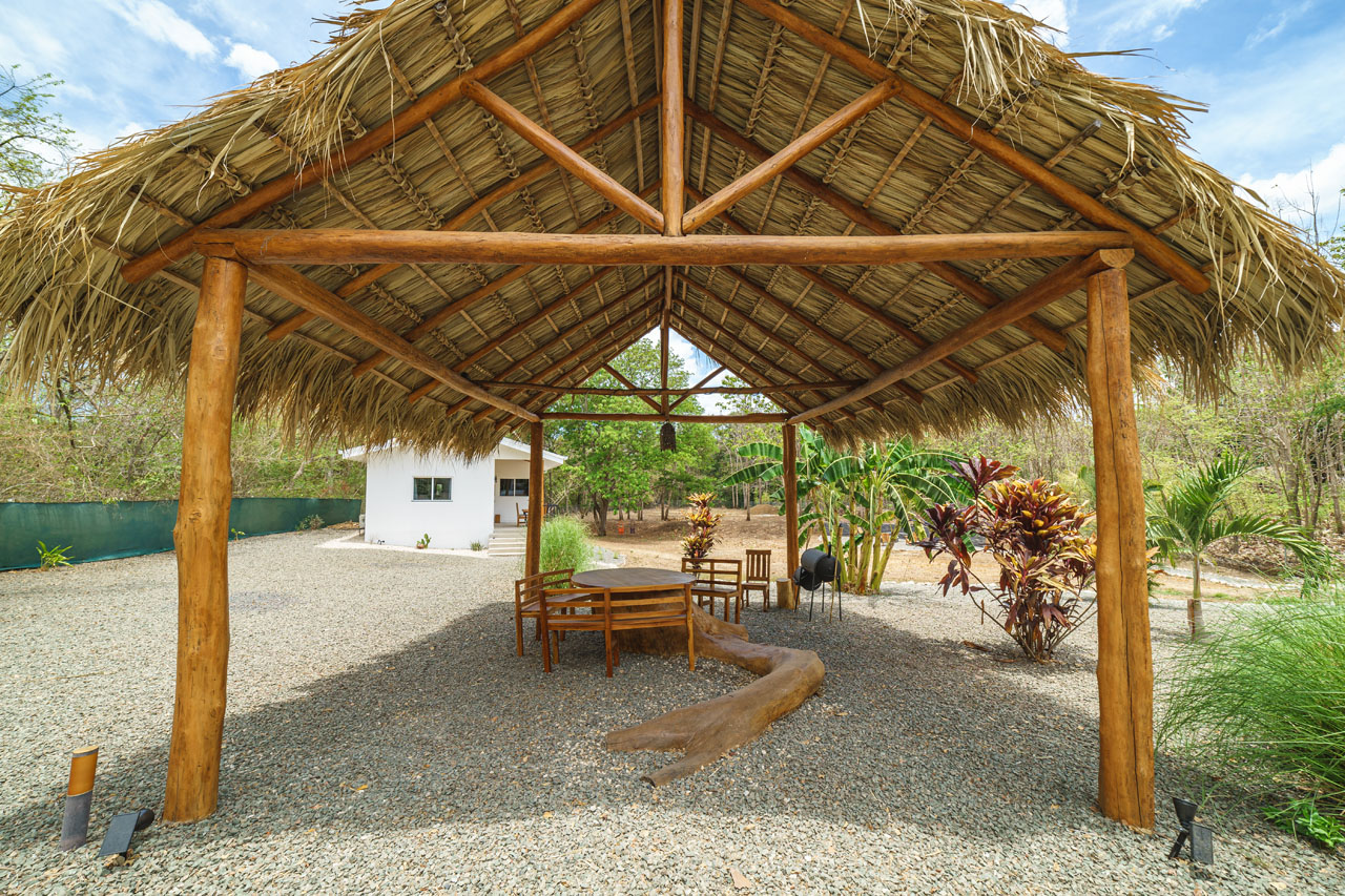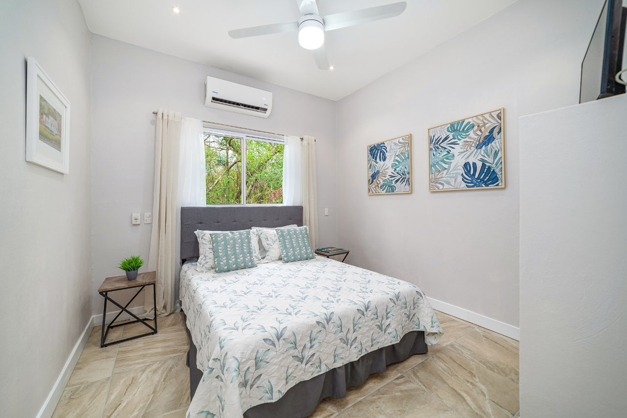 The main 3BR home, measuring about 1500 square feet of living space, features an open living space with soaring ceilings that keep the space cool and fresh. The kitchen has tons of counter space and direct access to the patio, allowing food to be served outdoors in Guanacaste’s perfect year-round weather. The two guest homes, one 2BR and one 1BR, are both livable, with kitchenettes and outdoor patios that would allow for long-term renters’ comfort.