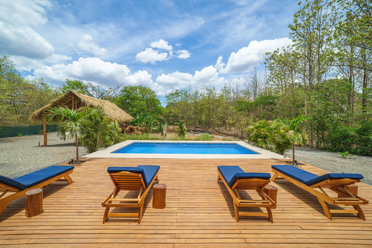 This is the perfect opportunity to enjoy a tranquil setting in the jungle, set back in the woods among trees. Yet you have almost immediate access to a paved highway that takes you to Tamarindo or Playa Langosta in ten minutes, and the Liberia international airport in an hour. Guanacaste’s best private schools are within a short drive, as well as the Playa Flamingo marina.